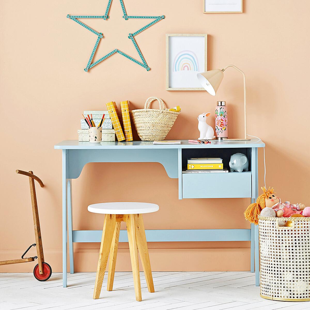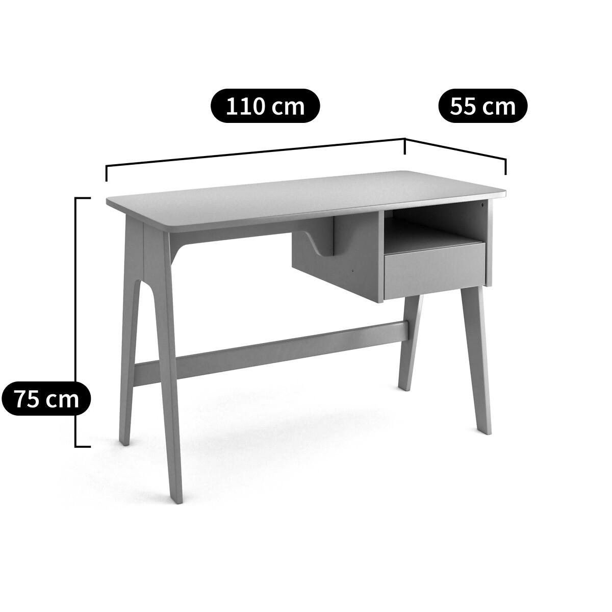 The Adil retro-style desk. With simple lines and a 60s vintage feel, this desk is bang on trend. Product Details • Pine and MDF • FSC® Mixed certified wood • Water-based varnish (or paint) finish • Layout: 1 storage compartment, 1 drawer • Reversible storage compartmentDimensions. Total: • Length: 110cm • Height: 75cm • Depth: 55cm. Usable space: • Drawer: L31 x H7 x D39cm • Compartment: L36 x H13 x D47cmDelivery:. Assembly required. Available for home delivery. Note! Please check that all access points are large enough to accommodate your delivery (doors, stairs, lifts). • WOOD FROM SUSTAINABLY MANAGED FORESTS. FSC® certified wood comes from forests that are environmentally, socially and economically well managed. • WOOD FROM MORE SUSTAINABLY MANAGED FORESTS AND CONTROLLED SOURCES. FSC® Mix wood contains at least 70% FSC® certified and/or recycled wood, the remainder being FSC® controlled wood. Parcel Dimensions1 parcel • L120.6 x H11 x D63cm • 30kg