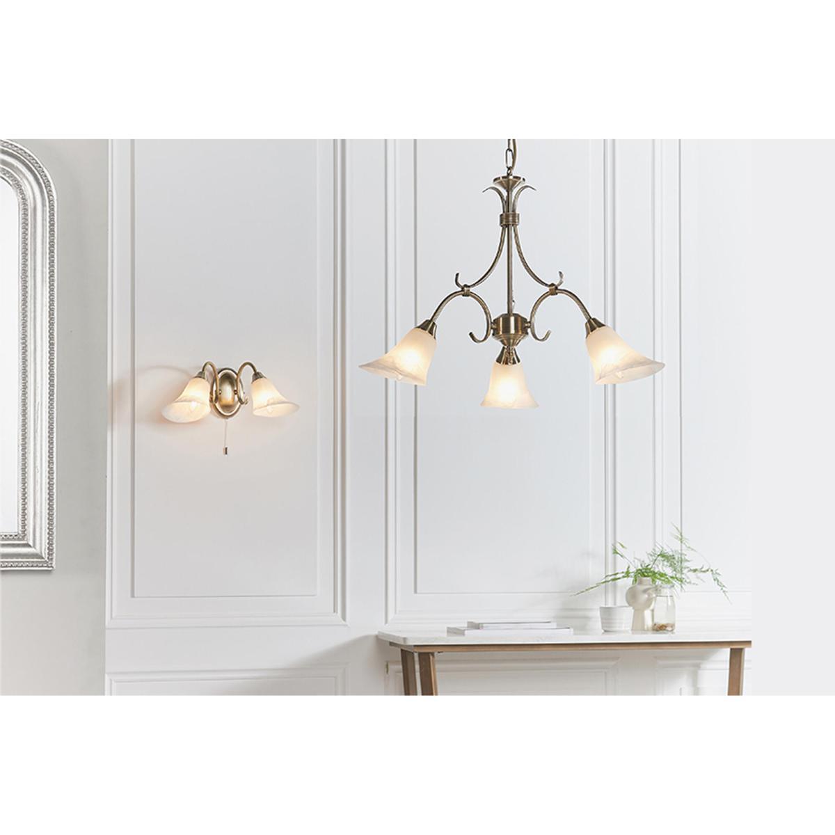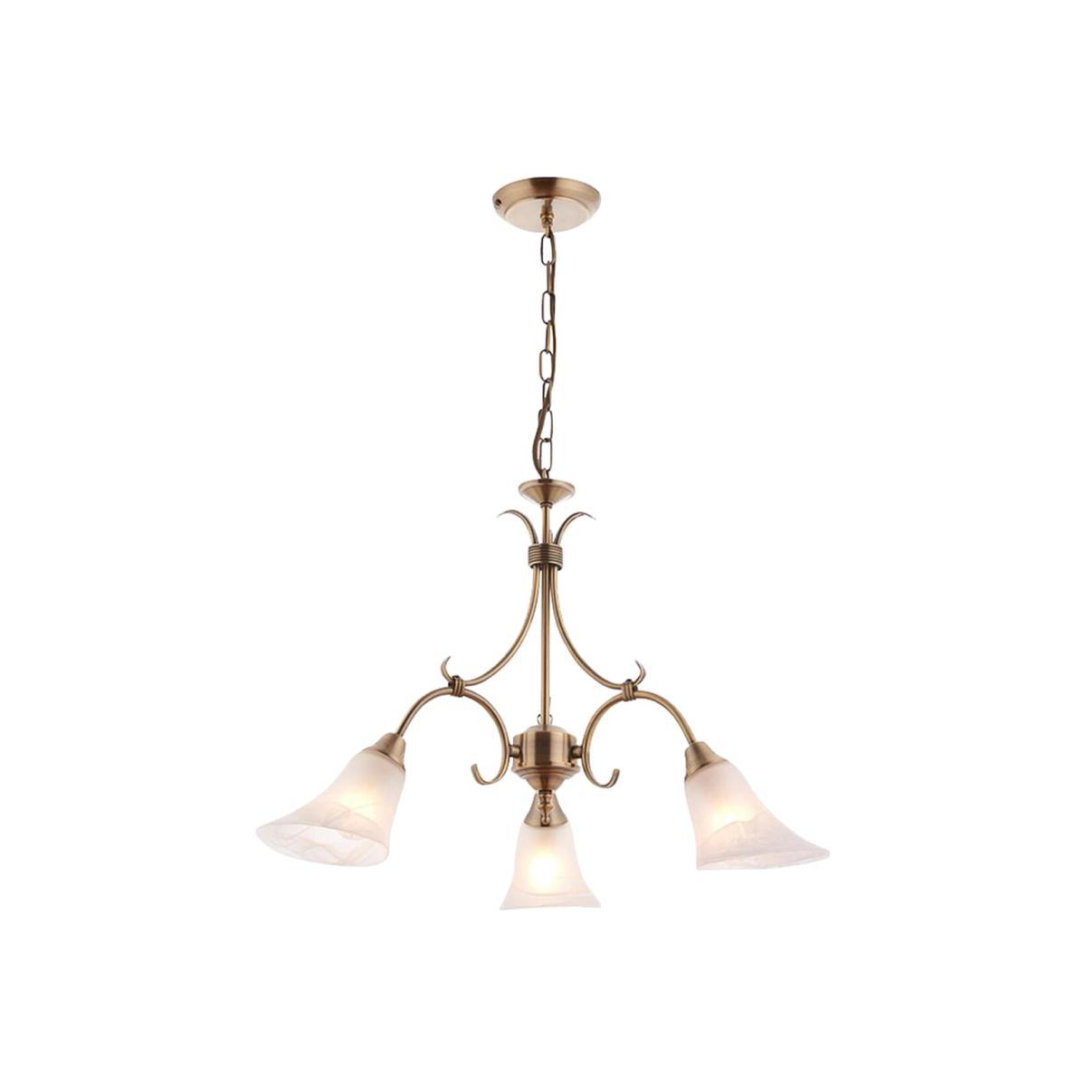 The Adina Antique range is perfect for those looking to add a touch of old school contemporary style to their home. This 3 light chandelier is finished in antique brass effect with frosted glass shades, an adjustable drop and can be converted to a flush fitting, dimmable and suitable for use with LED lamps. Complete the any room with the matching pieces from the Adina range.
