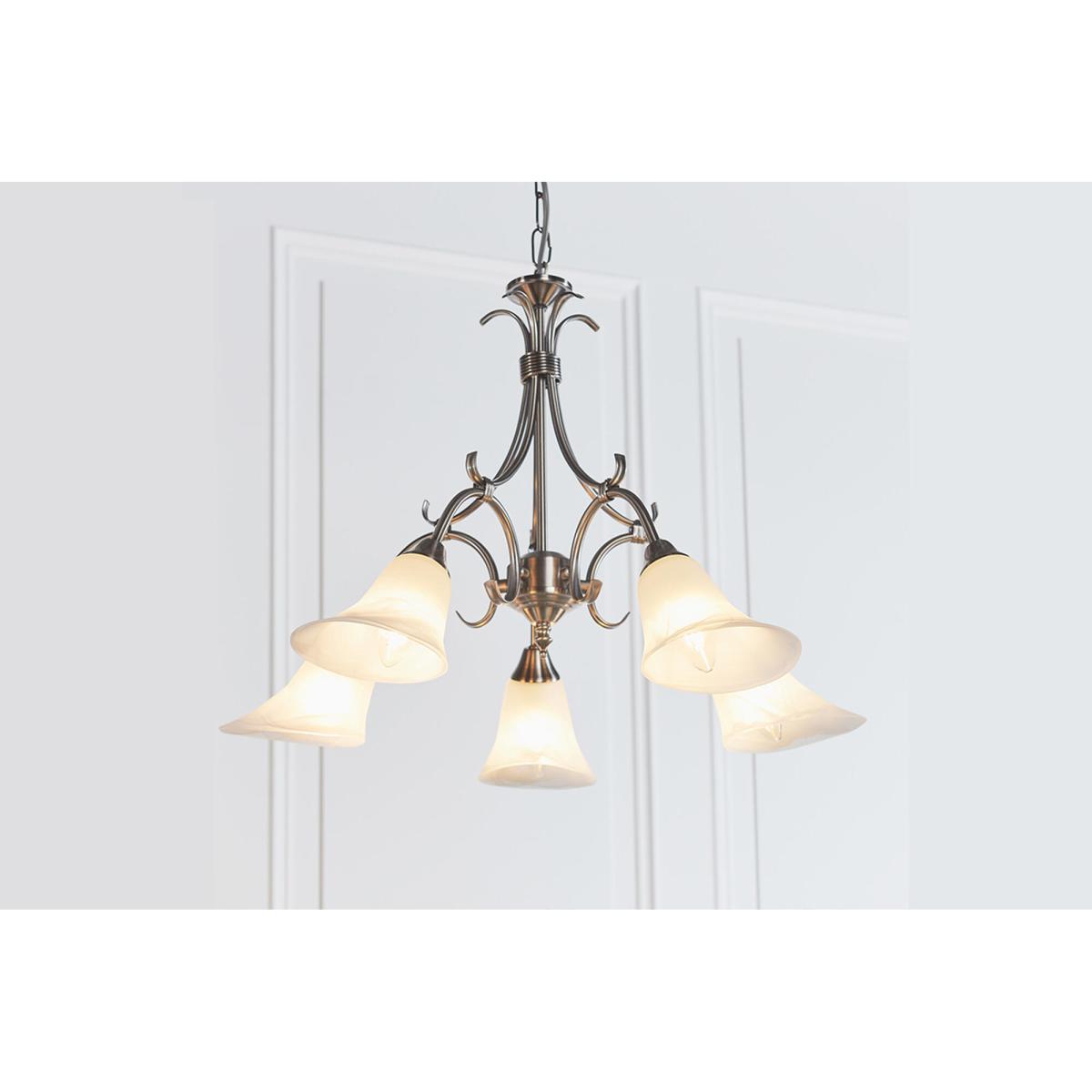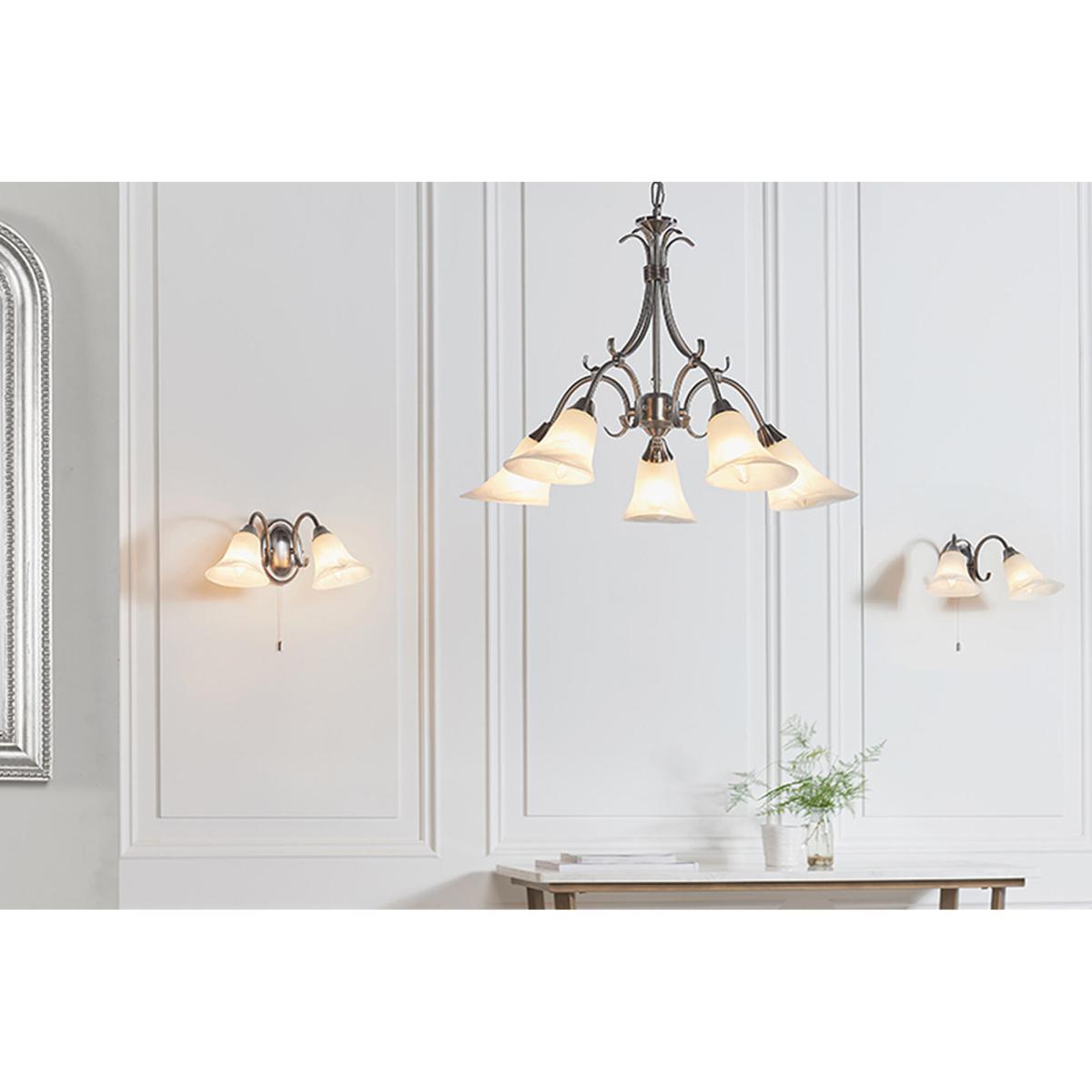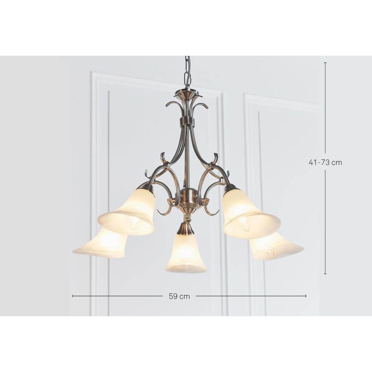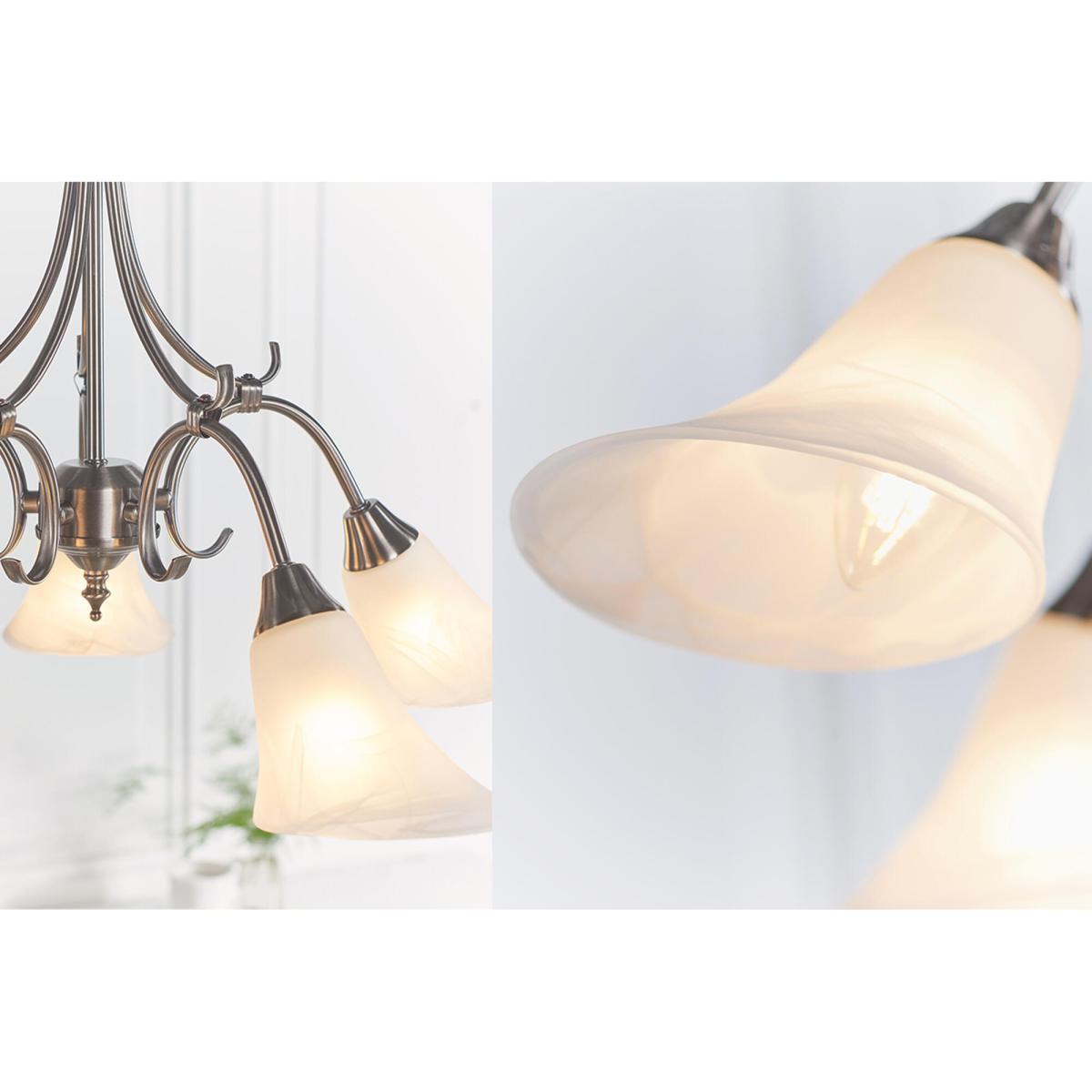 The Adina Antique range is perfect for those looking to add a touch of old school contemporary style to their home. This 5 light chandelier is finished in antique silver effect with frosted glass shades, an adjustable drop and can be converted to a flush fitting, dimmable and suitable for use with LED lamps. Complete the any room with the matching pieces from the Adina range.