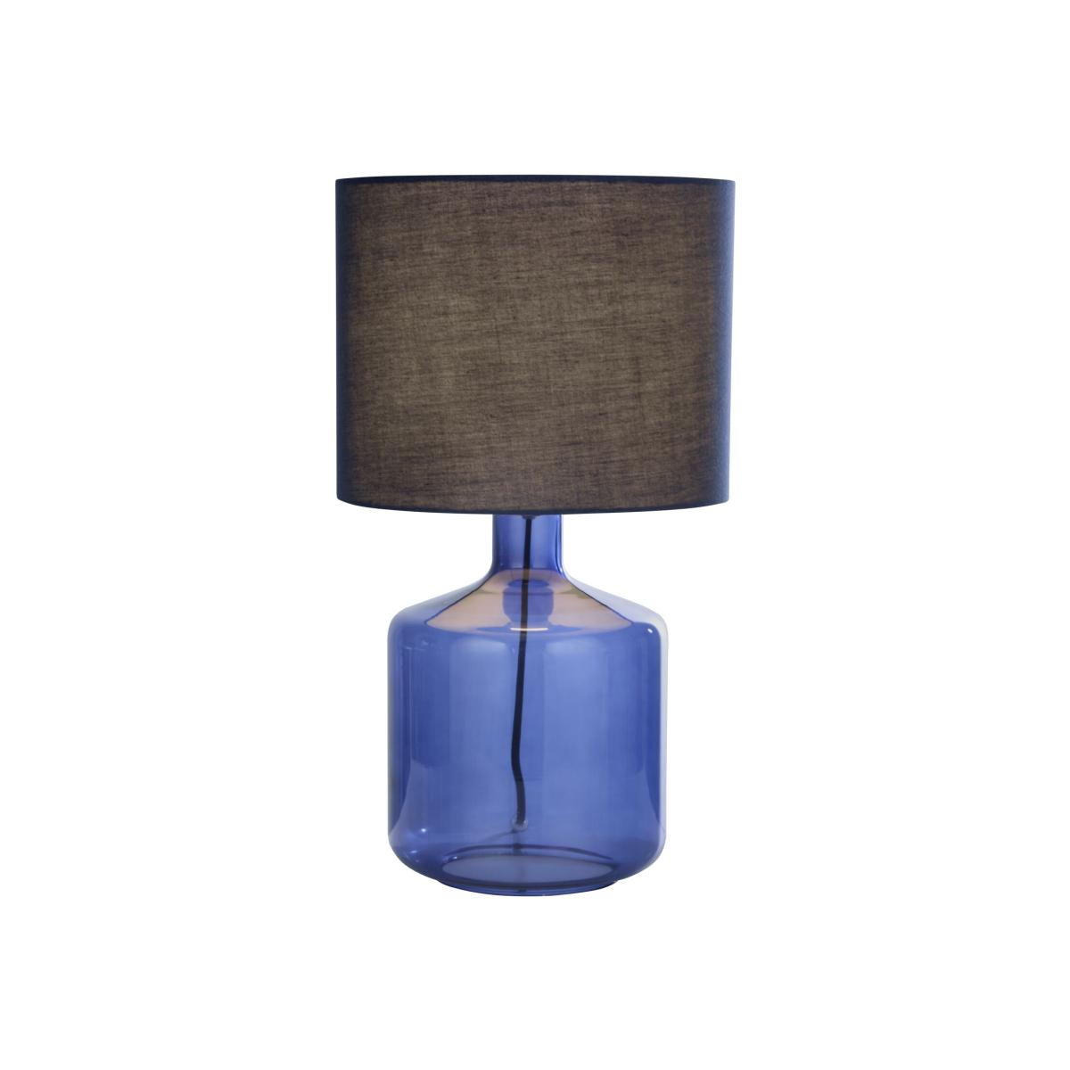 Eye-catching blue glass and a blue shade make this table lamp the perfect addtion to any space needing that bit of extra light. A statement piece iin any home.