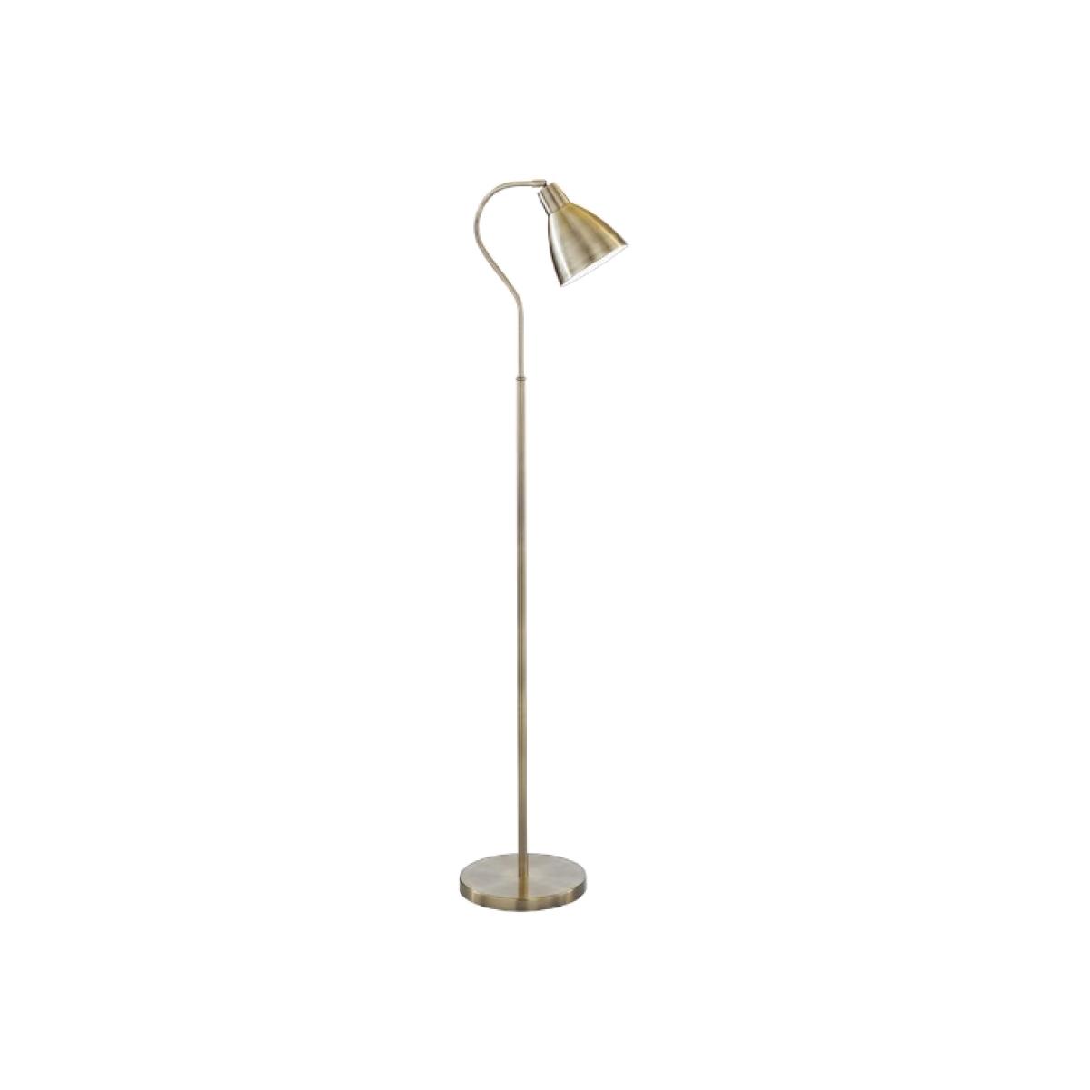 Classic antique brass floor lamp. Add a stylish addition to your home with the adjustable antique brass floor lamp. The lamp features an adjustable head, perfect for directing light where it is required. The perfect addition to any lounge, office or bedroom.