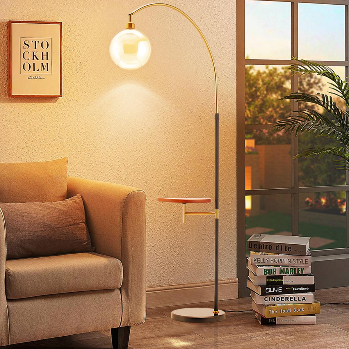 A masterpiece of contemporary design, this Livingandhome floor lamp redefines sophistication. Its sleek silhouette is crowned by a gold tone glass shade, which will cast a warm glow in your room. The marble base exudes stability and grandeur, and the wooden tray adds practicality which means a perfect spot for your book, a cup of tea, or a cherished ornament. It will make a chic addition to your living room or bedroom.