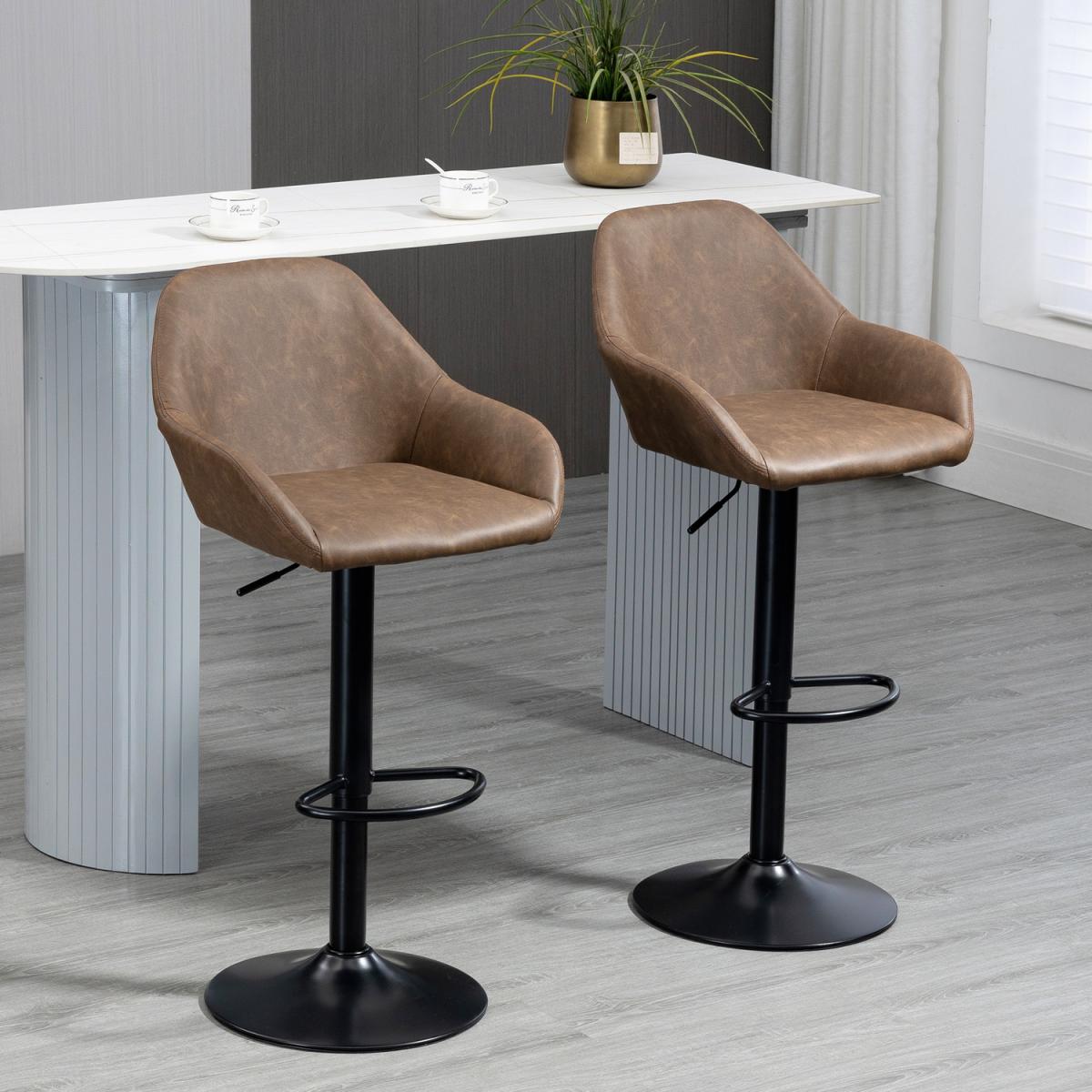 Adjustable Bar Stools Set of 2, PU Leather and Steel Base - Dark Brown
