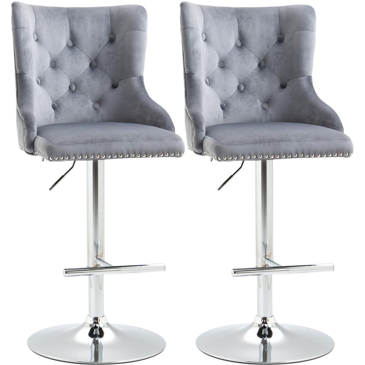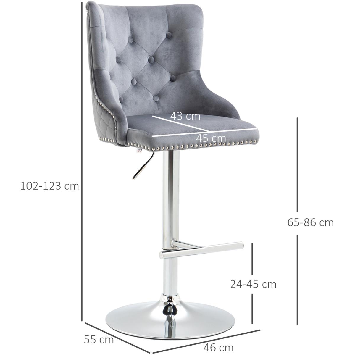 Everyday dining, with a luxe touch these two HOMCOM bar stools. The seats are elegant in design with their curved-back seats, button tufting and velvet-feel upholstery - something you'll adore bringing into your space, no matter the interior style. The padded seats are comfortable, with high backs which support your body.