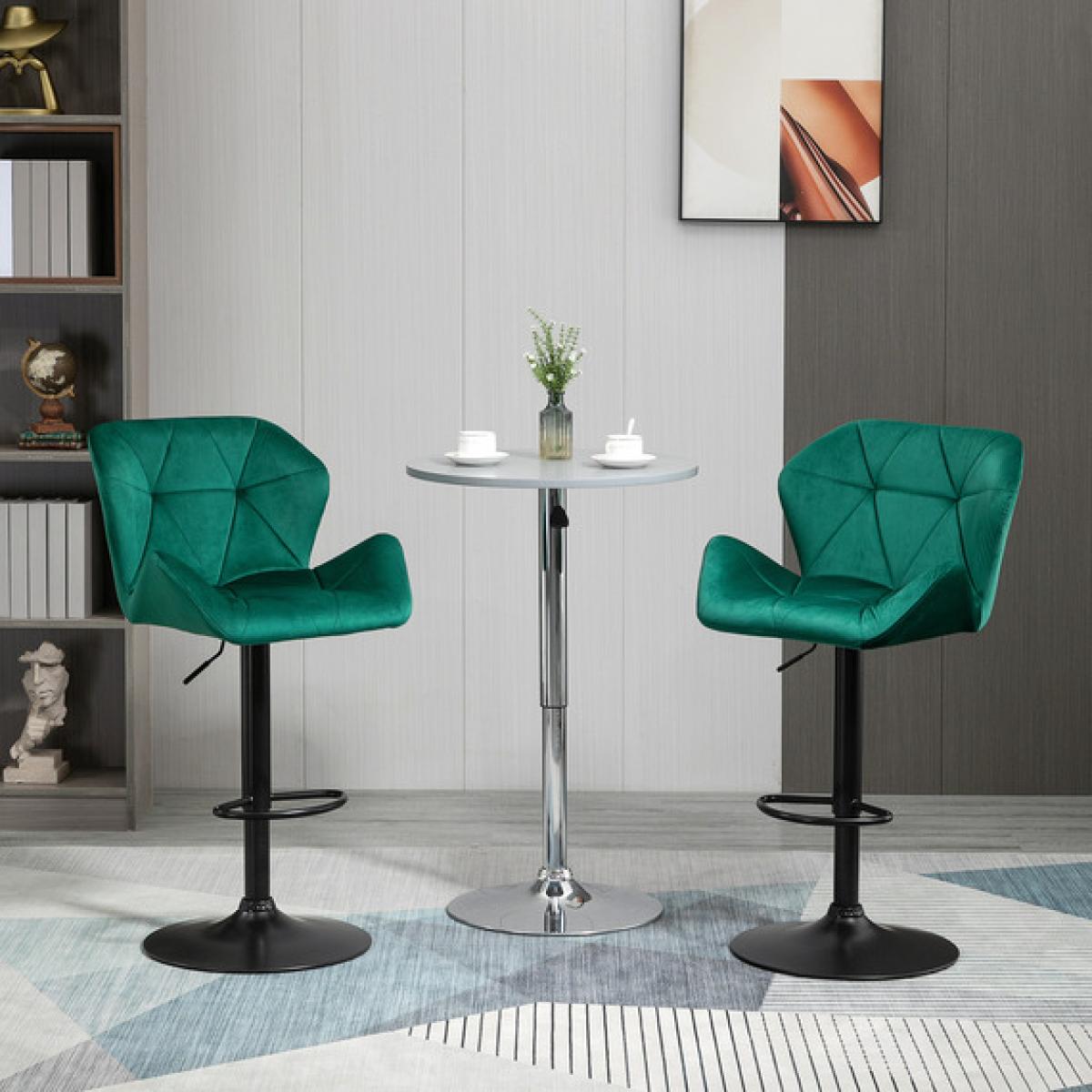 Adjustable Bar Stools Set of 2 Velvet-Touch Swivel Metal Frame - Green