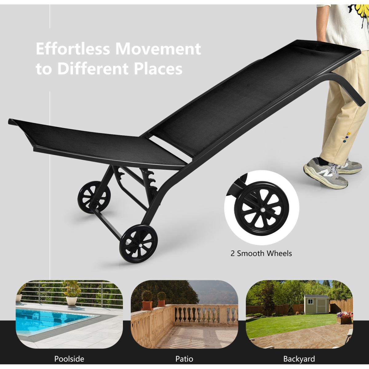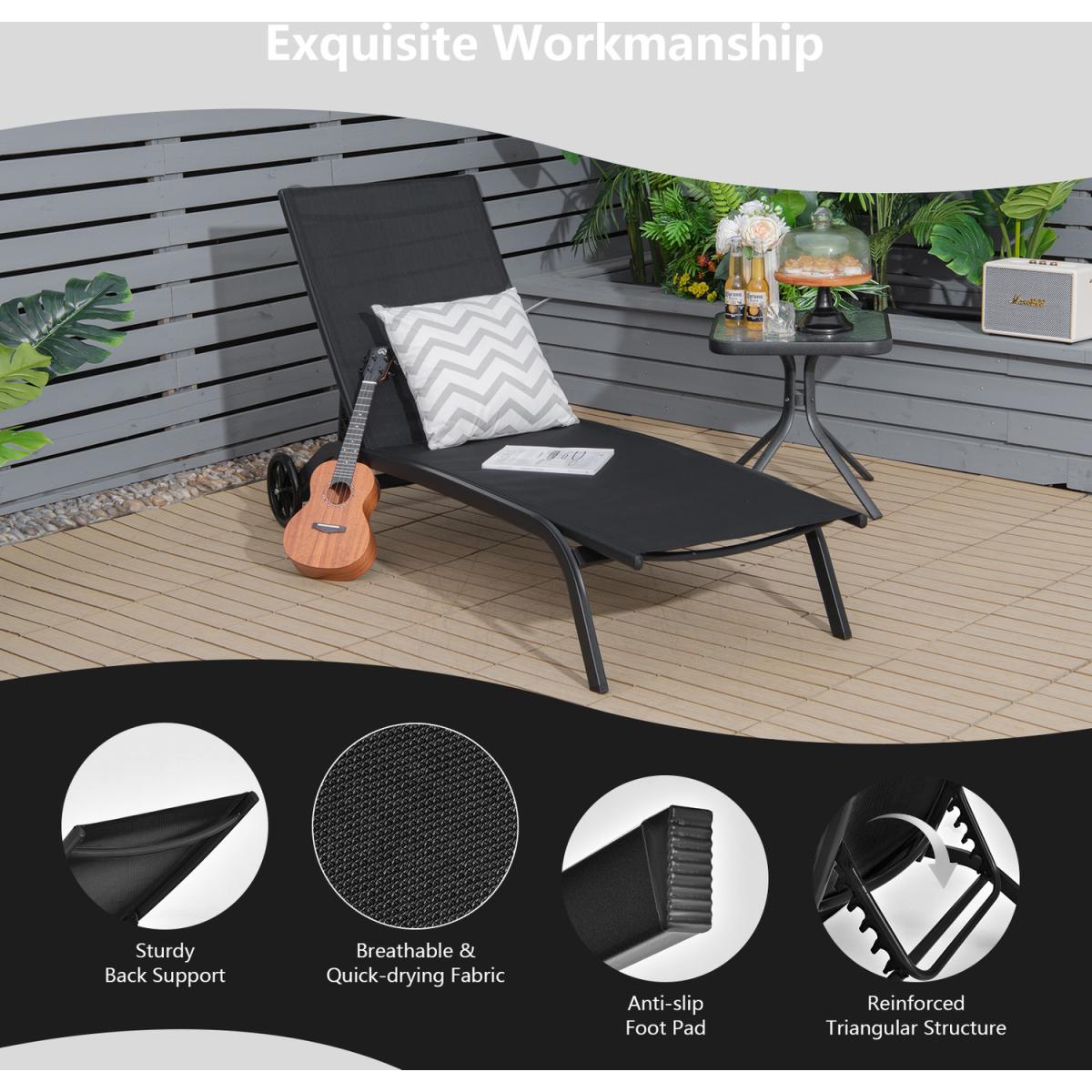 Adjustable Chaise Lounge Patio Lounge Chair - Black