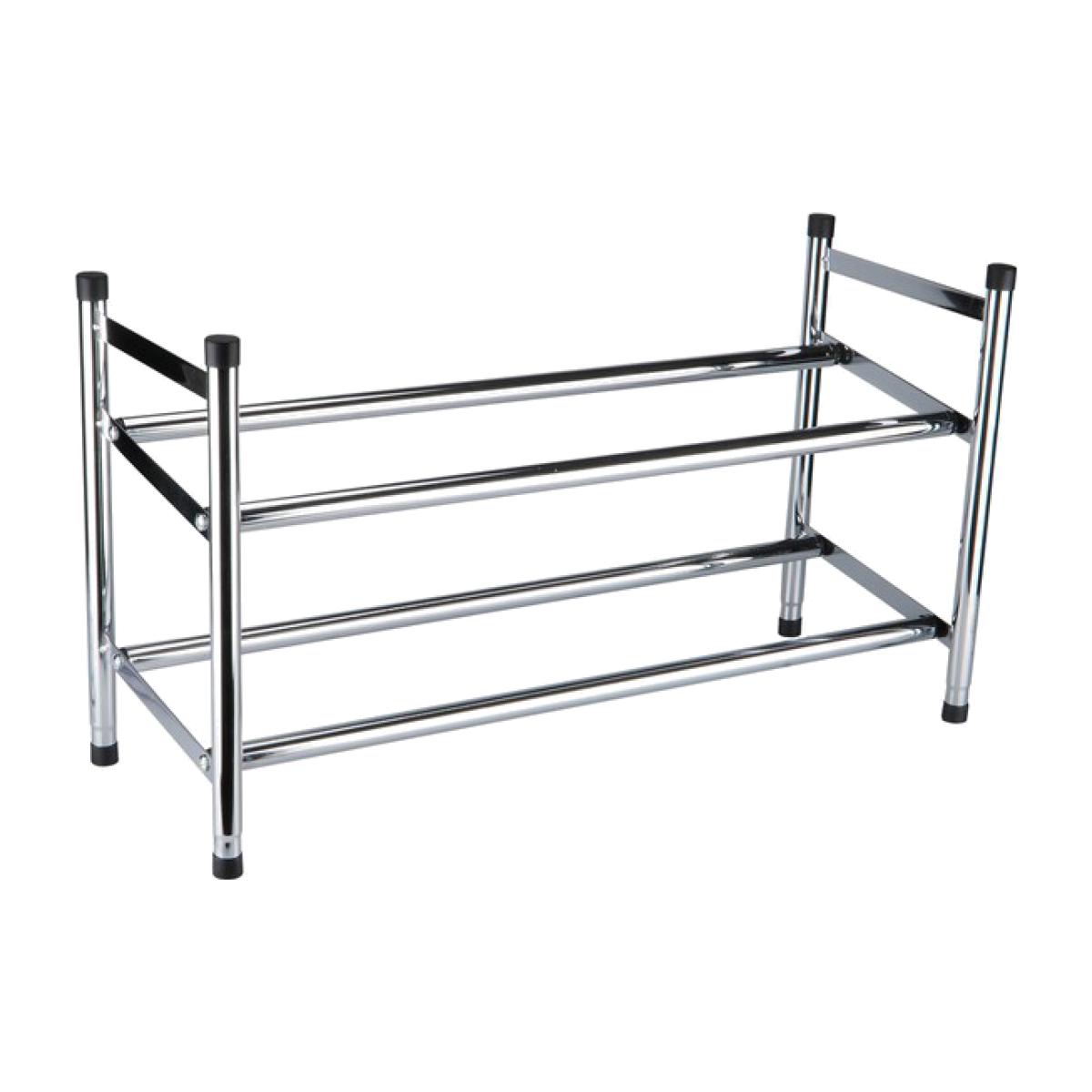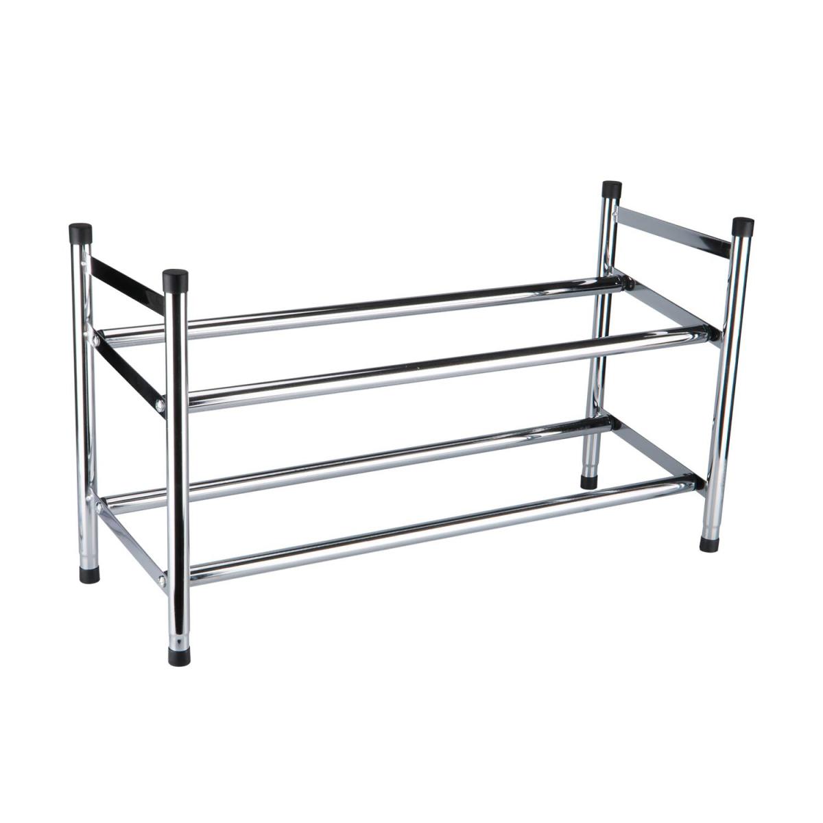 Keep your shoes neat and tidy by placing them on this Chrome Multi-Tier Shoe Rack. Available with either two or four shelves, it will fit easily into your hallway or by your backdoor for convenience. With an adjustable length, you can make sure this shoe rack best suits your needs.