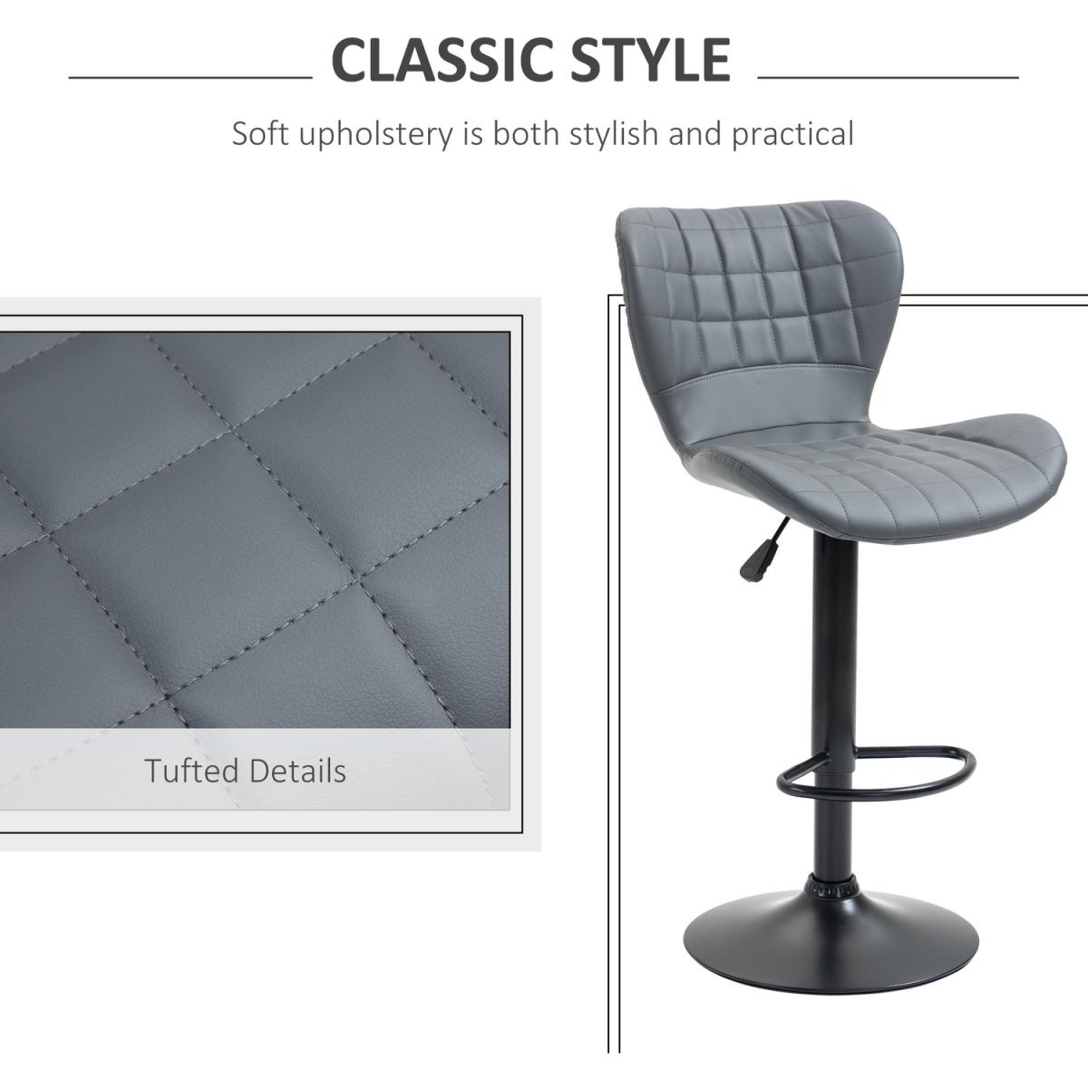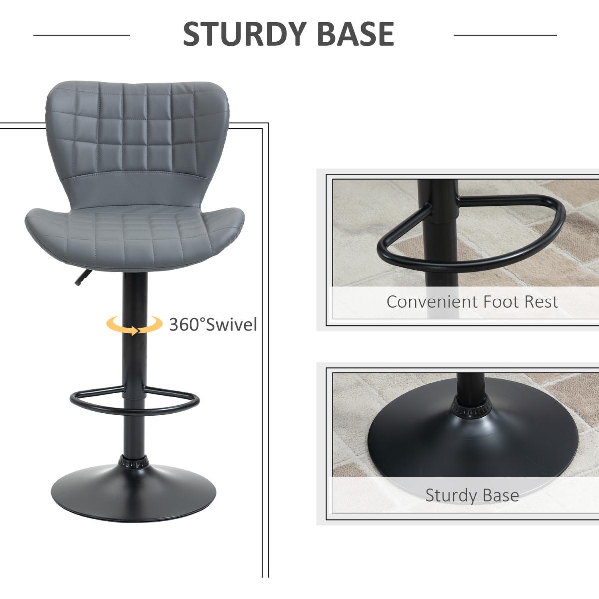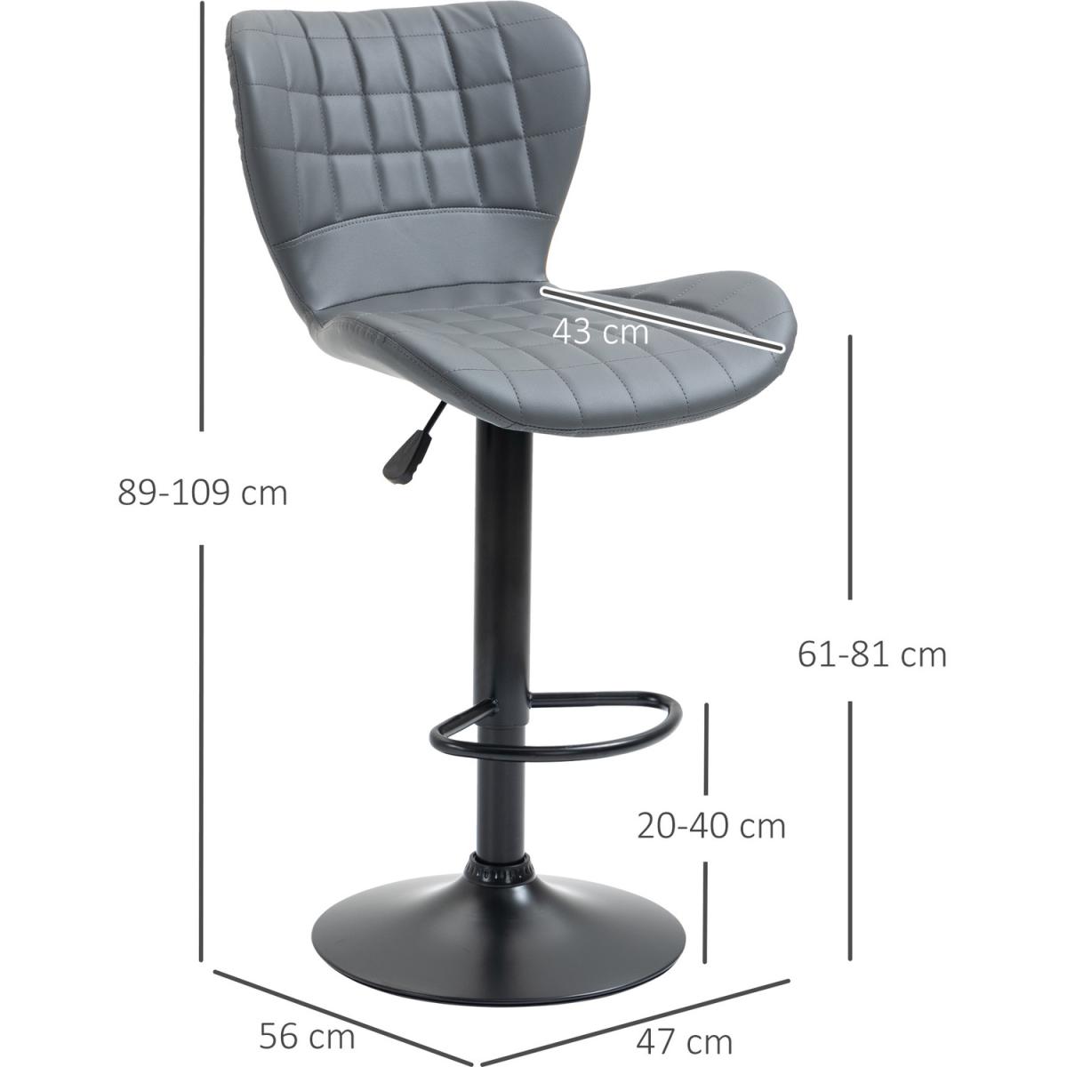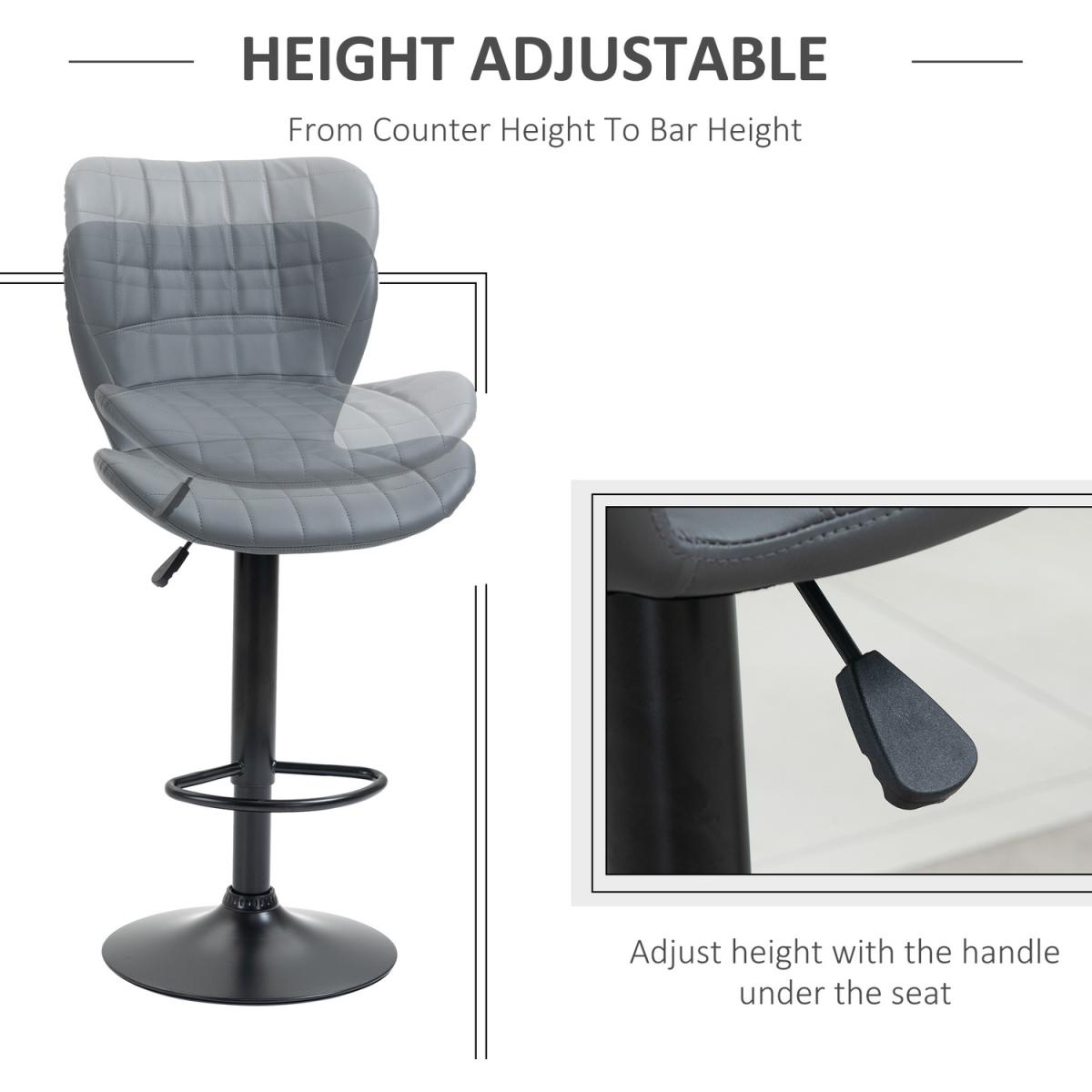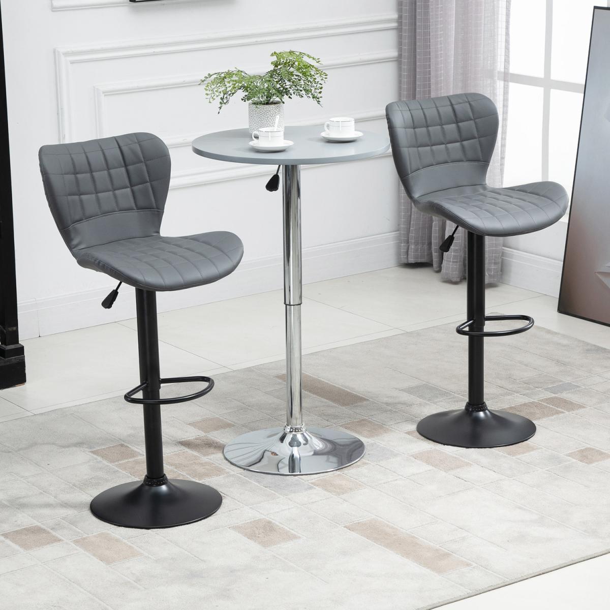Sleek, beautiful style for the home dining area: these two stools from HOMCOM. Soft PU leather is stylish, with added indents for a unique look. Both seats are filled with soft sponge for comfort, with high backs for support and can swivel freely to work with you when seated. Comes complete with a metal structure, with a large round base to stand steady and bottom rest for the feet.