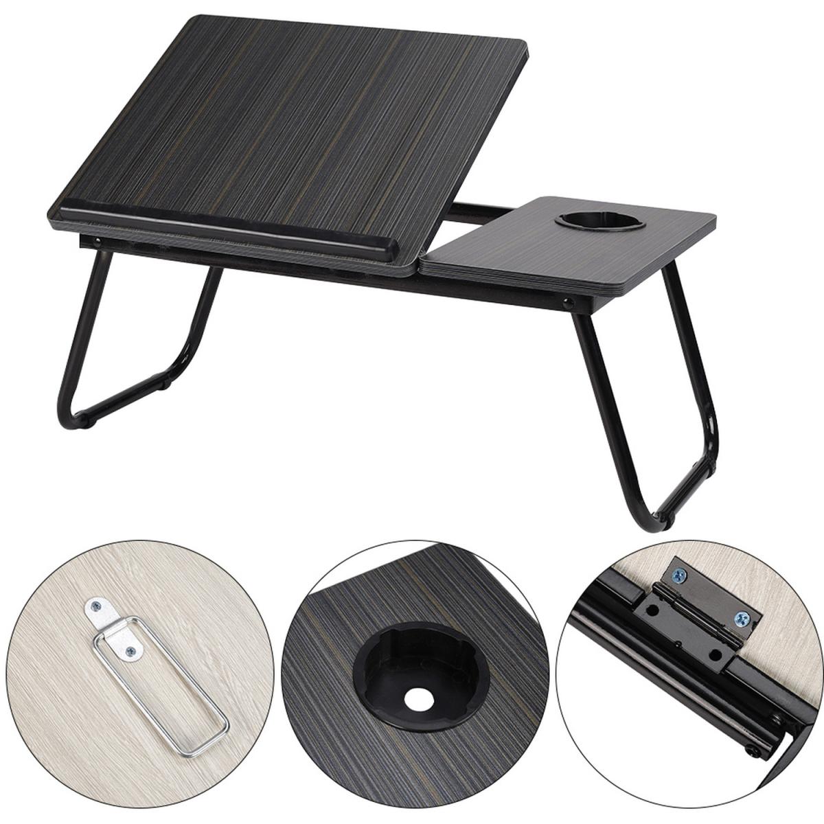 Adjustable Laptop Bed Desk with Cup Holder - Black