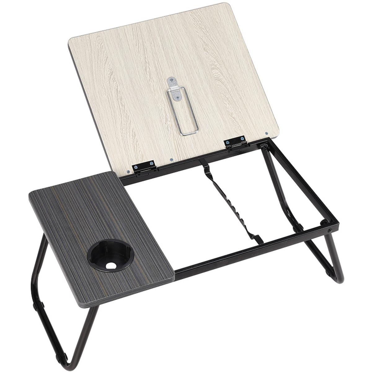 Enjoy this fully adjustable Livingandhome laptop tray on the couch, in your bed or standing at your home office desk. This laptop tray features 5 different tilting positions to allow you to work at the perfect angle, and there is a protective baffle at the bottom to prevent the laptop from sliding off. It also includes a convenient cup holder to keep your beverage within reach. When not in use, quickly collapse the legs and store the desk flat, which will not take up your space.