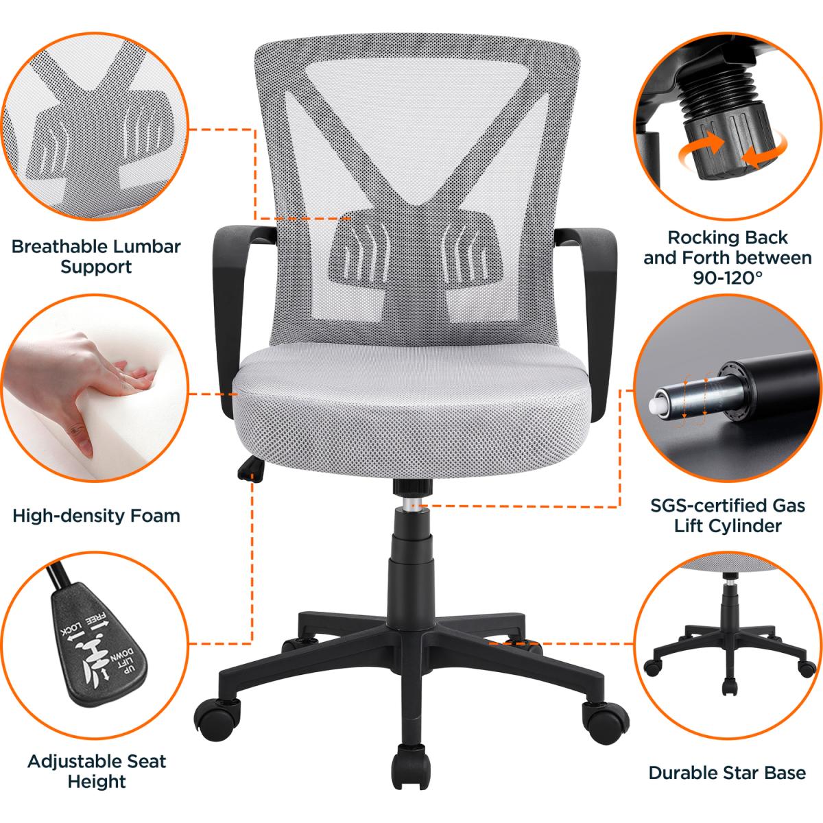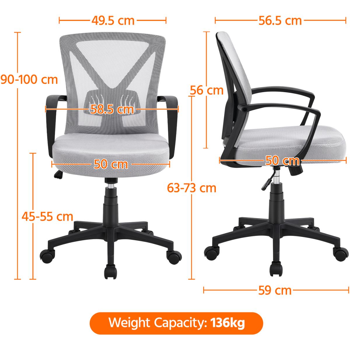 Check out this great home office chair with a smart overall design to fit various needs. The ergonomic large s-shaped back gives full support to your back and lumbar, fitting perfectly with your back curvature. Back height adjustment ensures the flexible customization of this ergonomic office chair. A wide seat design allows free body movement and can hold up to 136kg at the same time. It is suitable for both home and office with various color selections to adapt to your aesthetic needs. A high-density cushion with a double-layer mesh cover ensures this desk chair is deformation-resistant and resilient to sit. A large star base with five mute wheels allows a 360 smooth movement without scratches on the floor. All these great features present you with a classic modern office chair for your intensive study sessions or long office hours.