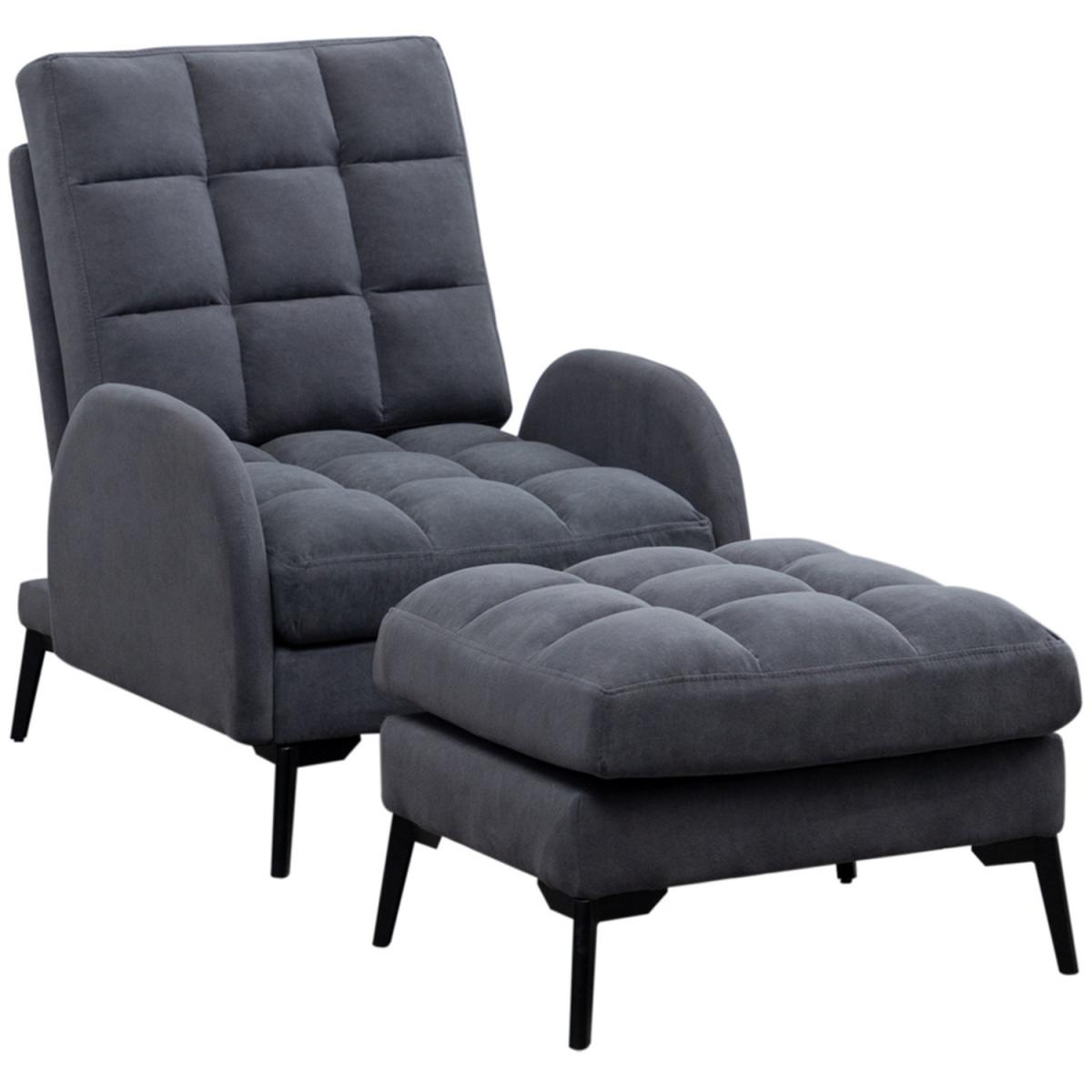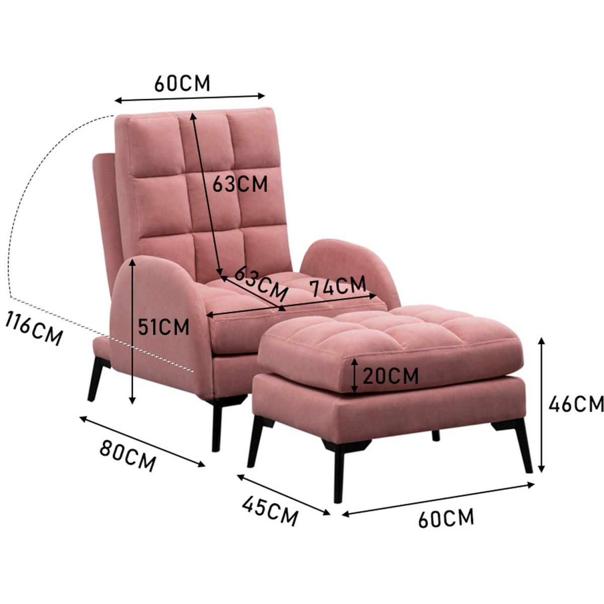 Bring the charm of fashion and a cosy corner for your living house with this modern recliner. It's upholstered in velvet fabric filled with high-density foam, on the surface of which sew lines to form squares. Such modern design does not only enhance the stylish feeling but also offer an extra comfortable seating experience. It stands on black metal legs, which not only has excellent stability but also adds to the charm of the chair. Assembly is required.