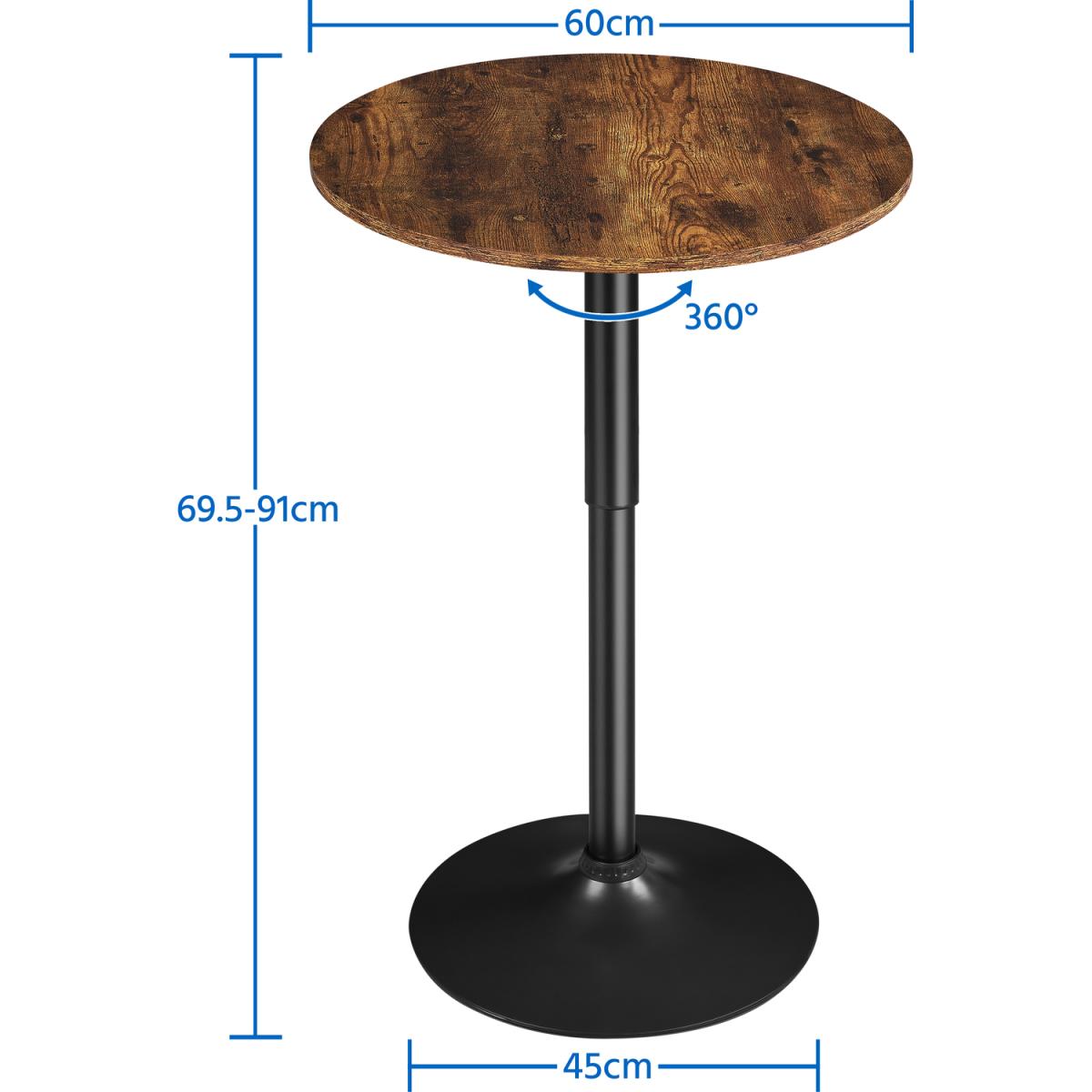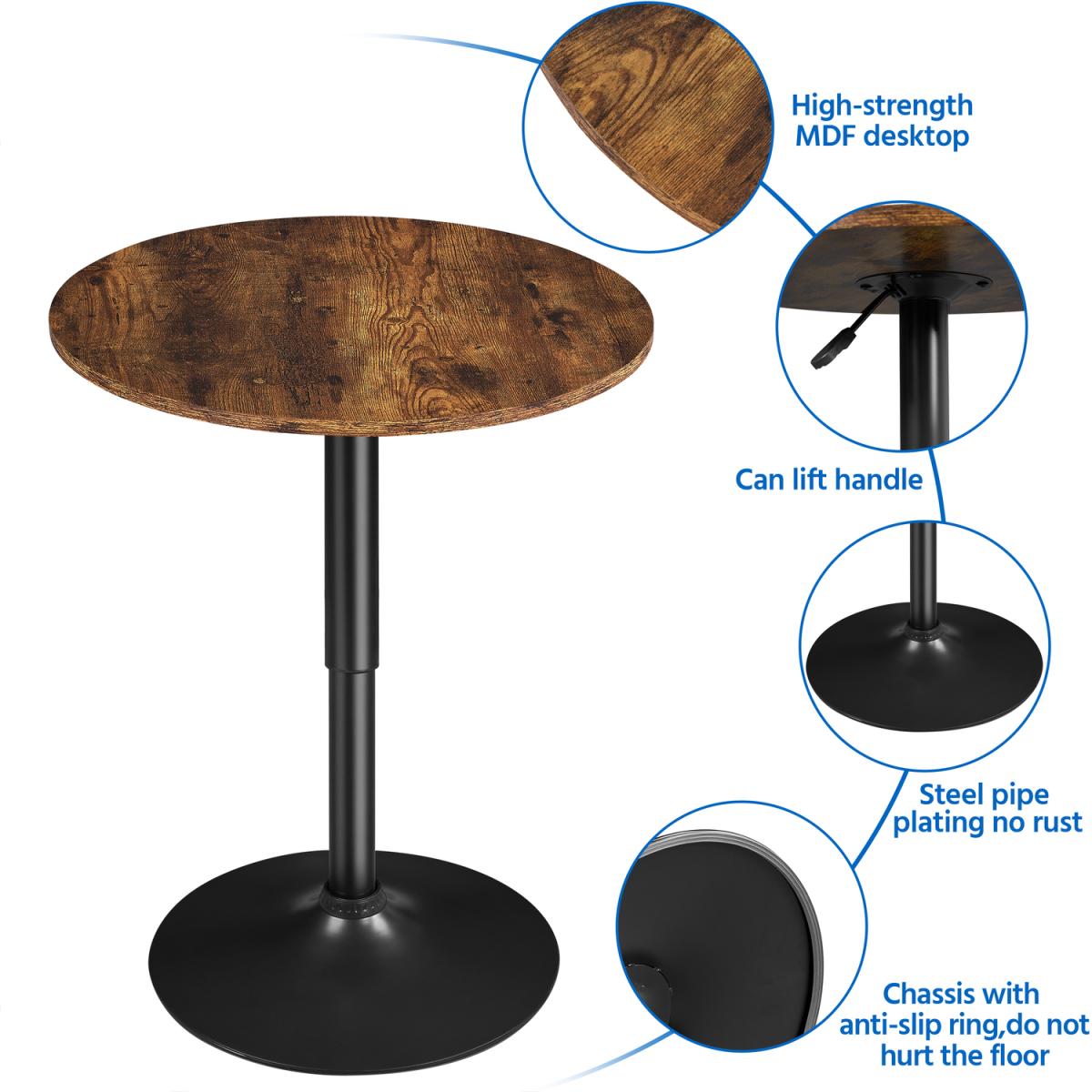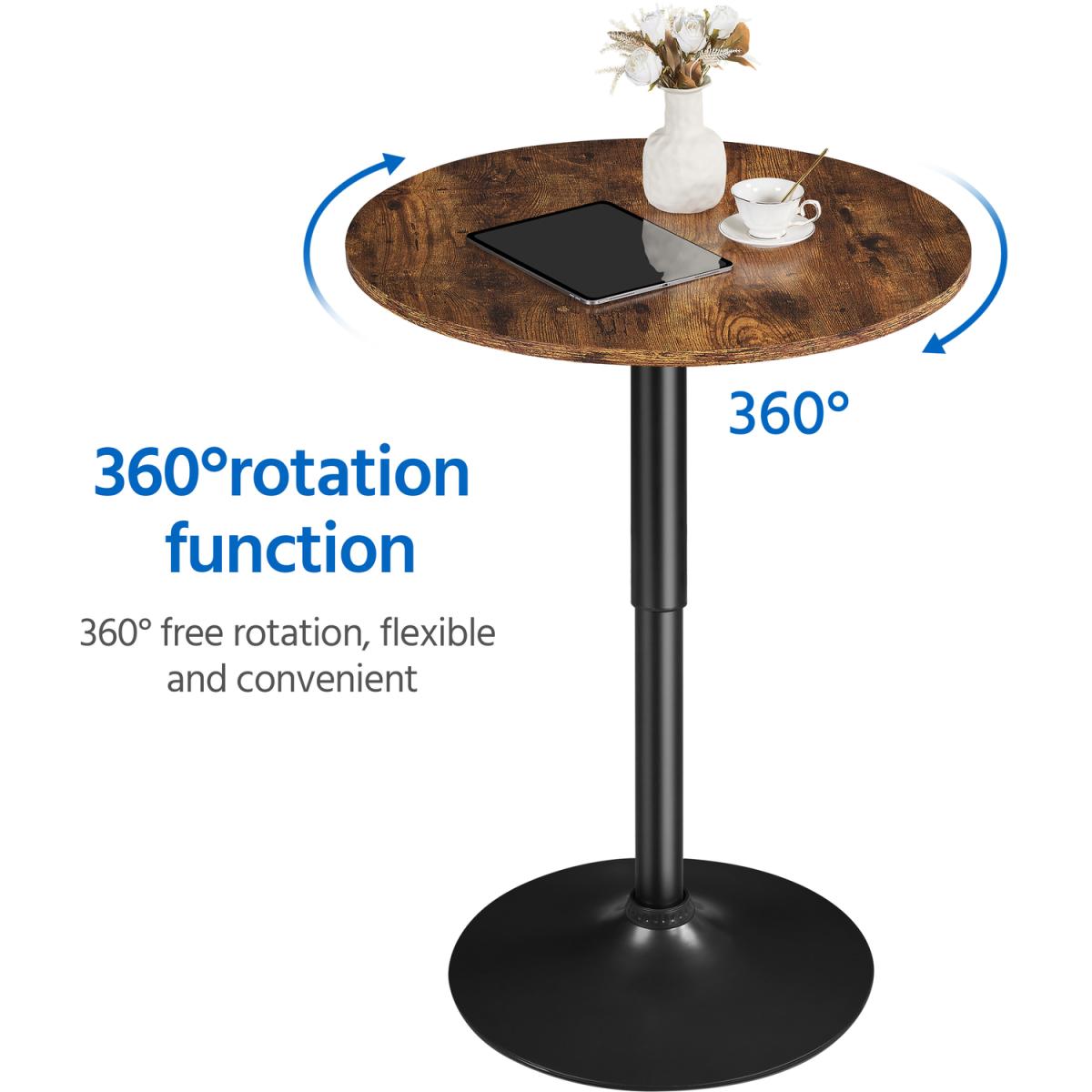 Looking for a table that can be transformed from a bistro table to a counter-height table when needed This height-adjustable pub table is your pick. This pub table is constructed of a water-resistant MDF tabletop and a powder-coated metal stand, a solid structure with a high load capacity of up to 40 kg. The oxidation-resistant and water-resistant tables are suitable for both indoor and outdoor use. 360 swivel tabletop provides you easy access to drinks, snacks, or coffee, perfect for bars, pubs, parties, etc. This antique bar table can be used indoors or outdoors like a restaurant, bistro, cafe, patio, kitchen, or dining room, which can perfectly blend with your decor, and also adds a sense of elegance to the rooms.