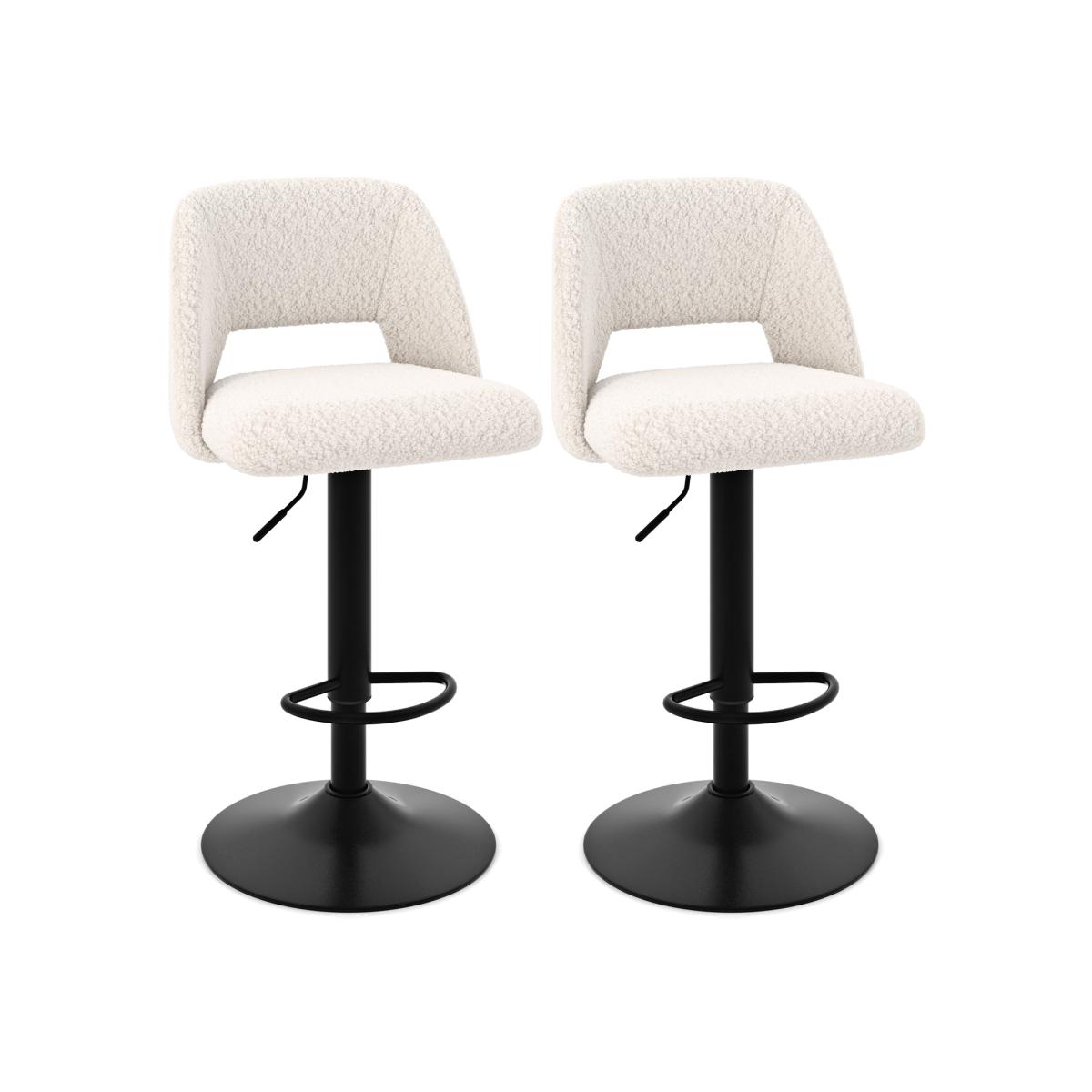 Experience unmatched comfort and versatility with our adjustable swivel bar stools, which are ideal for any social or relaxation setting. Enjoy effortless comfort with these bar height stools, featuring soft teddy fabric, plush cushioning, supportive backrests and convenient footrests for optimal comfort and posture support. Adjust the seat height from 63 to 83 cm to easily match any counter or bar setup. The swivel seat simplifies interaction with your surroundings, eliminating the need to move the stool.