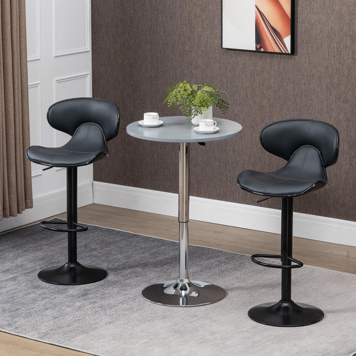 Adjustable Swivel Bar Stools Set of 2 with Footrest and Backrest - Grey