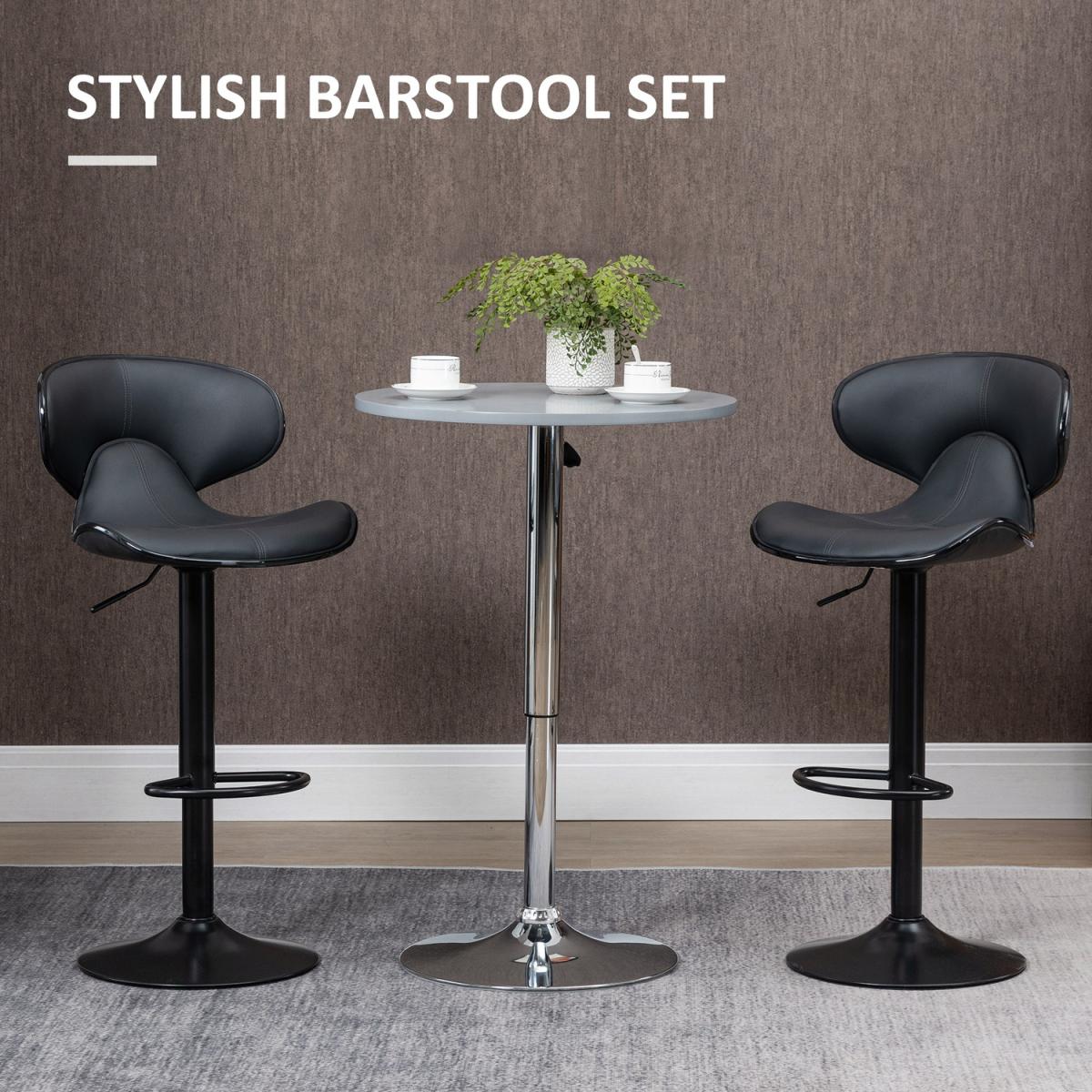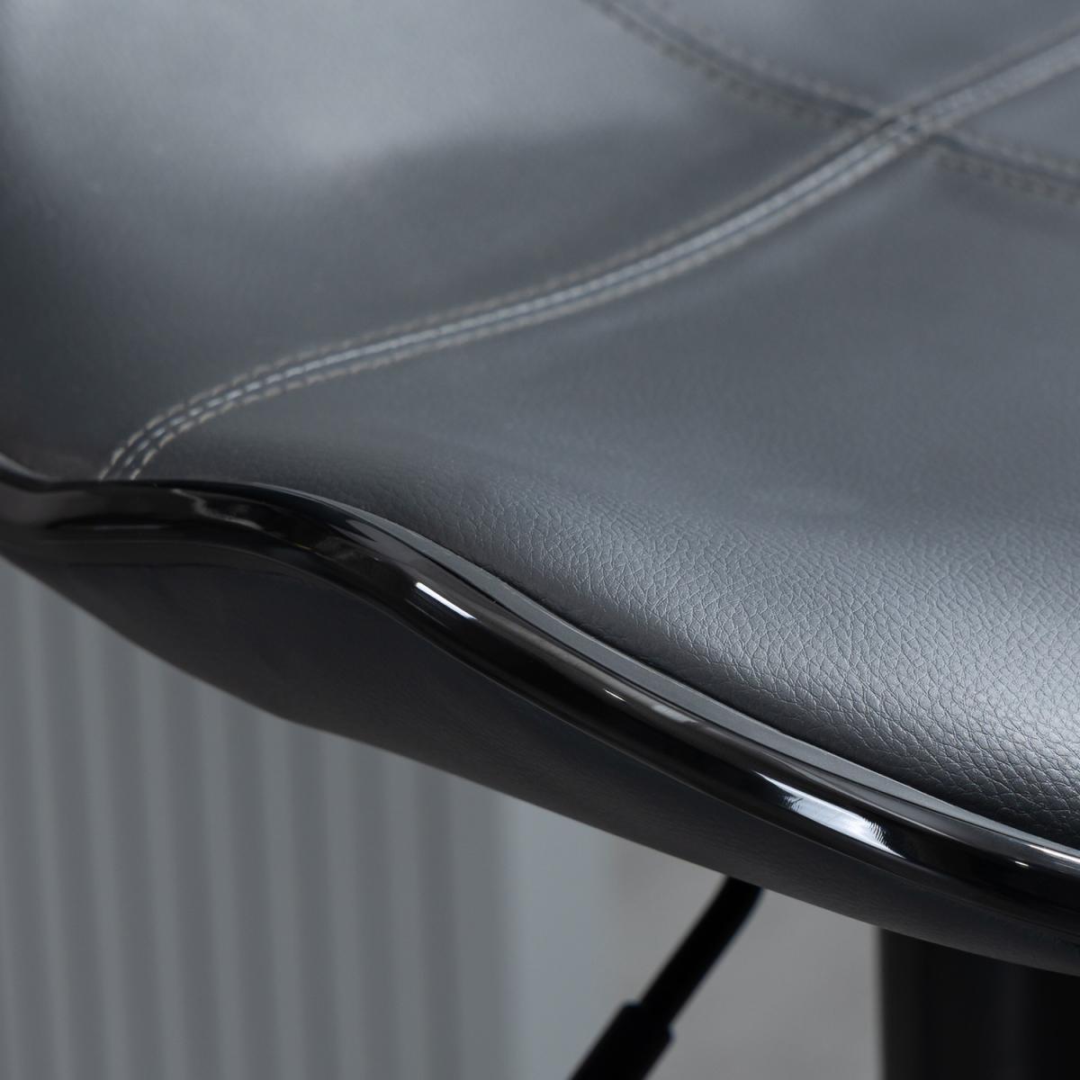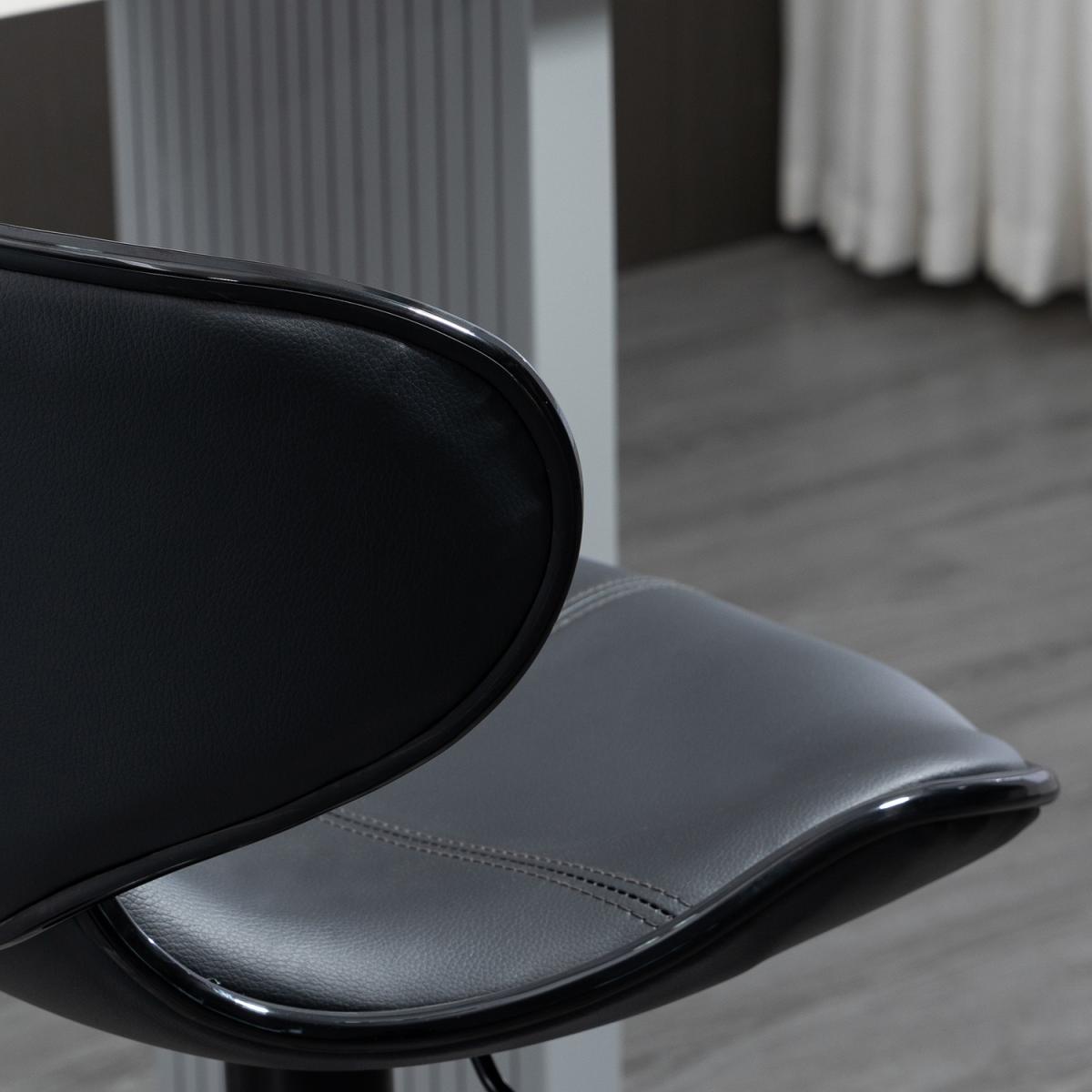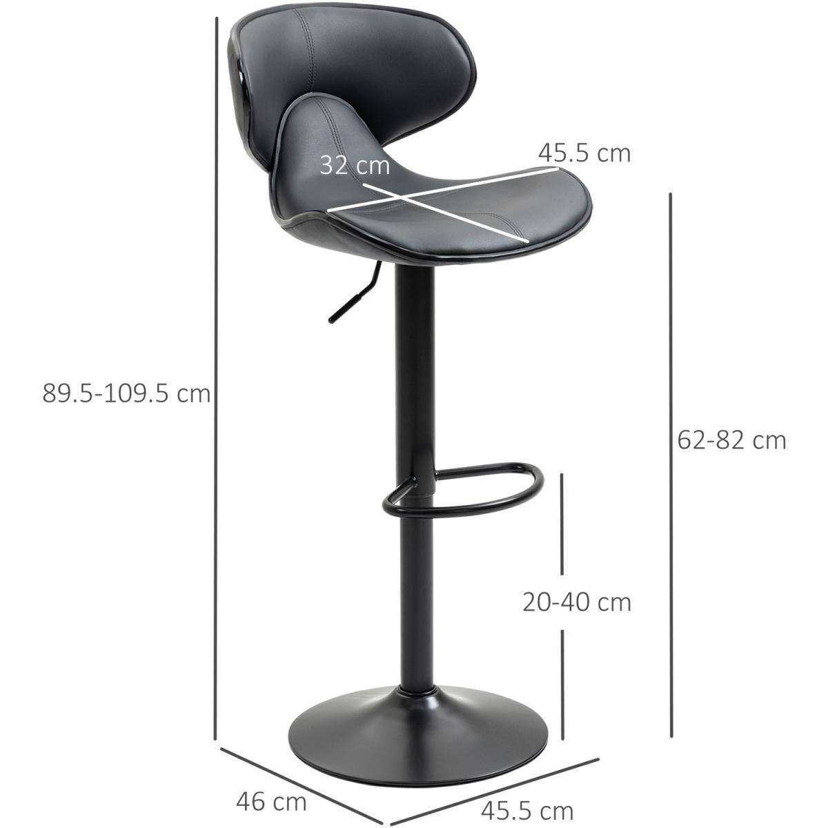 The faux leather seats are super sleek, the padded filling comfortable - the best of both worlds. Each seat is winged, formed into a curved shape for a unique look. Each seat is fitted on a steel base for full support, the height adjustable between 89.5cm-109.5cm to match to different countertop and dining tables. Complete with a handy foot rest. Comes in a set of two.