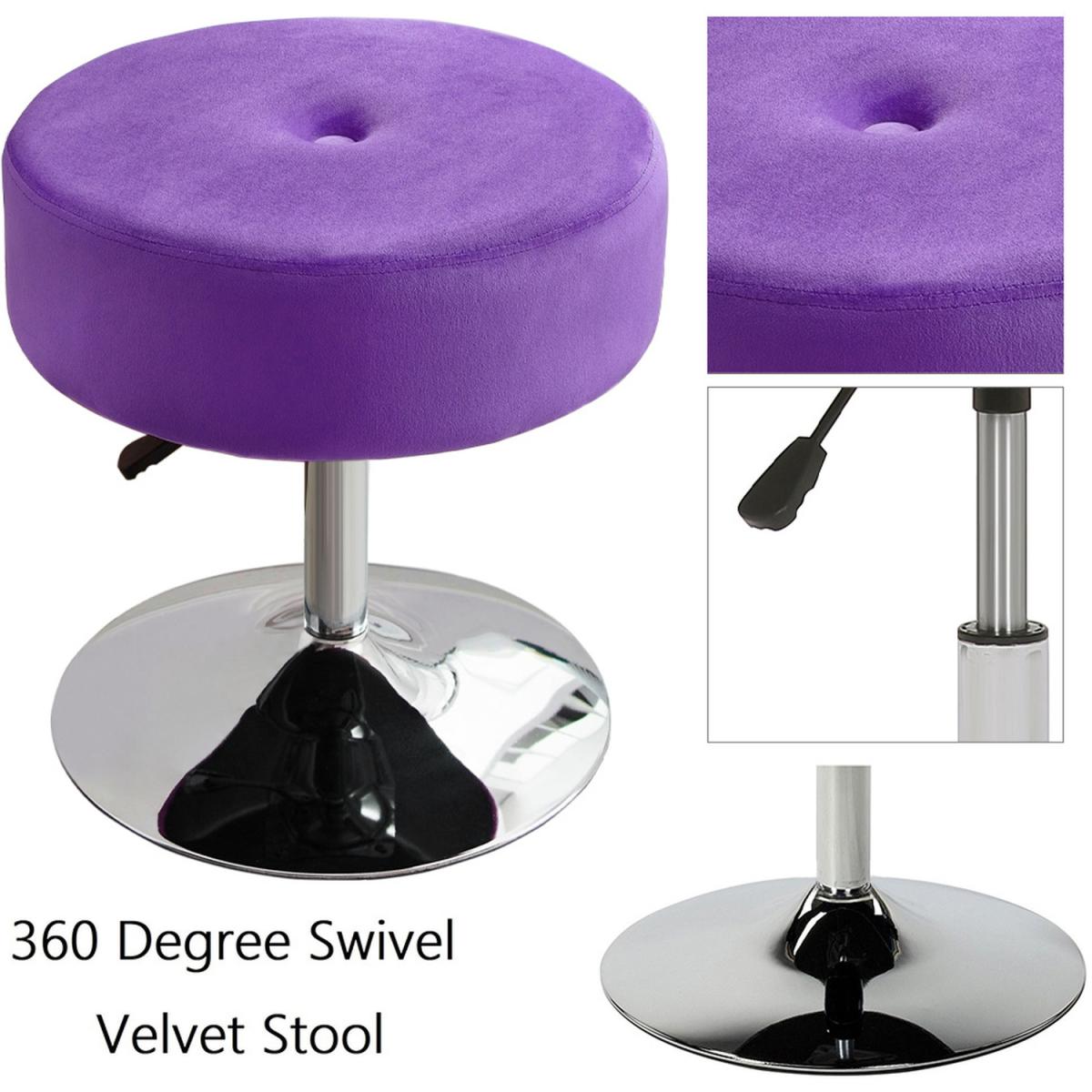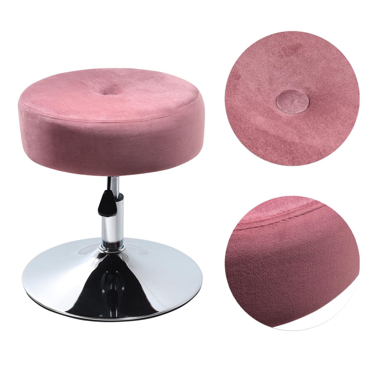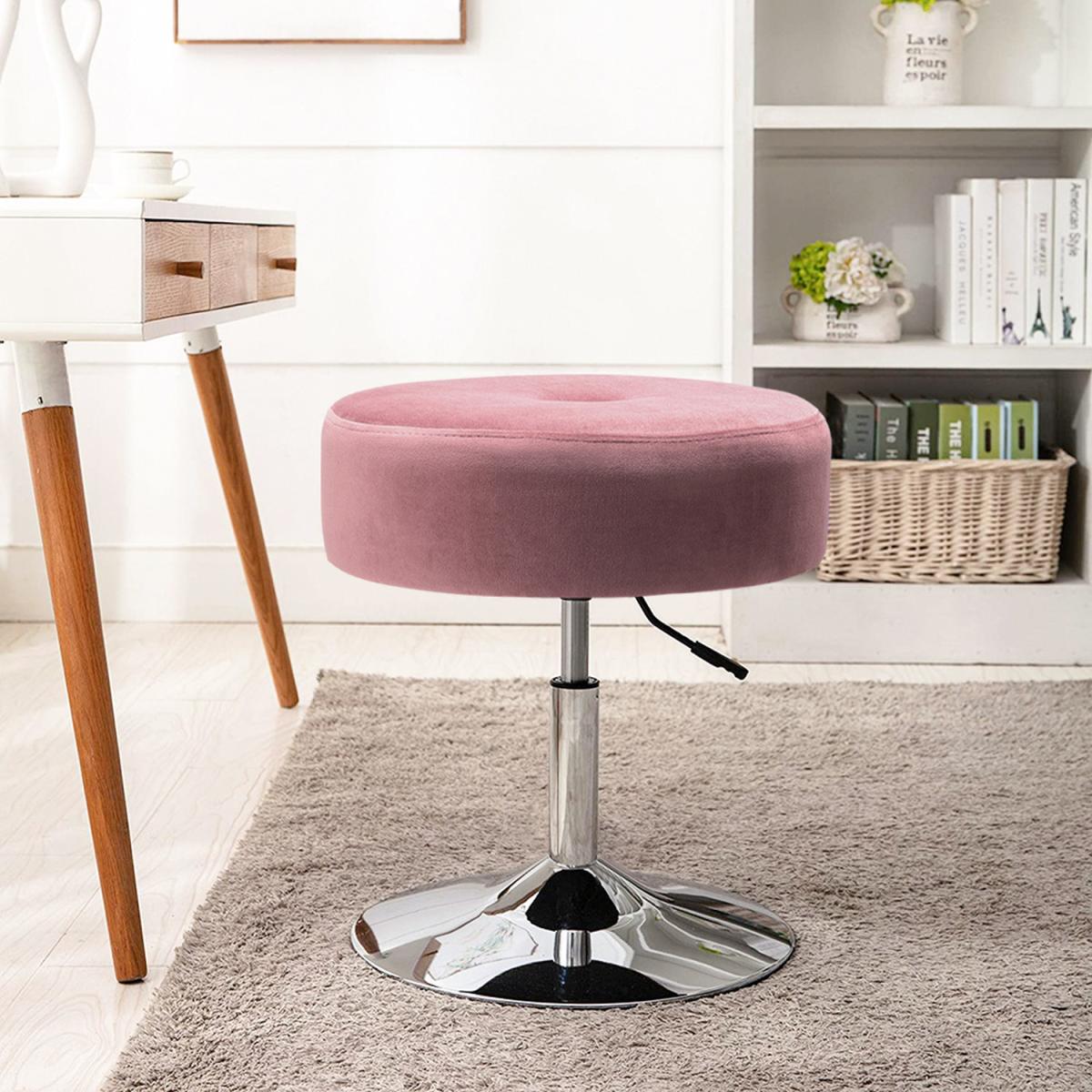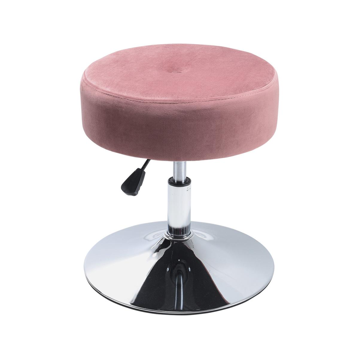 The comfortable seat cushion is fully padded by a high-density soft sponge for all day comfort. You can easily adjust the seat height by a hand lever, meet varying heights and applications. The stool is well constructed, very sturdy and durable. Weight capacity of more than 350L. Bs. The soft velvet fabric padded seat can be 360 degrees swivelled.