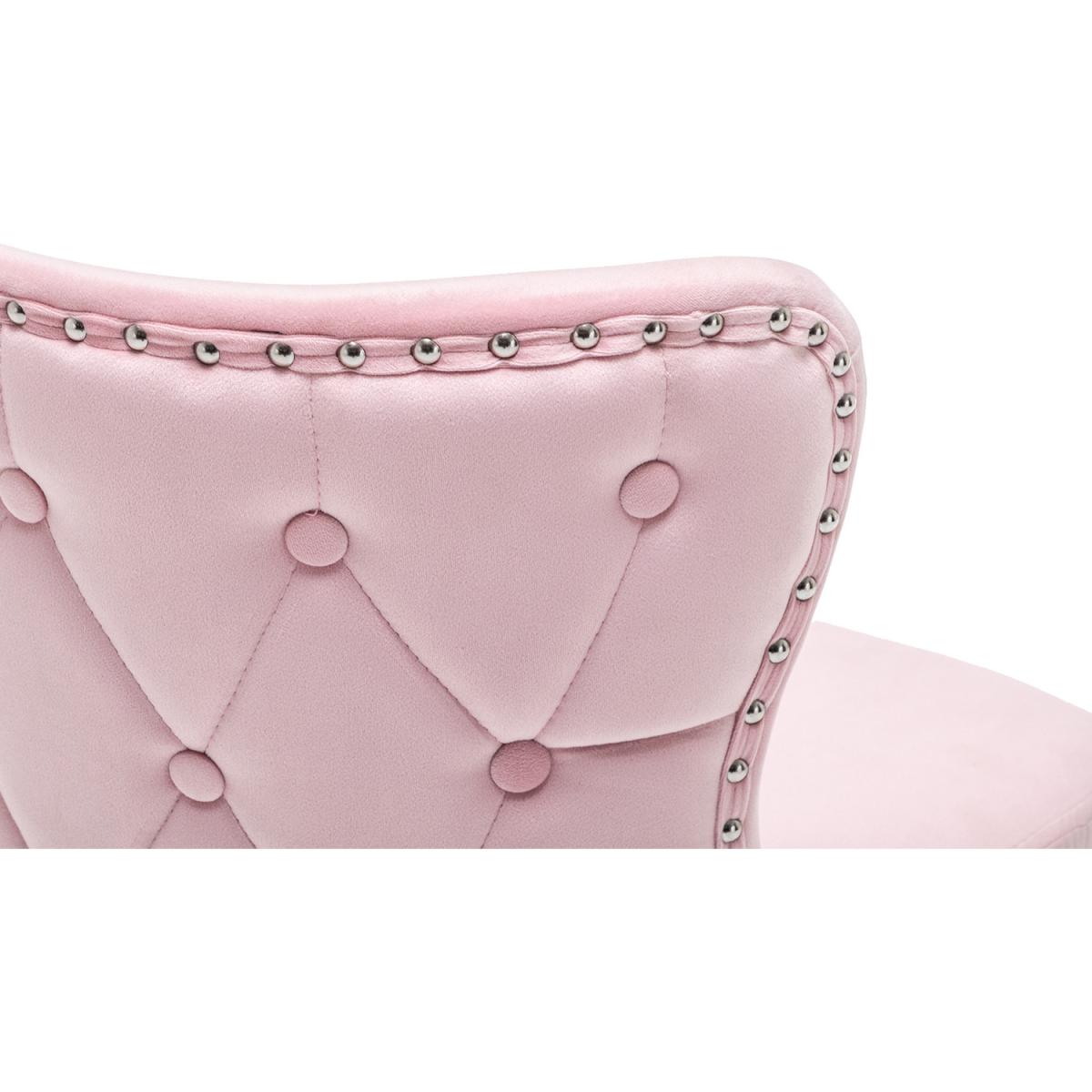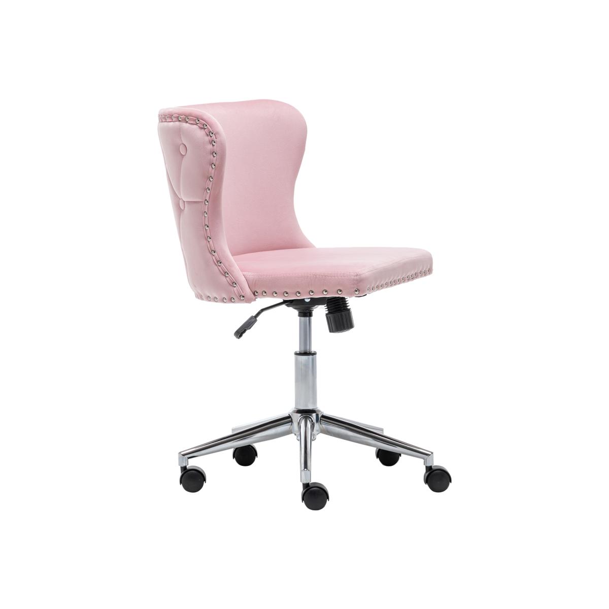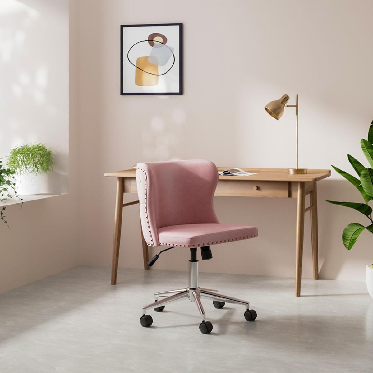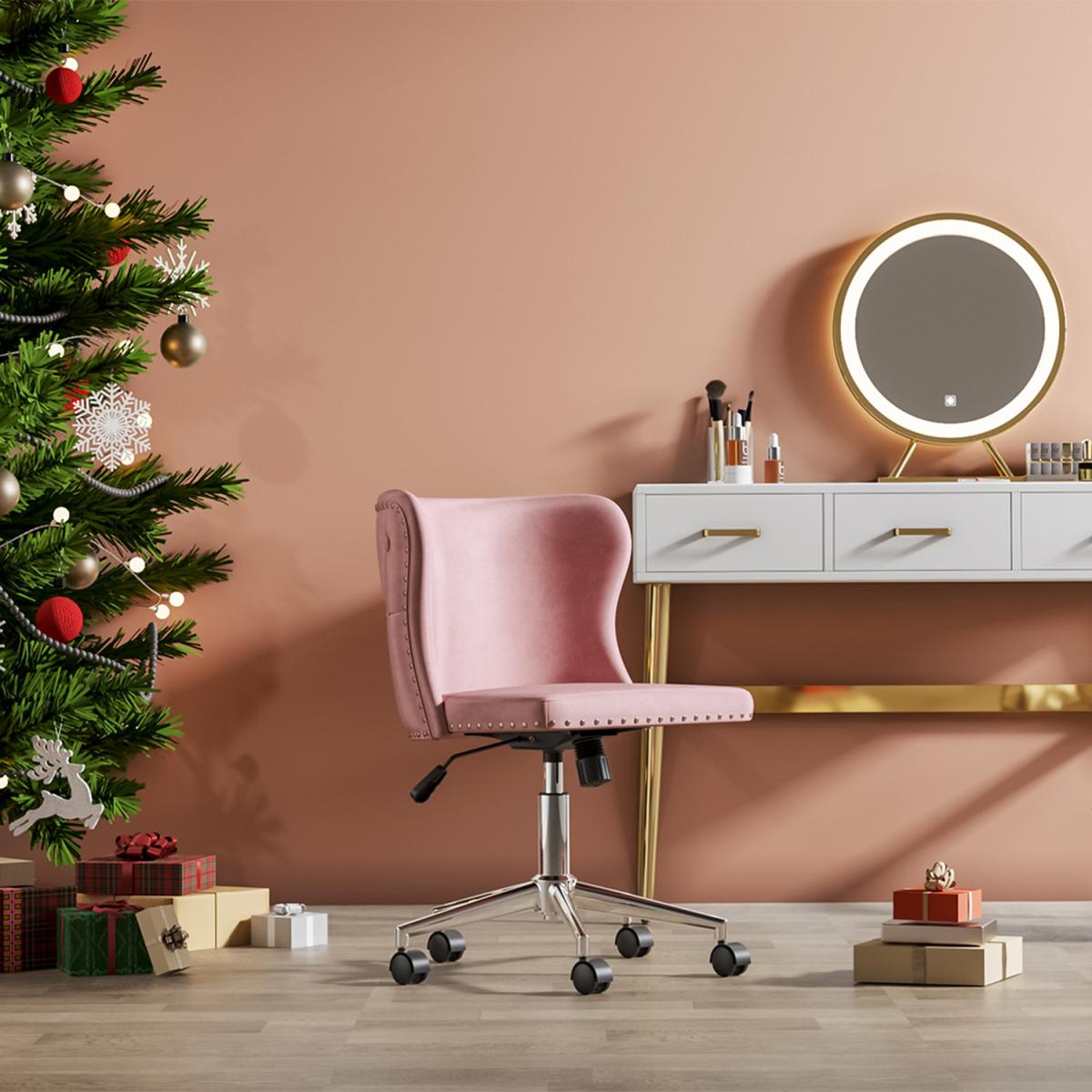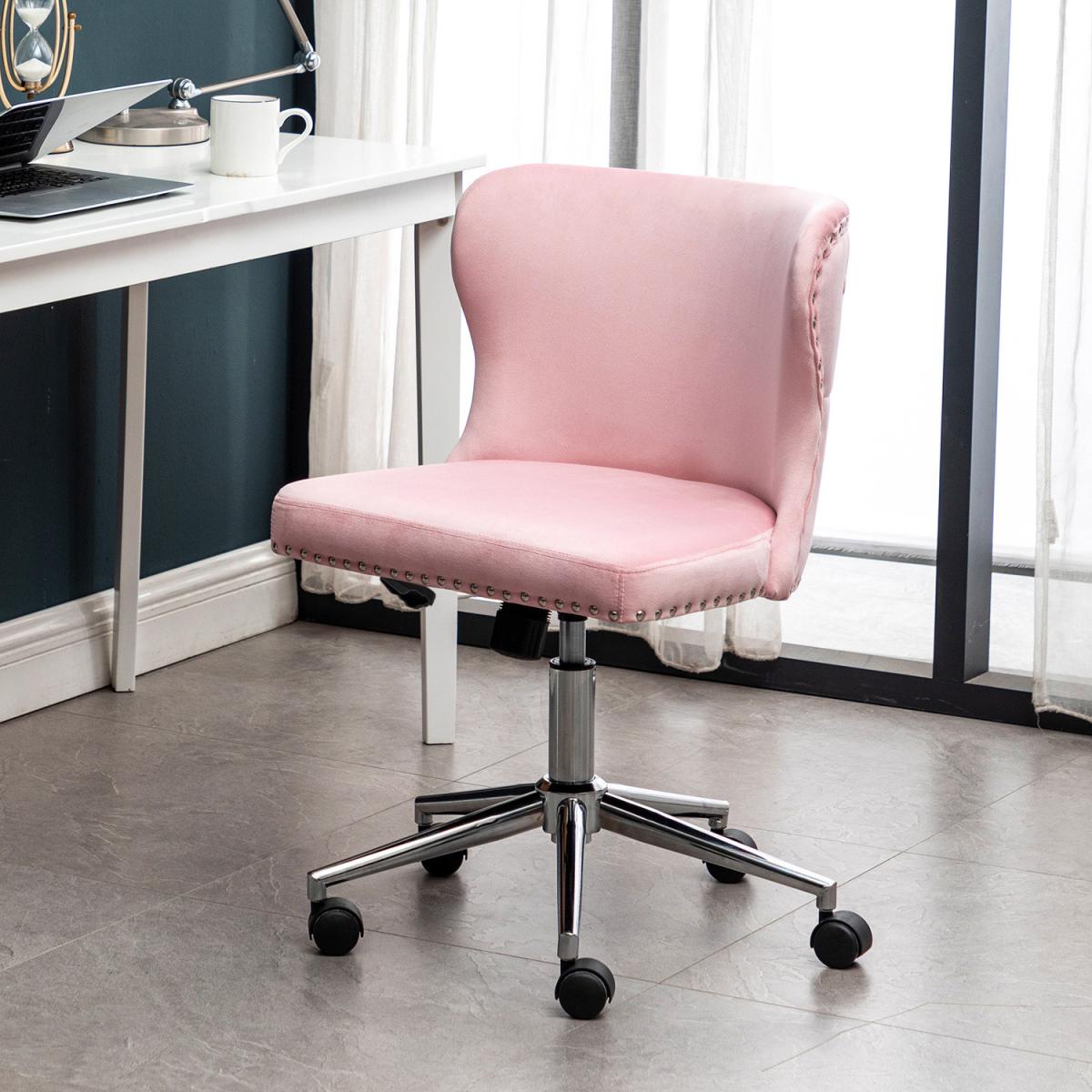 Smooth chrome finish base also features excellent rust-resistance and durability, with high load capacity, ready for your long term use. The padded back and seat feature a soft velvet cover and thick high elastic sponge which will make you feel comfortable and relaxed. Modern office chair comes with an adjustable human-curved lumbar support backrest. On the top, there are some buttoning details, which liven up the whole fitting. No body-shape limit, no posture limit. You can sit as comfortably as you want. Simple and quick assembly is required. All parts, hardware and tool are provided for your convenience. This fancy chair will be a nice-looking addition to your bedroom, study, dorm room, office, etc.
