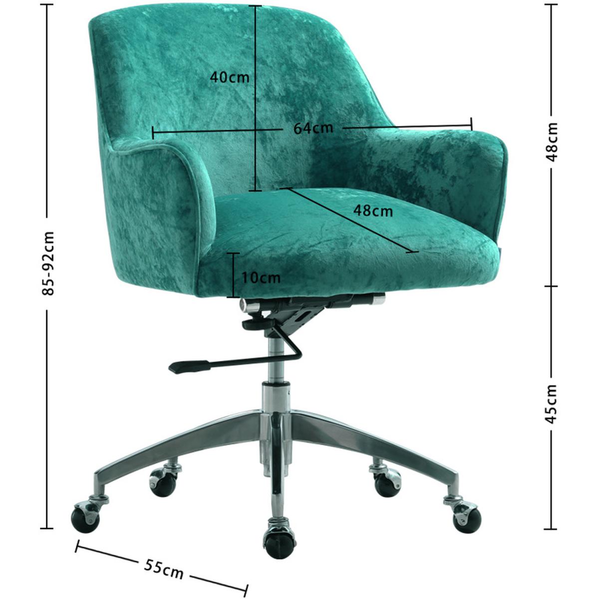 I love the light green velvet office chair for its vibrant yet soft colour, which can add a refreshing touch to both modern and vintage-inspired interiors. It works particularly well in lighter, airy spaces, bringing a pop of colour without overpowering the overall scheme. Practical styling tips include pairing it with neutral or muted tones in desks and accessories to let the chair stand out, or combining it with brass or gold accents for a touch of sophistication. Its plush upholstery offers comfort for long working periods, making it a stylish yet functional choice for a home office or contemporary workspace.