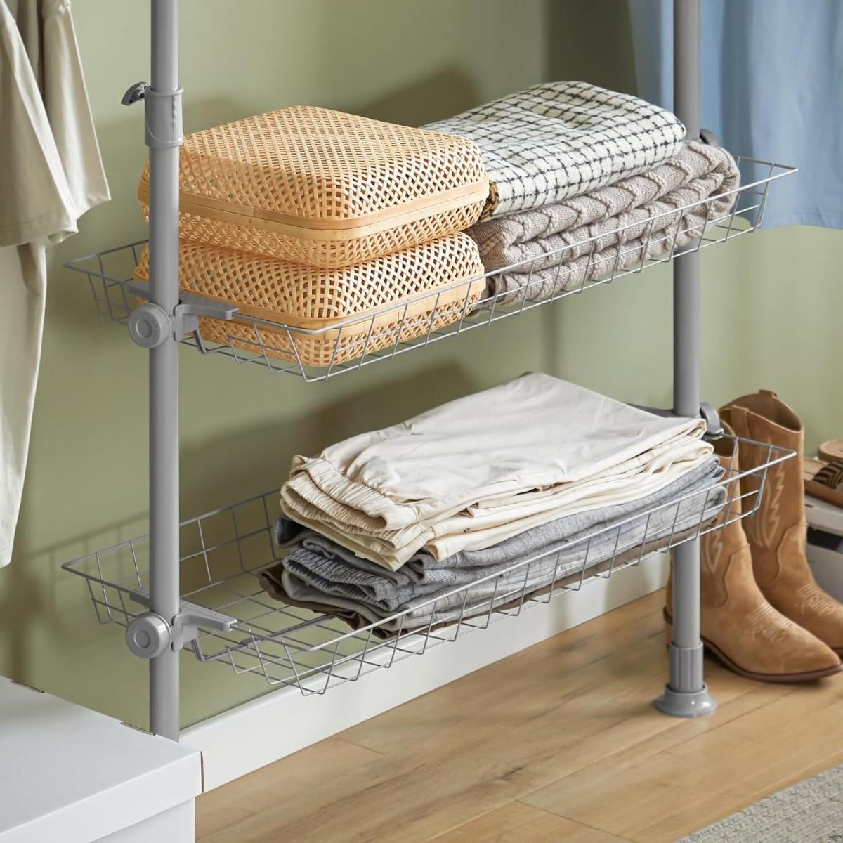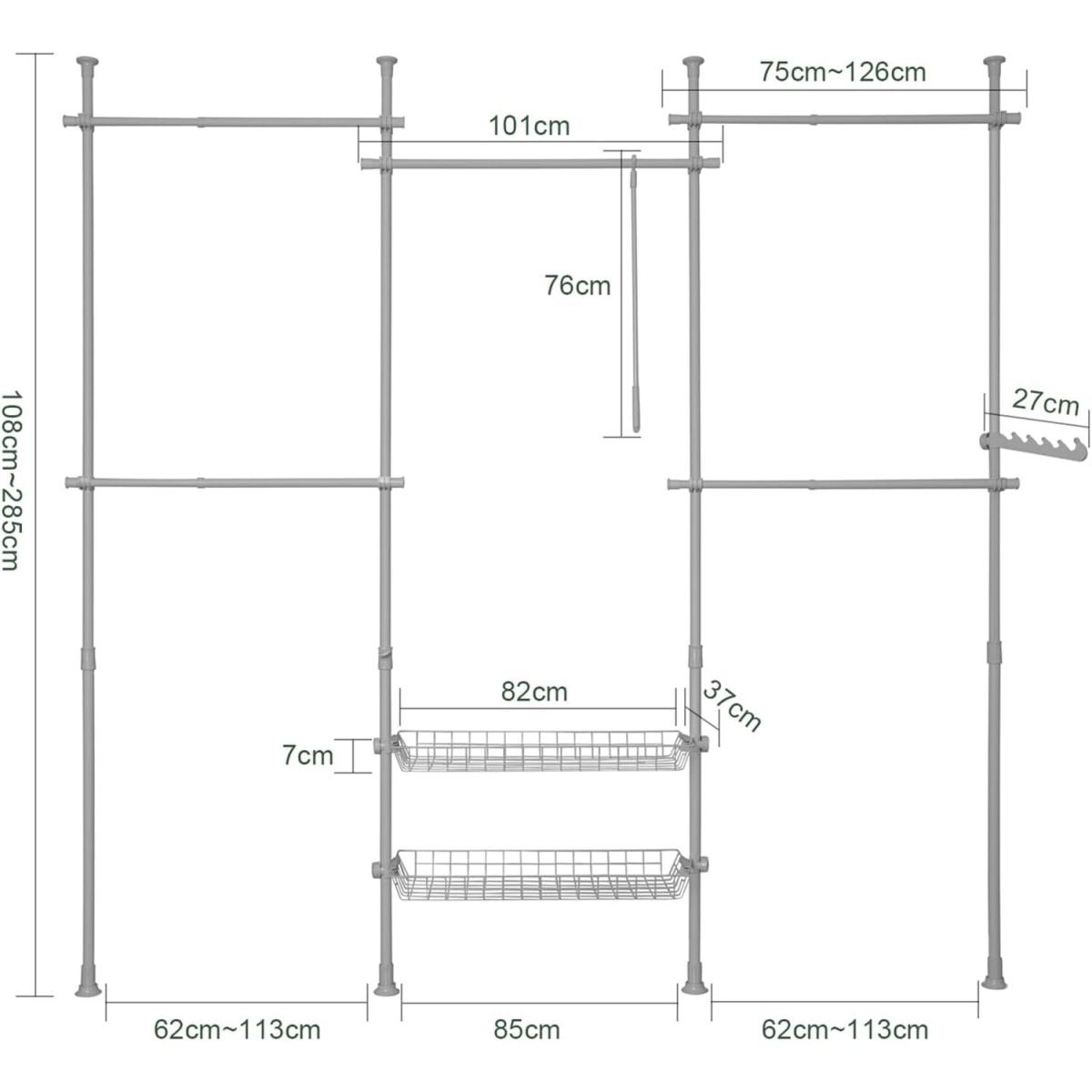 Whether you'll slot this Adjustable Wardrobe Organiser into your bedroom, dressing room or even your living room, its clever design will prove the ideal way to boost your storage space. Designed to work like a wardrobe without taking up nearly as much room, the nifty system can easily be made taller or wider to perfectly suit your space - or your ever-expanding wardrobe! Features Adjustable system. Variable size. Stable and simple design. Little space taking. Plenty of storage space. Quick and easy installation. Product Details Material Metal tubes and plastic connectors. Dimensions W(209-311) x D37 x H(200-285)cm. Weight 8.7kg. Loading capacity 62kg. The decorative elements are not included in the delivery. Item comes in a flat pack and requires self-assembly. Detailed instructions supplied.