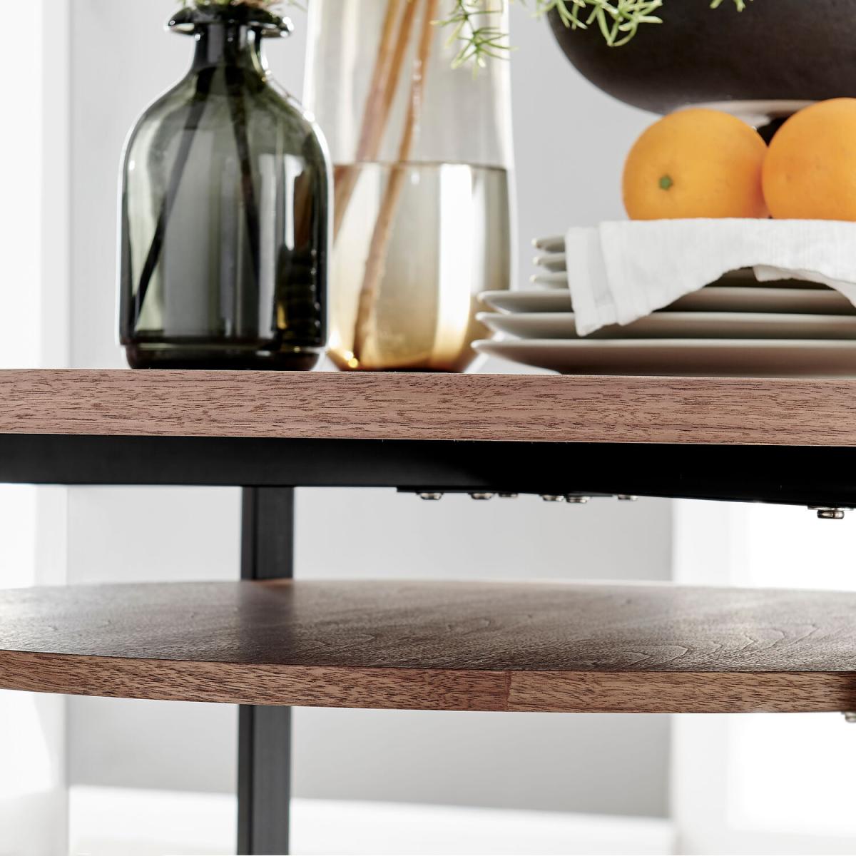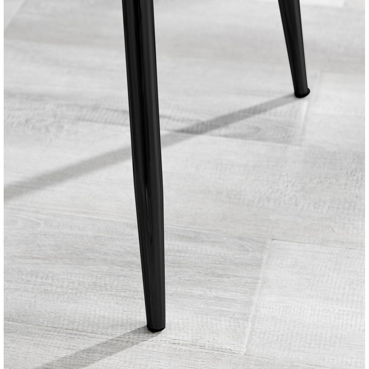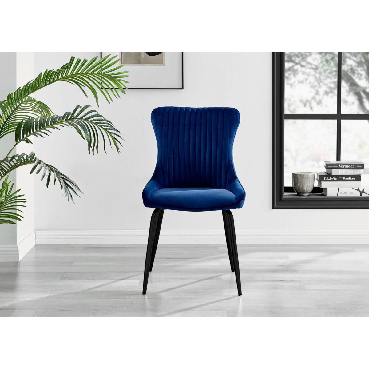 Our fabulous Adley round dining table with built-in storage shelf and structural metal legs is a big hit here at Furniturebox HQ! Designed by our own resident artist, Laura, who knows how much of a pain it is to clear off the school and office work from the table for dinner. She designed the Adley with this brilliant storage shelf, so you can quickly and easily move anything from the top out the way and keep things looking neat. We love it! A luxurious high-quality wood veneer finish to the top and storage shelf, and industrial black metal legs that form an eye-catching cross at the base. Comfortably seats 4. This will absolutely be a centrepiece for your home, serving all the form and the function. Easy wipeclean surfaces will keep it looking new for years to come. Also available in a range of other coloursmaterials. The Nora chair is a super-stylish modern chair with a nod to the classic wingback design. The elegant vertical piping stitching to the back and ergonomically designed seat sat on 4 slightly tapered legs make this uncluttered, classy and comfortable. This modern dining chair is upholstered in a soft velvet fabric which is modern and sophisticated. The black powder coated metal legs have a matte effect which adds an industrial design to these contemporary dining chairs.