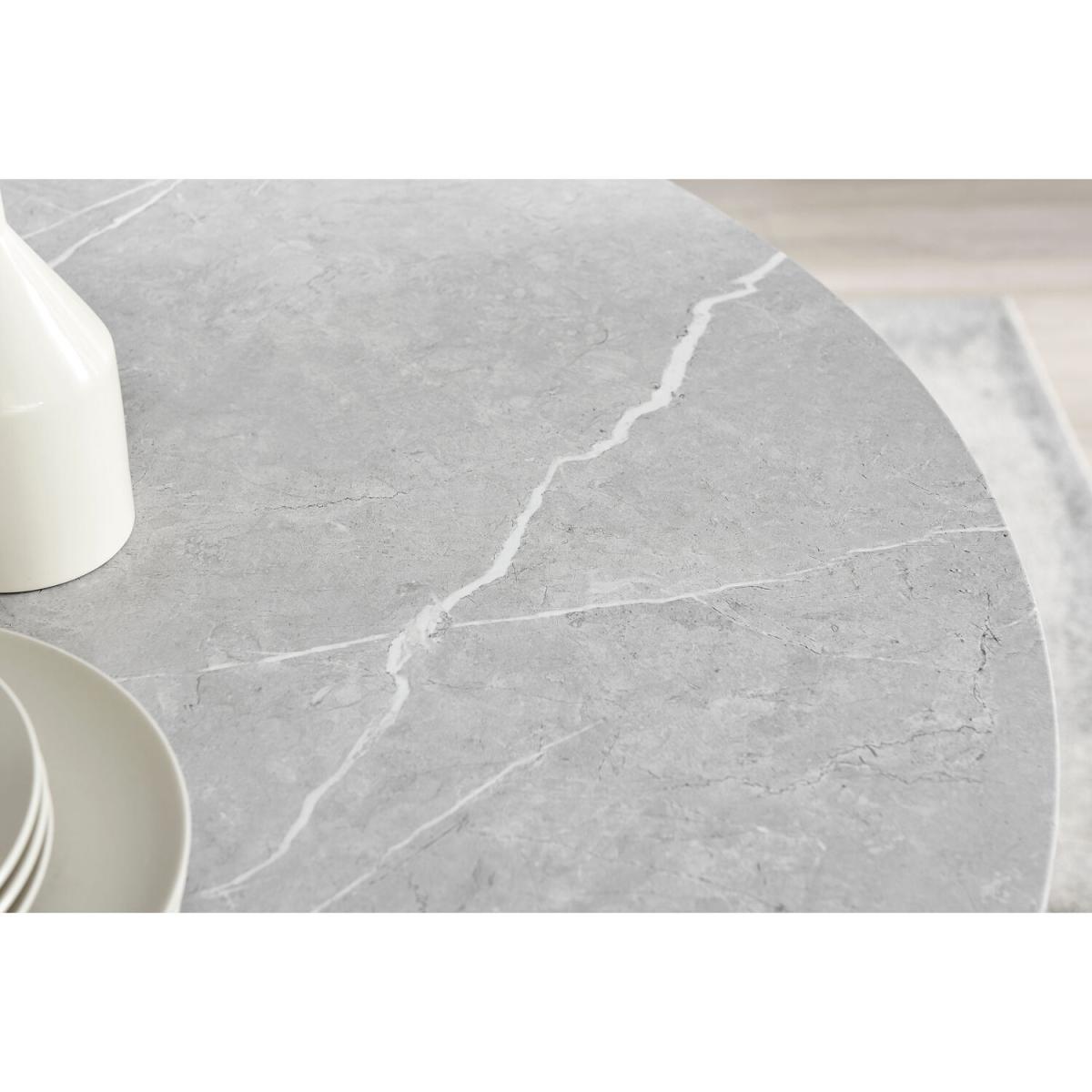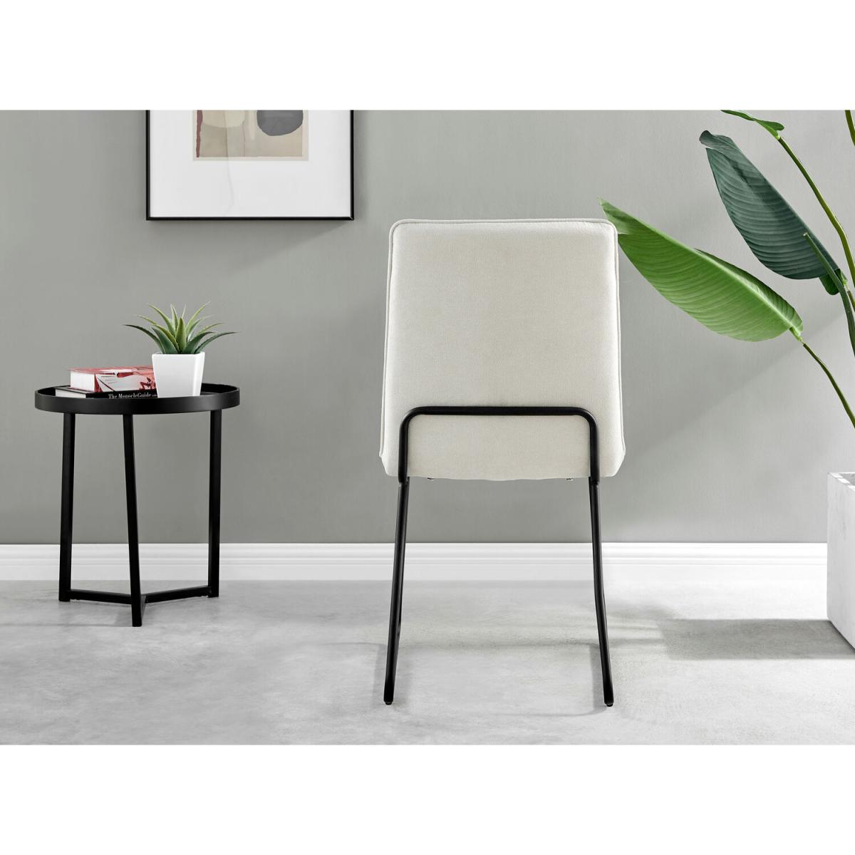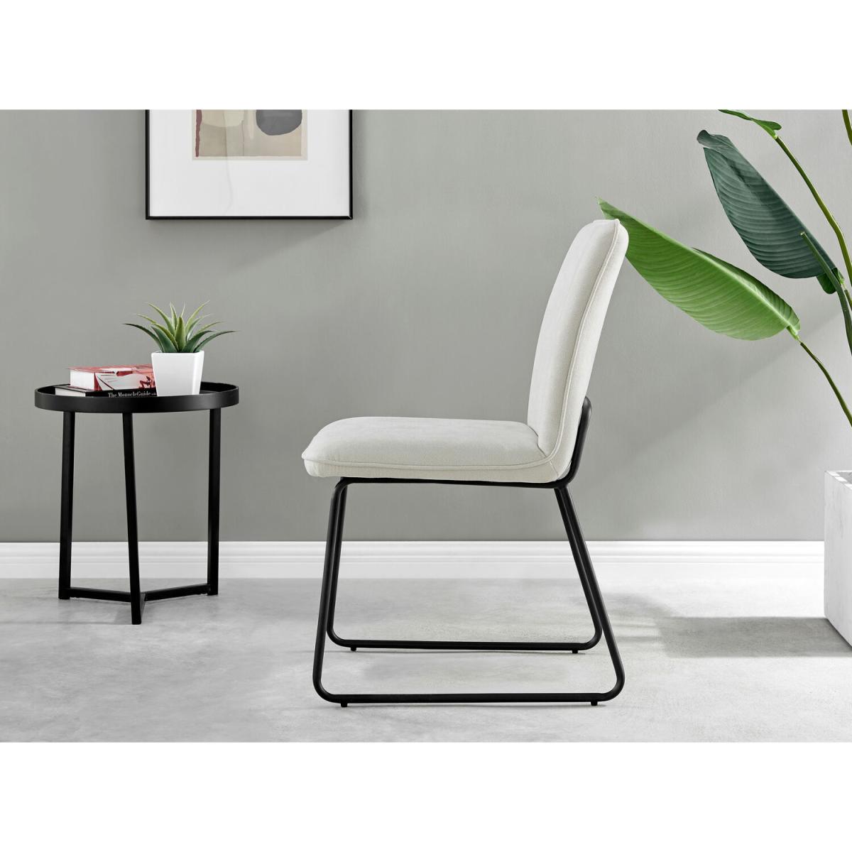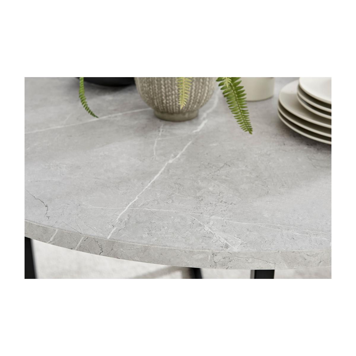 Our fabulous Adley round dining table with built-in storage shelf and structural metal legs is a big hit here at Furniturebox HQ! Designed by our own resident artist, Laura, who knows how much of a pain it is to clear off the school and office work from the table for dinner. She designed the Adley with this brilliant storage shelf, so you can quickly and easily move anything from the top out the way and keep things looking neat. We love it! A luxurious high-quality matte grey concrete finish to the top and storage shelf, and structural industrial black metal legs that form an eye-catching cross at the base. Comfortably seats 4. This will absolutely be a centrepiece for your home, serving all the form and the function. Easy wipeclean surfaces will keep it looking new for years to come. Also available in a range of other coloursmaterials. The Halle chair is a super-stylish design with nods to postmodern mid-century classic elements. The clean lines of the deep-padded seat and on-trend industrial metal legs connected front and back with open diamond spaces will keep your dining or living room looking chic and classy. The fabric upholstery adds texture, depth and warm natural tones to this dining chair. The black powder coated metal legs have a matte effect which adds an industrial design to these contemporary dining chairs.