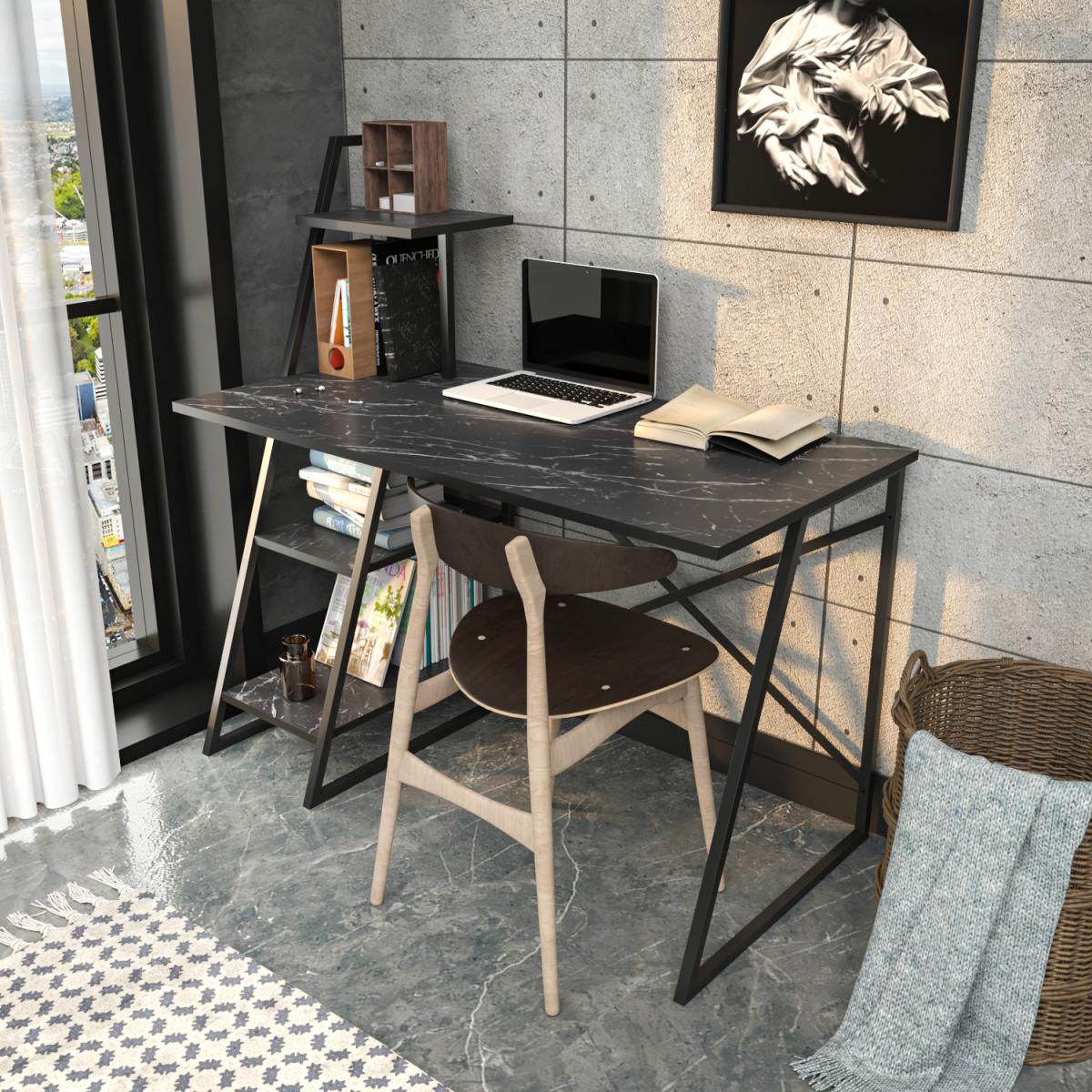 Admira Computer Desk - Black Marble Effect and Black - Black