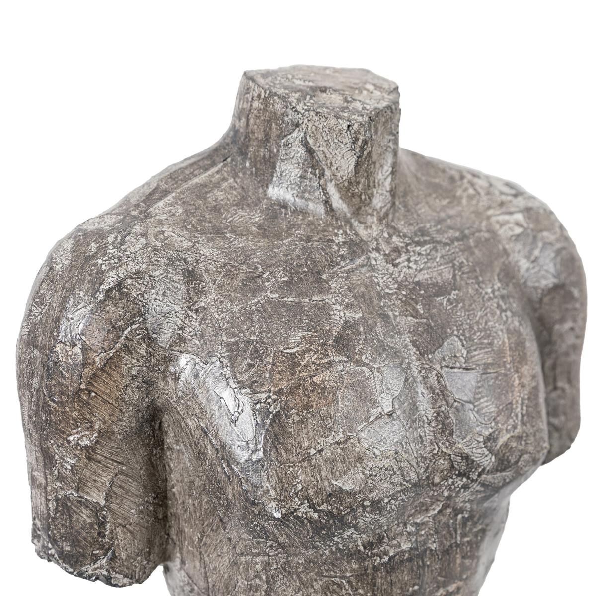 Celebrating the strength of the male form, this sculpture is a modern update on a classic. Cast in grey stone-like resin on a black stone style base, the sculpture coordinates beautifully with the coordinating female sculpture.