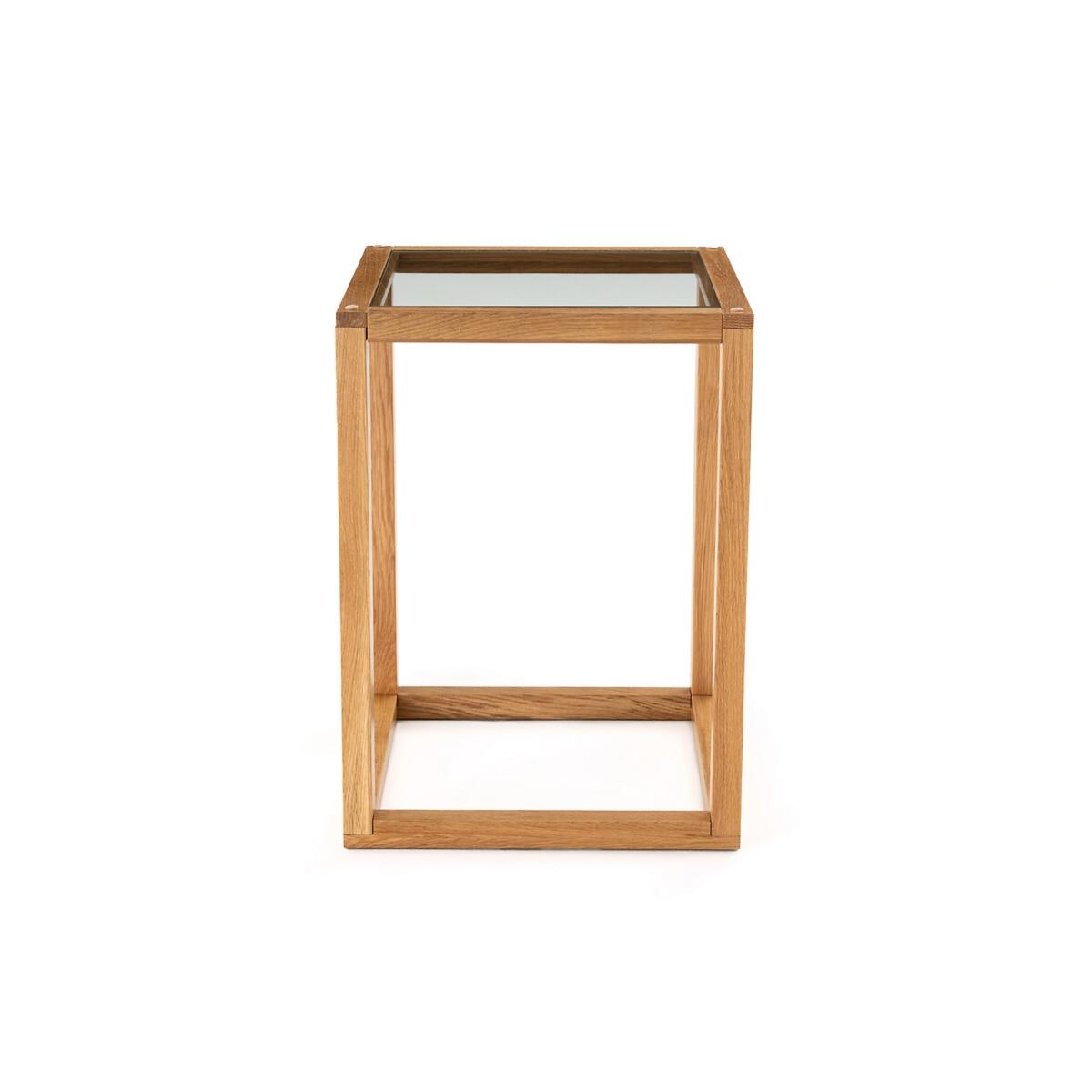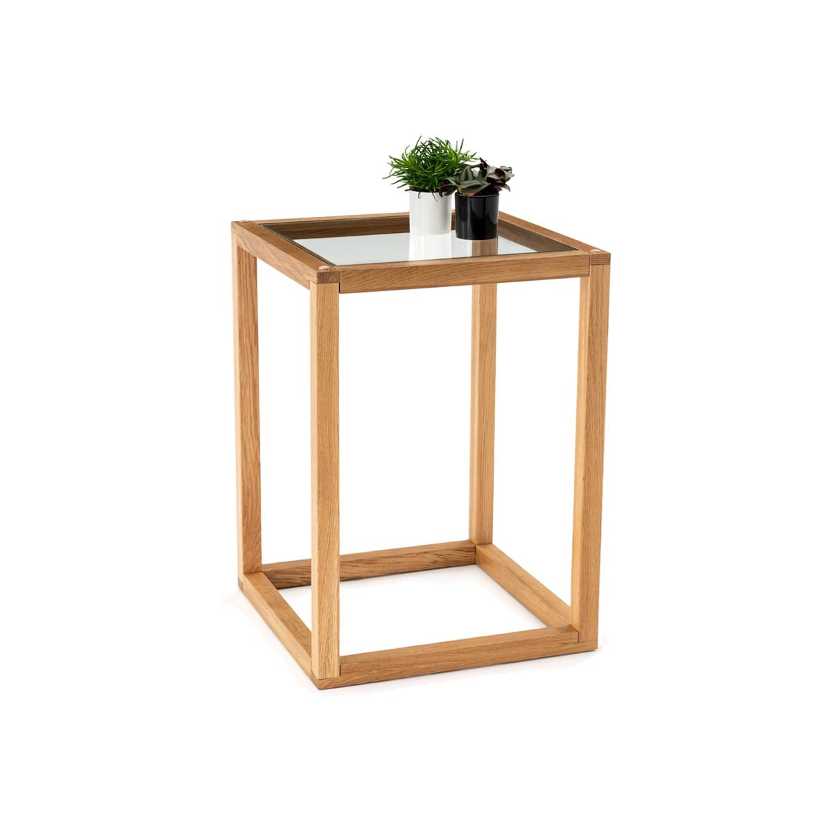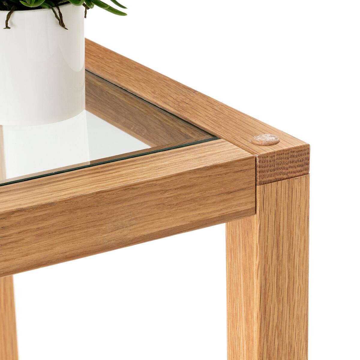 I love this little oak and glass table for its simplicity and versatility. It works particularly well in minimalist, Scandinavian, or contemporary interiors, where its natural wood finish adds warmth without cluttering the space. It’s perfect as a side table next to a sofa or bed, but also doubles up as a statement piece in a hallway or breeze block if styled with a small lamp, a plant, or a stack of books. Practical styling tips include keeping surface clutter-free for a sleek look, or layering with textured accessories like a woven coaster or decorative tray to add interest. Its transparent glass top makes it easy to pair with various colour schemes and furniture styles, making it a flexible choice for many interiors.