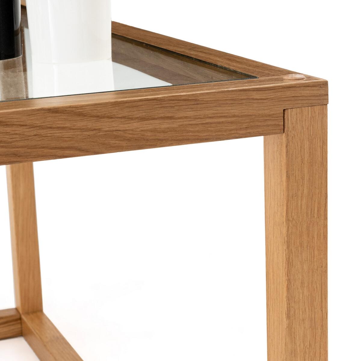 I really like this table because it combines natural oak with a sleek glass top, giving it a modern yet warm feel. It works exceptionally well in contemporary and minimalist interiors, adding a touch of sophistication without overwhelming the space. For styling, I’d suggest pairing it with neutral or monochrome accessories to let the materials shine, or add a few colourful books and greenery for a lively touch. It’s also practical - the open frame design keeps the space feeling airy, and the glass surface is easy to keep clean, making it ideal for everyday use. Overall, this table is versatile and stylish, perfect for creating a balanced look in living rooms aiming for a clean, contemporary aesthetic.