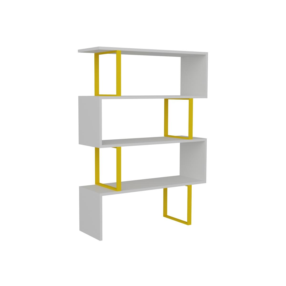Adria 4-Tier Bookshelf Shelving Unit - Yellow White / Particle Board