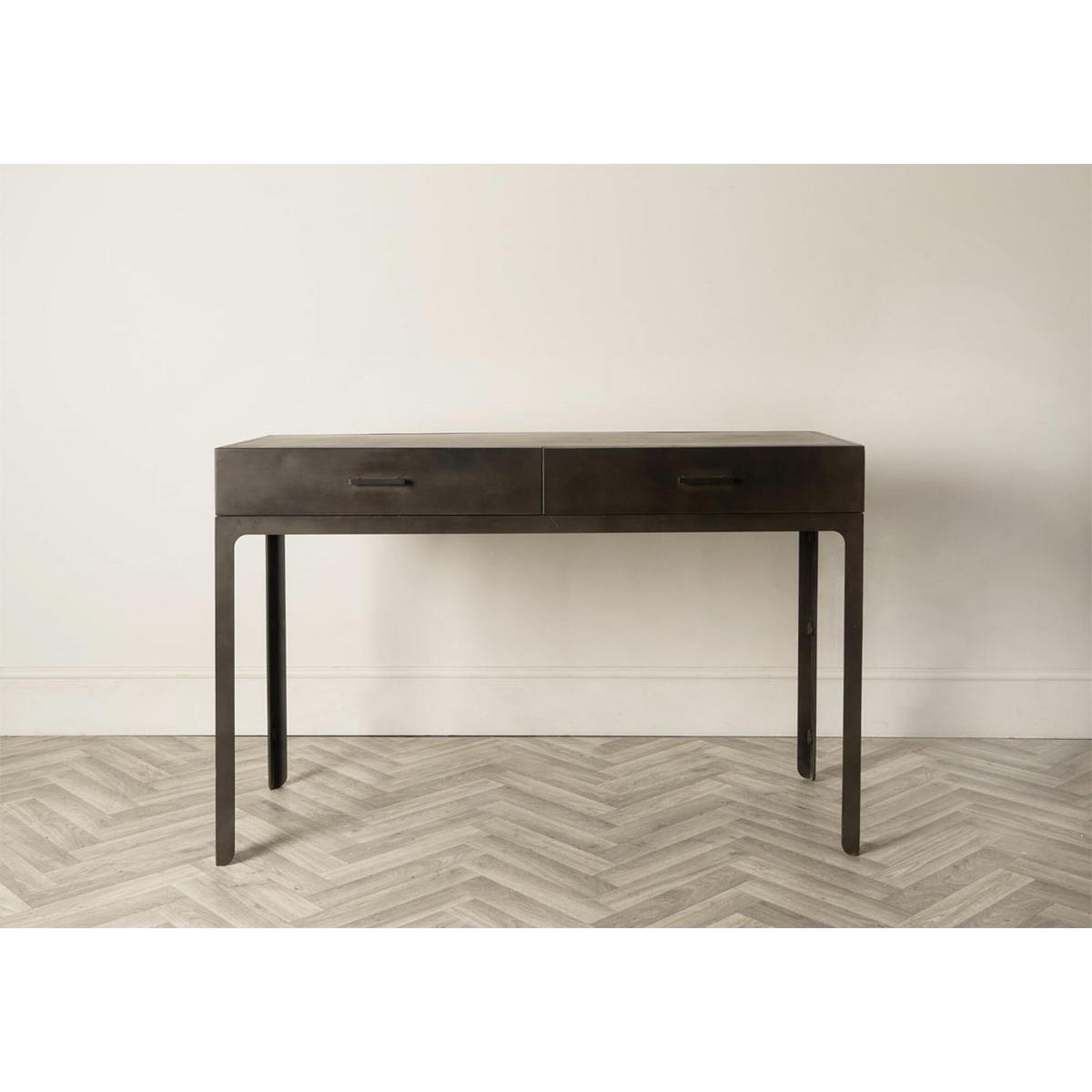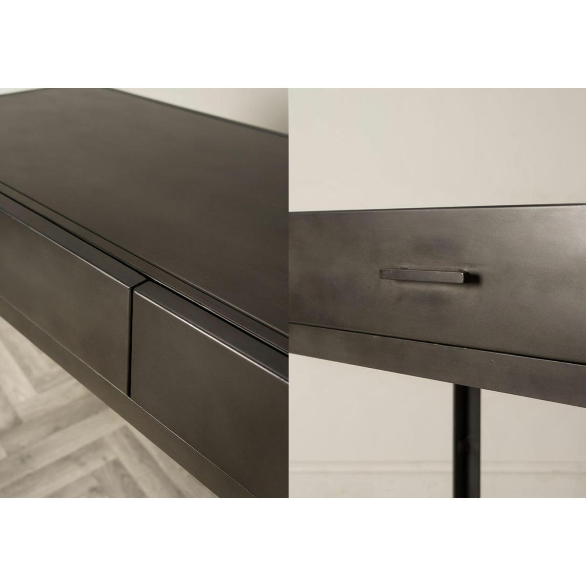Bringing a touch of industrial chic, there is something in the Adrian range for every home, whether you are looking for extra storage, durability or understated bold style. The fully metal form of the Adrian Iron Desk immediately and boldly highlights the sturdy qualities of the item, and the two front drawers combine ample desk storage with easy accessibility. A functional and enduring desk that won't let you down.