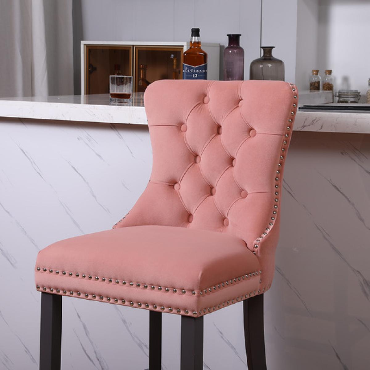 I love this pink barstool for its statement-making colour and elegant tufted design, which adds a touch of sophistication and charm. It works well in contemporary or vintage-inspired interiors, where a pop of colour can elevate the overall decor. Practical styling tips include pairing it with a neutral bar or kitchen island to let the pink stand out, or combining it with blush or pastel tones for a cohesive look. Its plush upholstery makes it comfortable for prolonged seating, while the nailhead trim adds a subtle decorative detail. This stool is perfect for adding a fun yet refined element to both casual breakfast bars and more formal entertaining spaces.