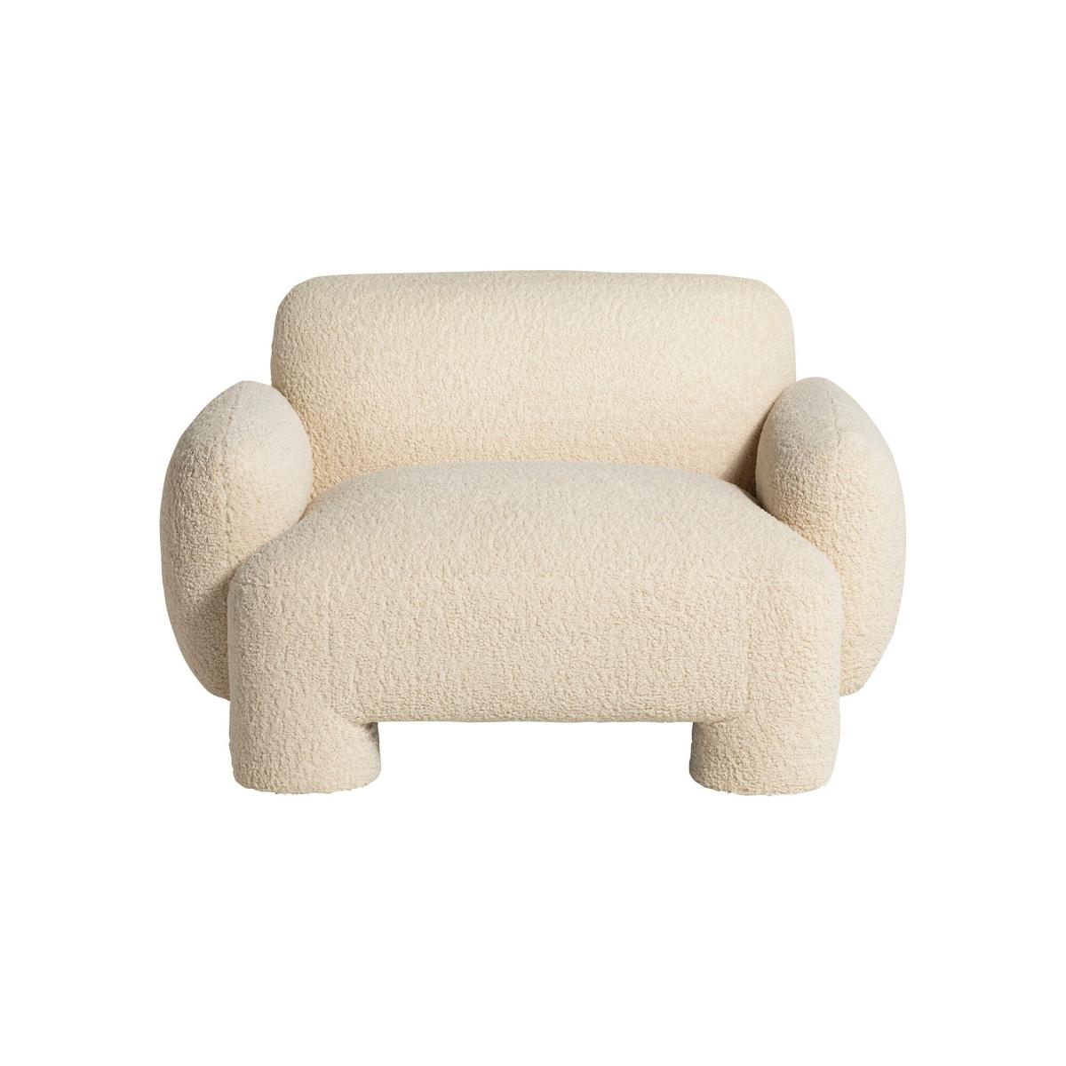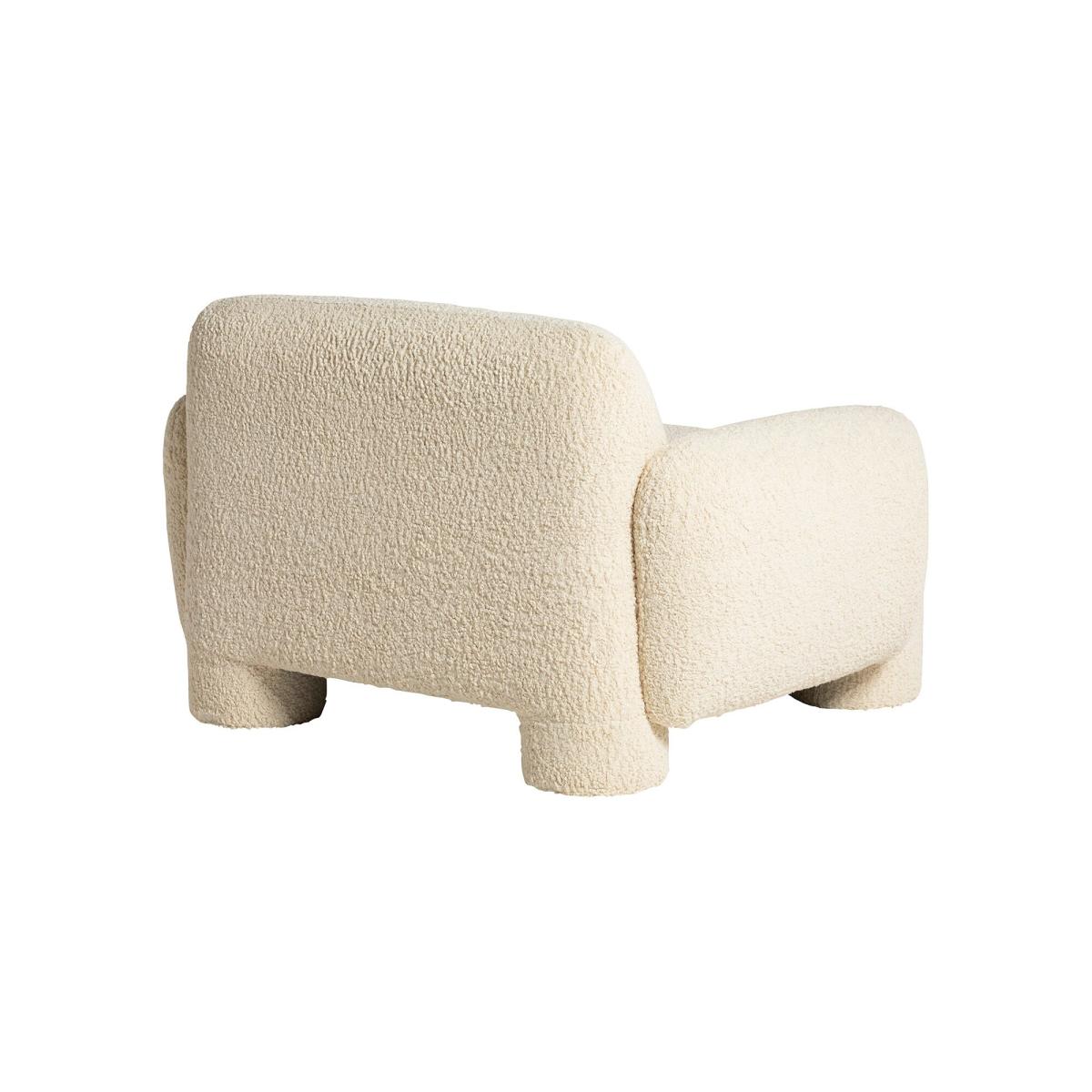 Featuring inviting white boucle fabric that gives gorgeous texture to the Adrina Armchair, this eye-catching chair offers a perfect blend of comfort and style for your living space. Crafted with tactile fabric, its warm hue exudes cosy elegance. Standing atop chunky round legs that not only provide sturdy support but also add a touch of modern sophistication. Sink into luxurious comfort as you unwind on its plump interiors while its contemporary design takes centre stage in your living space.