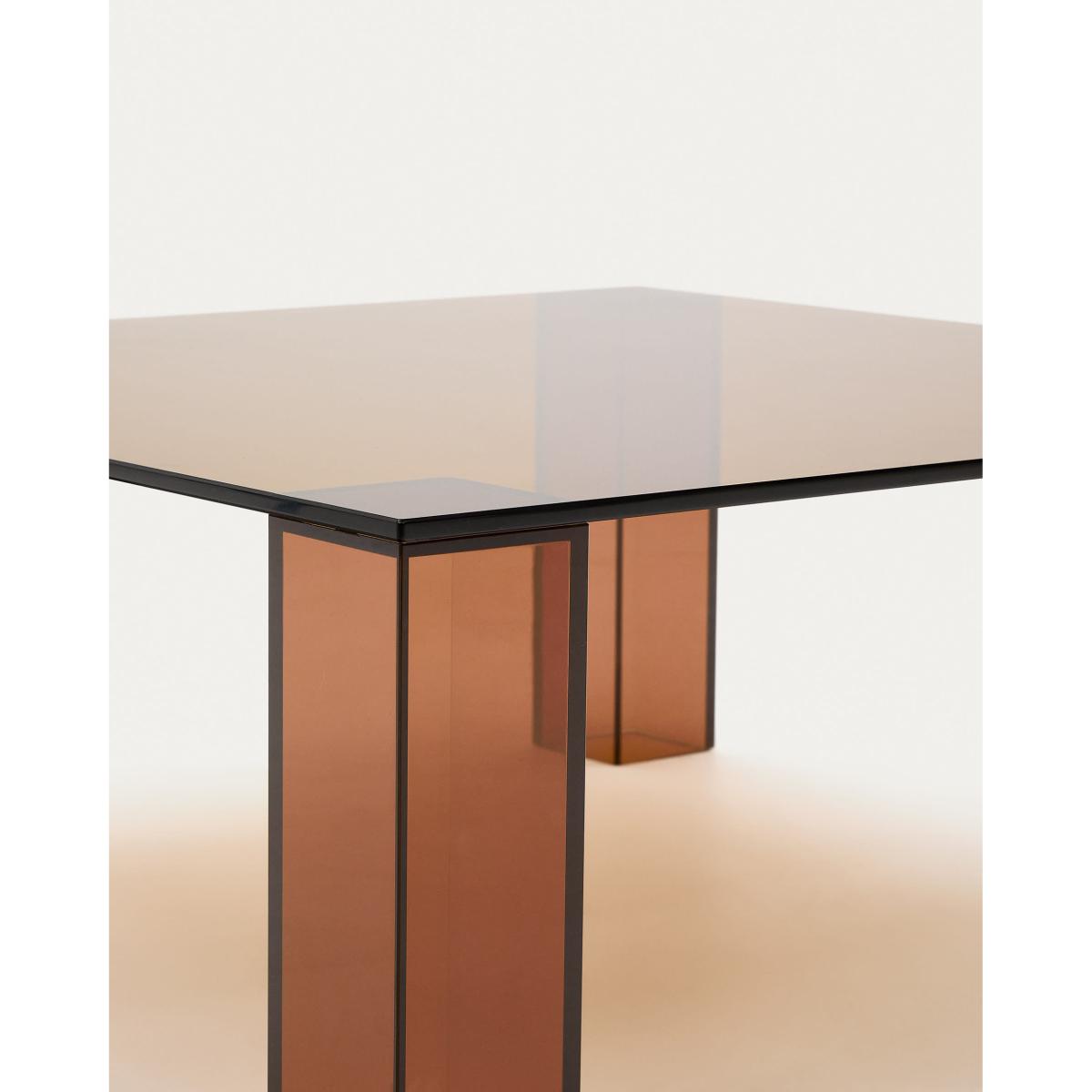 I’m a fan of this brown glass side table for its clean-lined silhouette and the way the tinted surface adds warmth without visual weight. Its tempered construction makes it sturdy enough for daily use, and the 85 × 85 cm size works equally well as a coffee table in a compact living room or as a display plinth in a hallway. It suits contemporary, industrial-chic or Scandi-inspired schemes - especially when paired with matt-textured accents. Keep styling simple: a low ceramic vase or a small stack of art books on one corner, and leave the rest of the top clear to let the glass colour speak for itself.