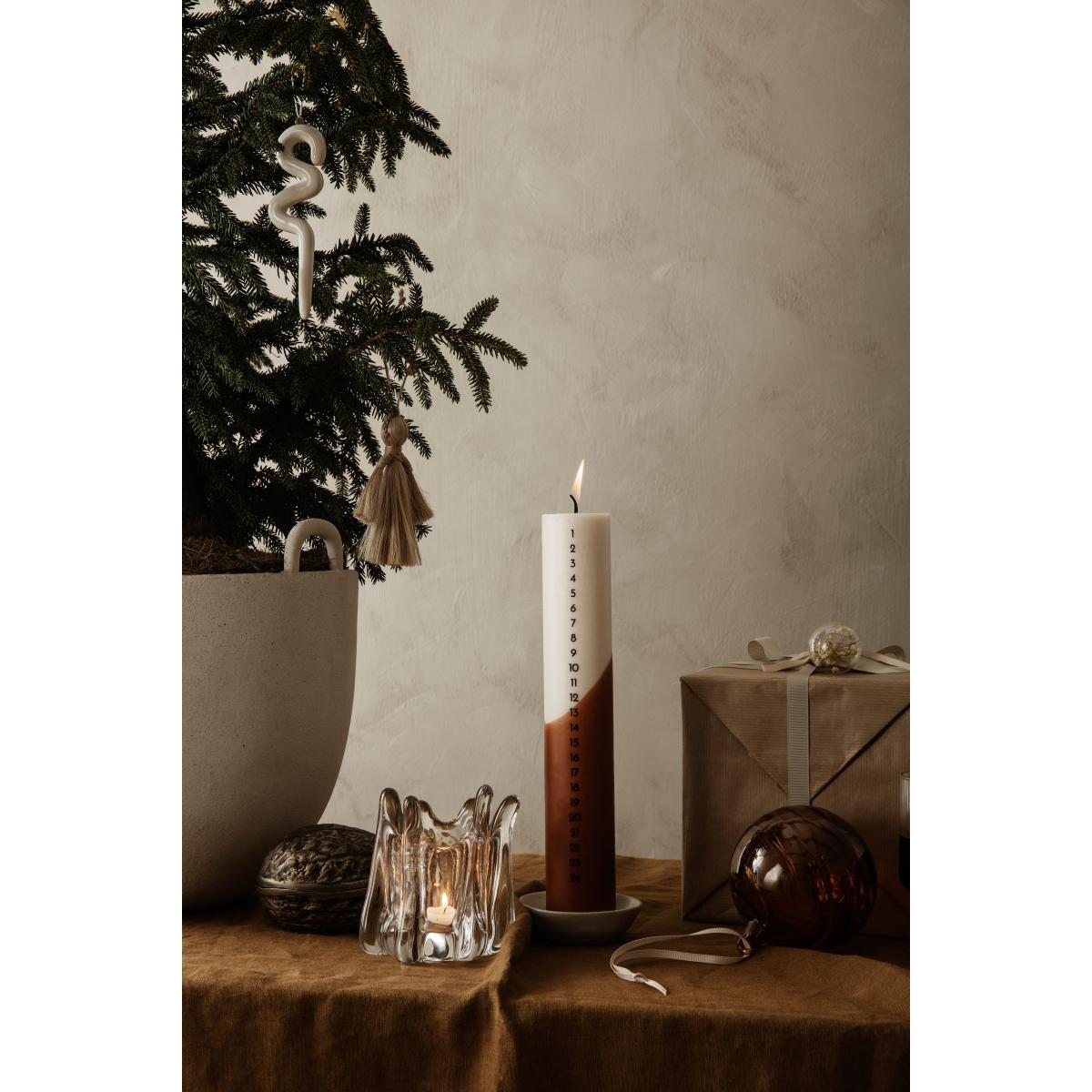 Calender candle Ø5 cm from Ferm Living is made of dual-coloured eco certified stearin and depicts the numbers 1-24. This candle should be lit each day from the 1st of December to help you count down the days until Christmas Eve. Place the Ferm Living calendar candle in your favourite candlestick and let the countdown be a cosy tradition.