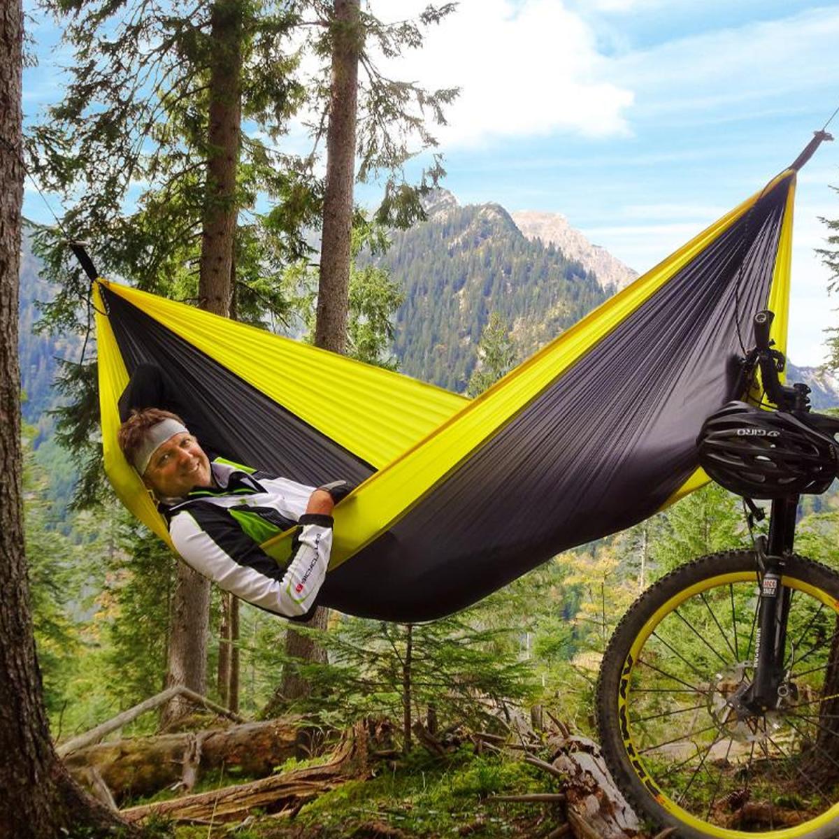 The Ultra-Light Adventure Hammock is made from strong, breathable, skin-friendly Ripstop Nylon material. The ultra-light adventure hammock weighs only 180g and can pack away into its own bag for ease. It's suitable for all types of weather, sun or rain, and can comfortably fit one or two people. It's a great value-for-money hammock that you can take anywhere. Available in a range of different colours to suit your personal style.