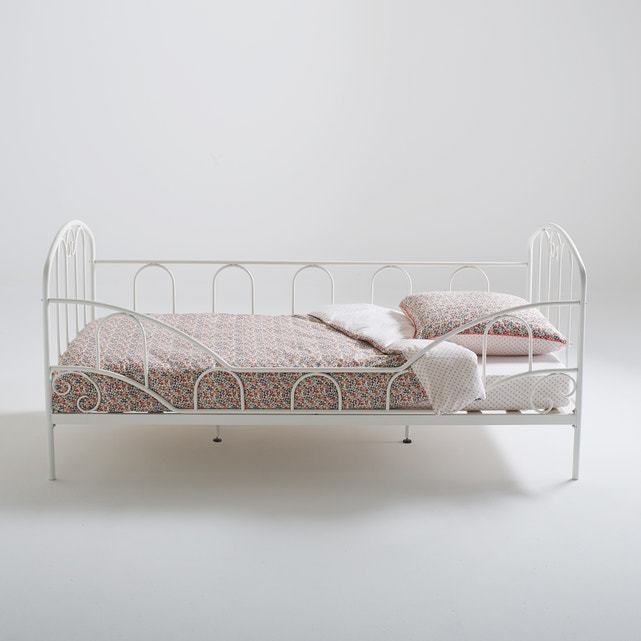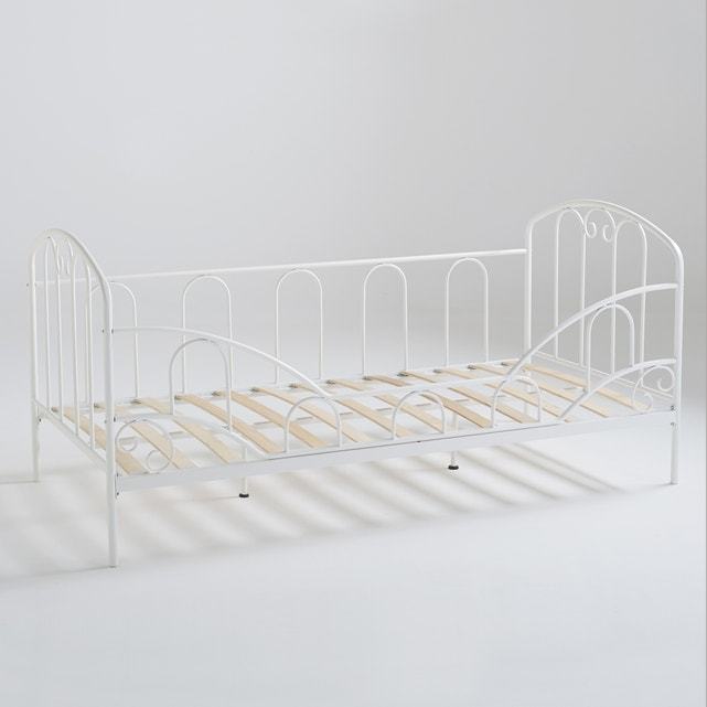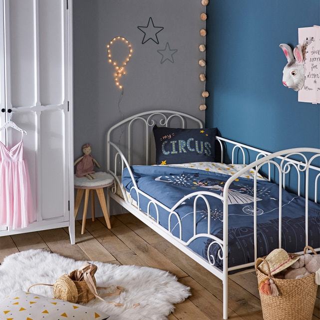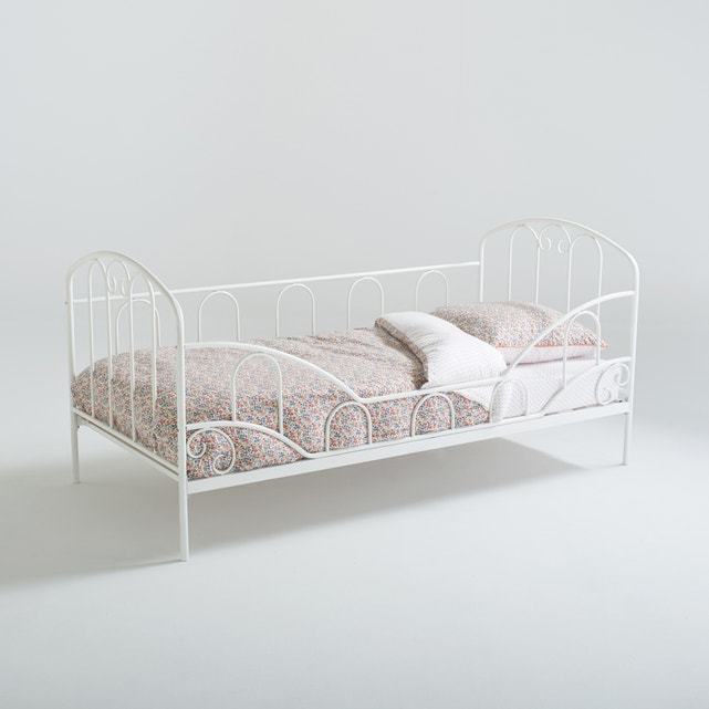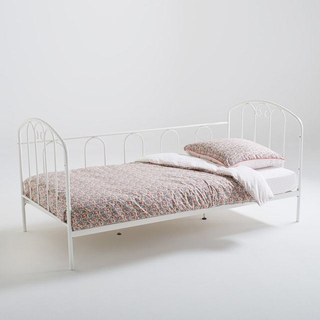 This stylish metal-framed bed makes a chic addition to any nursery or child's bedroom. Thanks to its removable security barrier, this bed can adapt and change to suit your growing child's needs. Suitable for children over the age of 3. Features. Metal with epoxy finish. Includes bed base. Removable security barrier. Bed size 90 x 190cm (single). Product Details. Material: Metal. Dimensions: W196 x H93 x D95cm. Product Range: AELA. Brand: La Redoute Interieurs. Assembly Information: Delivered for home assembly. Parcel Information. L199 x H9 x D117 cm, 30.5 kg