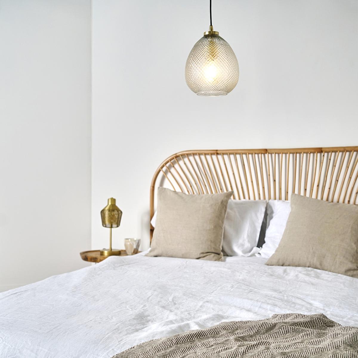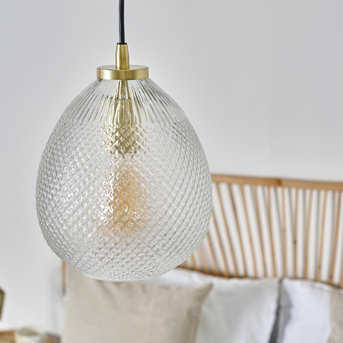 I love this pendant for its vintage-inspired look, seamlessly blending antique brass with textured glass for a touch of understated elegance. It works particularly well in interiors that mix traditional and contemporary elements, such as boho-chic or industrial spaces, where its warm metal finish and textured glass add visual interest without overwhelming. Practical styling tips include hanging it over a kitchen island or in a dining area to create a cosy, inviting atmosphere. It's also versatile enough to sit well in bedrooms or even bathrooms with appropriate damp-rated installations. When styling, consider pairing it with other brass accents or textured ceramics to keep the look cohesive and refined.