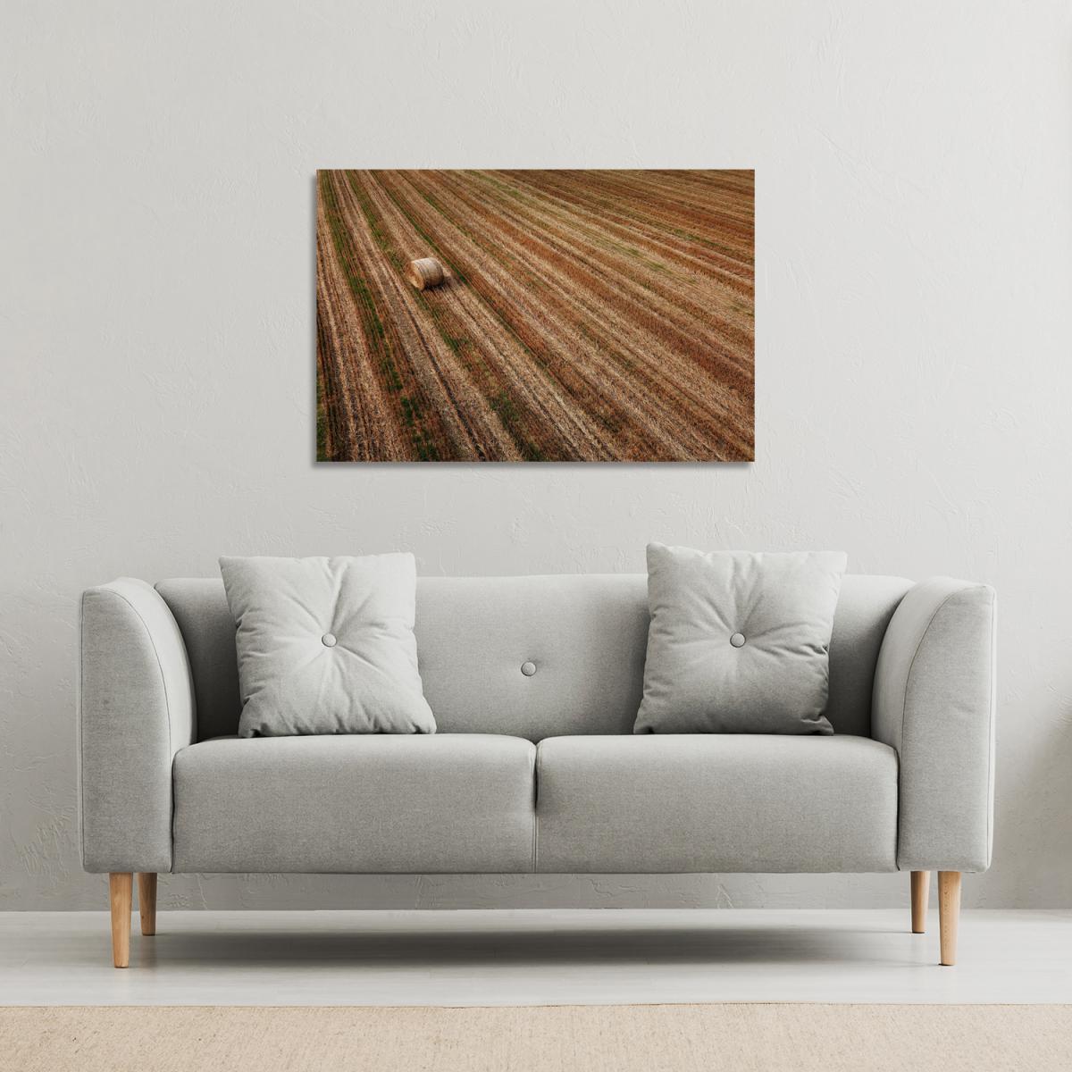 Aerial view of hay bale fields Canvas Print - Brown / 31cm / 41cm