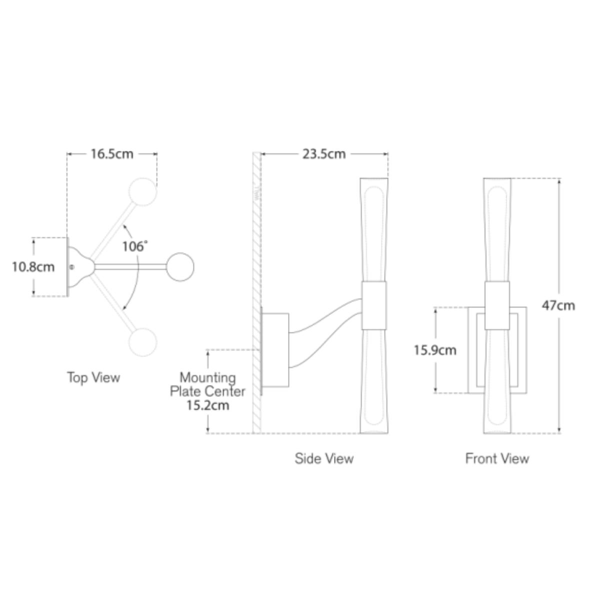 A sleek, modern wall light with a linear structure supporting two bulbs with tubular frosted glass shades. The supporting arm can be adjusted to multiple different angles. Designed by AERIN, Brenta works perfectly in multiples to frame artwork or illuminate a hallway.