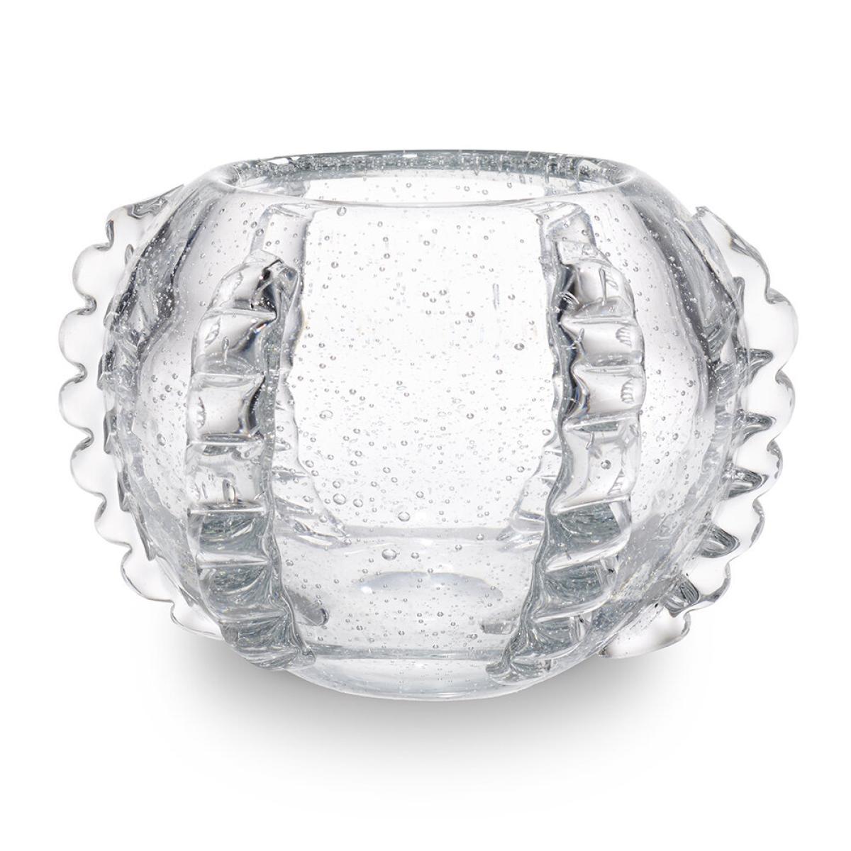 Add some coastal charm to any setting with this Lattea vase from AERIN. In a round shape, this vase has a rippled pattern which gives it a sleek underwater effect. Made from mouth-blown glass, each pieces is beautifully unique.