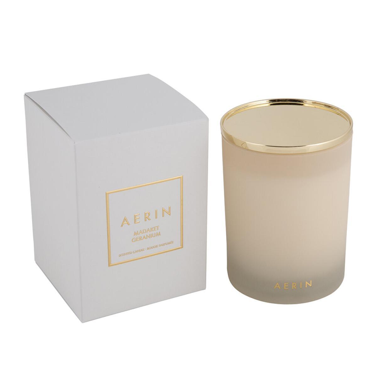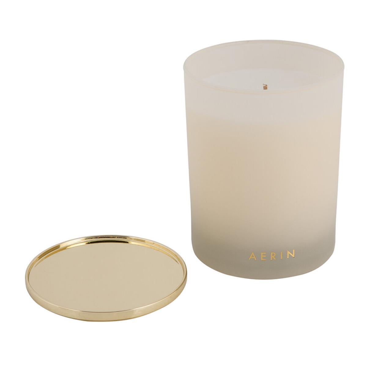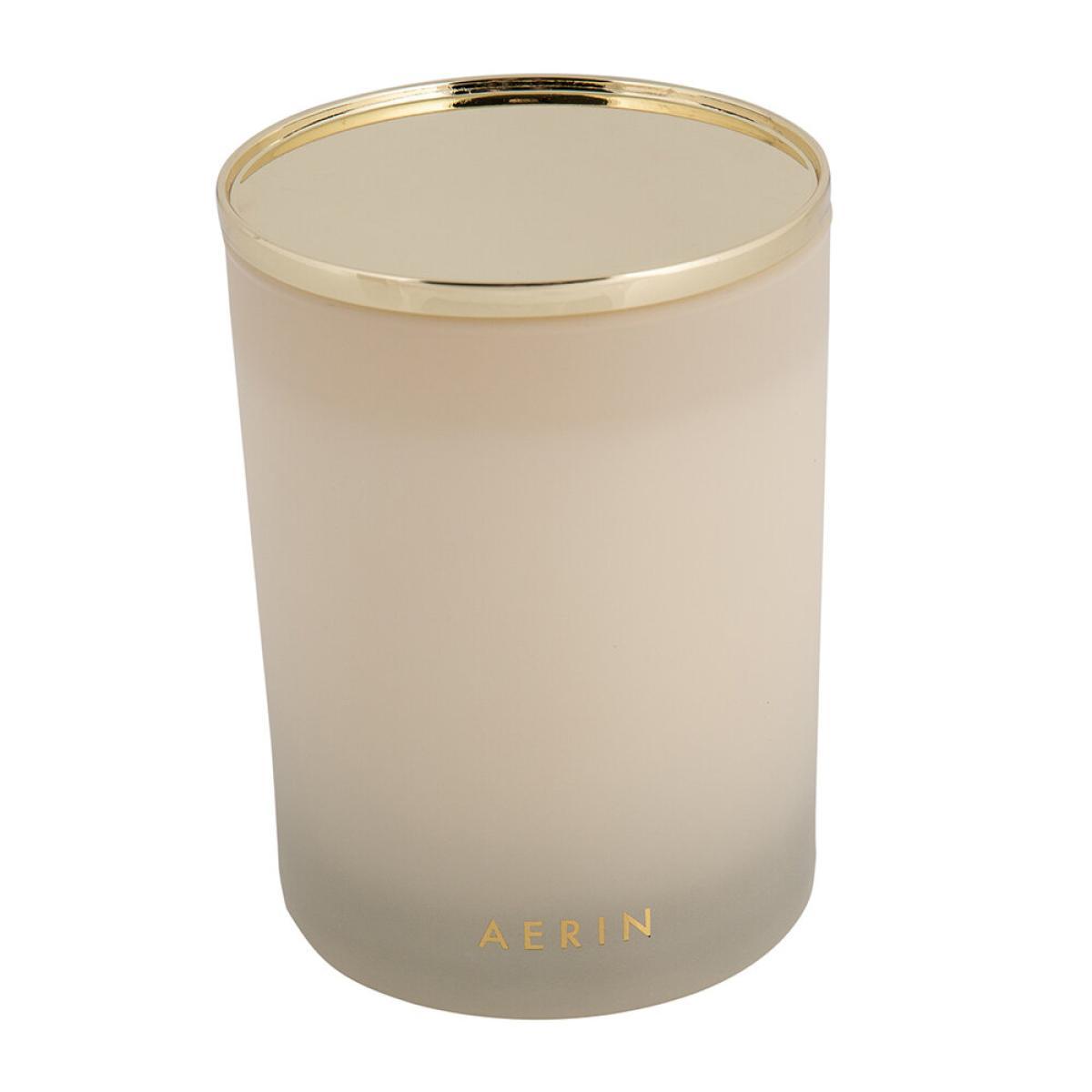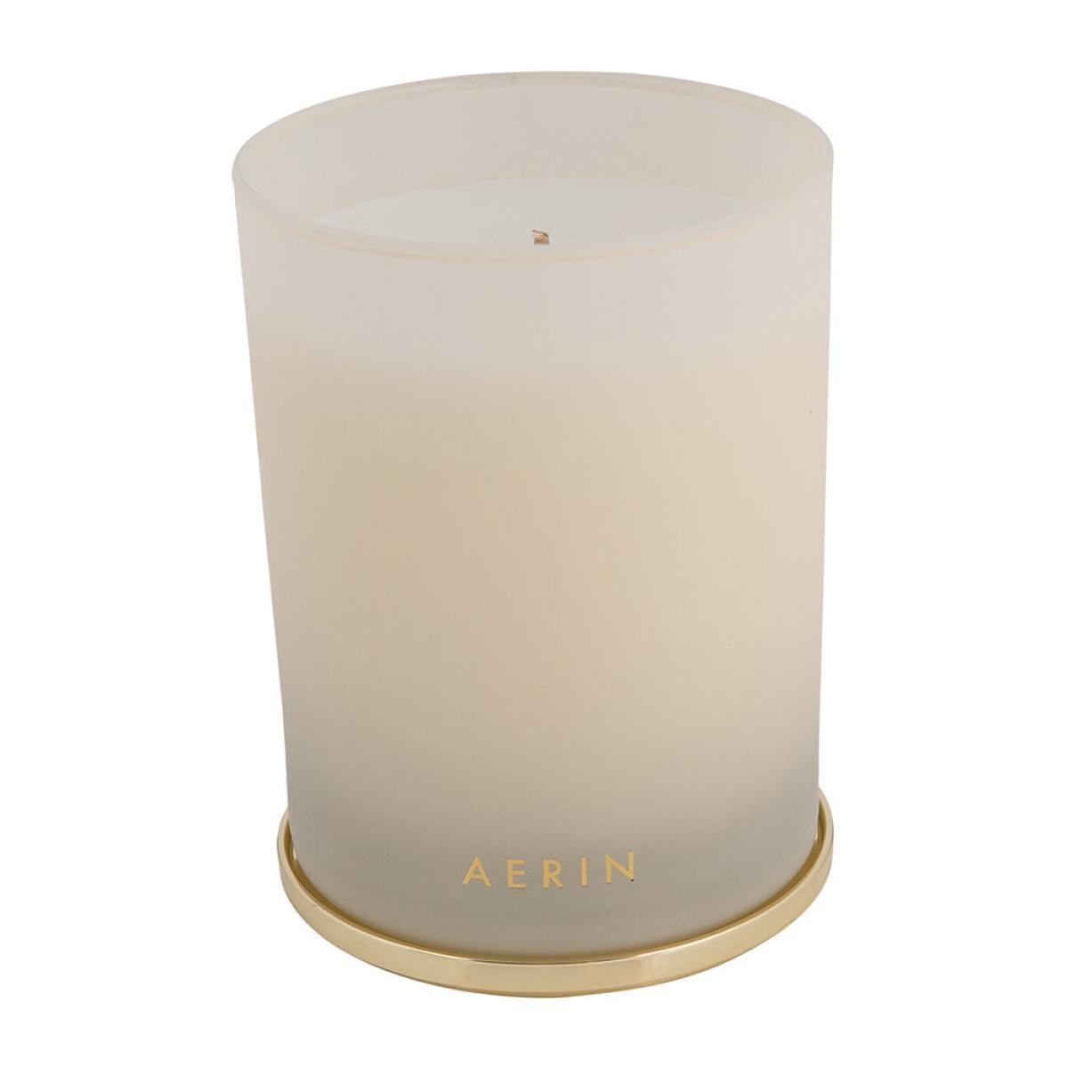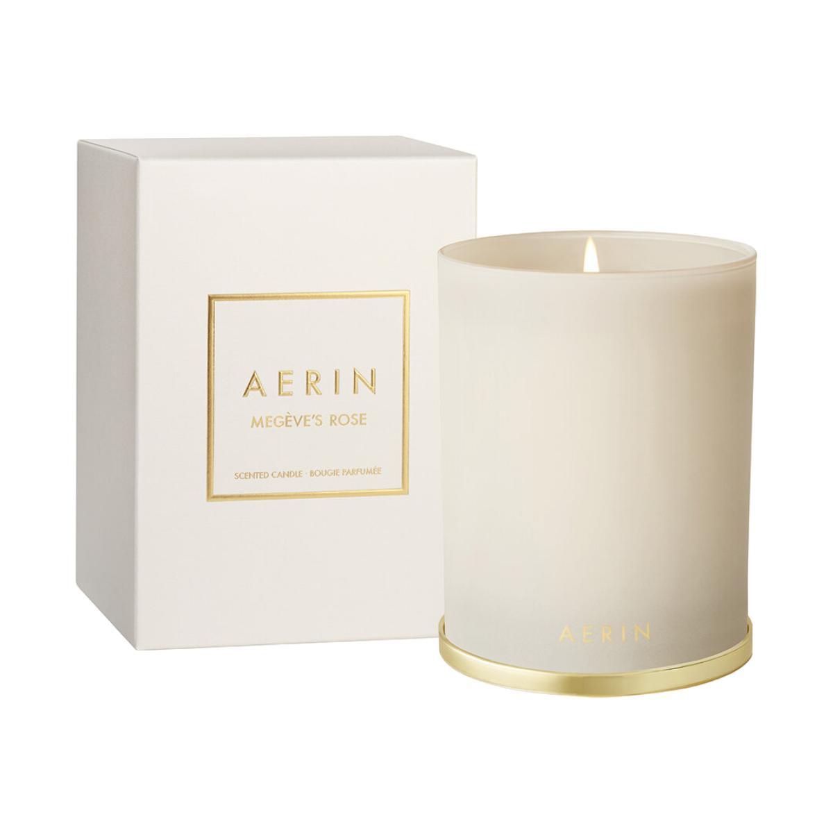 Bring a floral fragrance into your home with this Megeves scented candle from AERIN. Inspired by an area of natural beauty in the French Alps; this lemon zest and fresh greens capture the crisp alpine air, while rose centifolia infuses a velvety floral deepened by rich, woody notes of musk and sandalwood. In a cream vessel, it includes a golden lid that can be used as a base for the candle when lit.