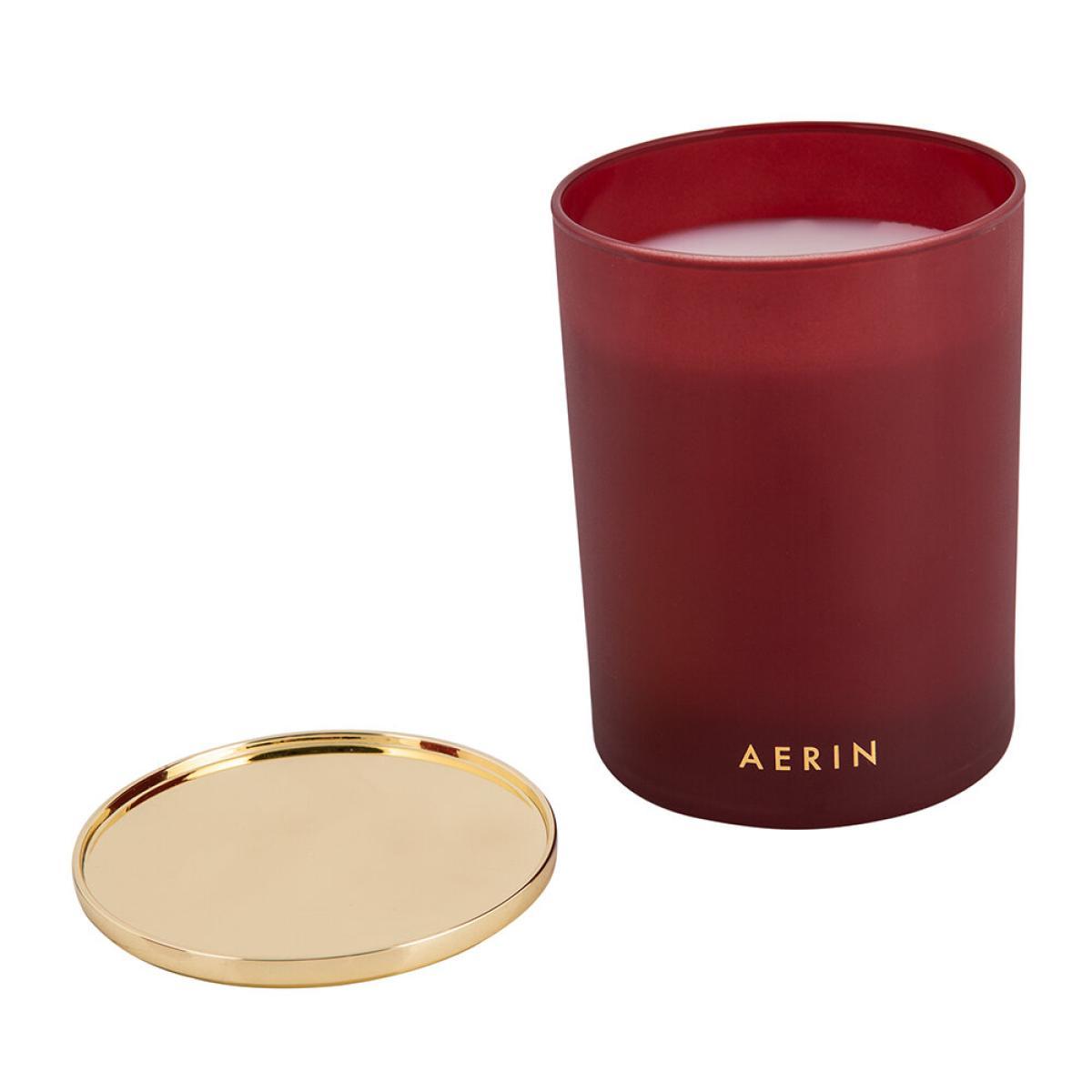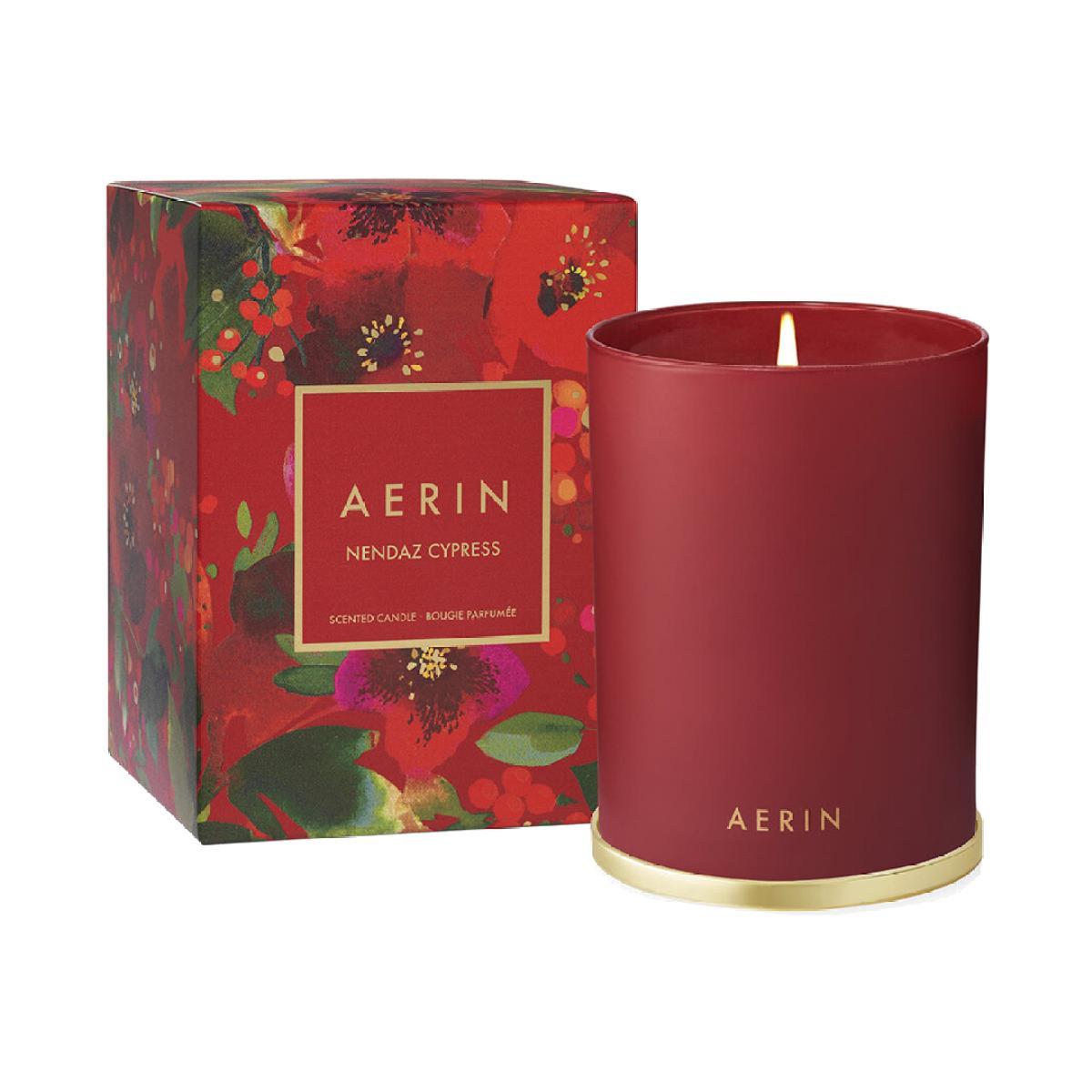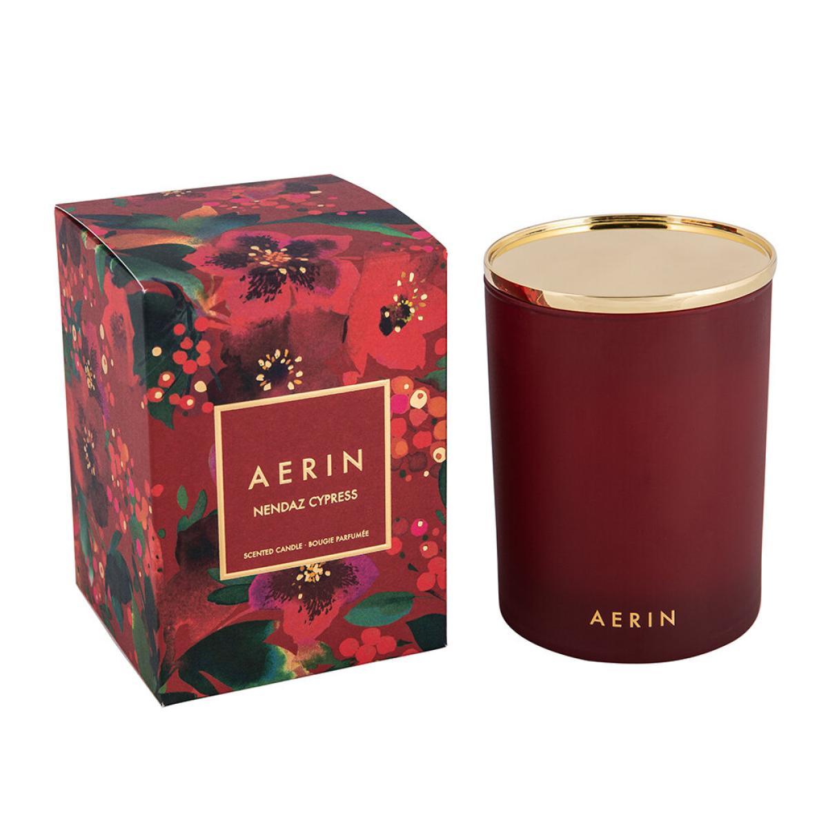 Bring delectable fragrance into your home with this Nendaz Cypress scented candle from AERIN. Inspired by the Alpine resort of Nendaz in Switzerland, a jewel in the heart of the Four Valleys region with stunning evergreen forests and soaring peaks, this candle’s fragrance captures an invigorating fresh winter’s day in the Swiss Alps. In a red vessel, it includes a golden lid that can be used as a base for the candle when lit.