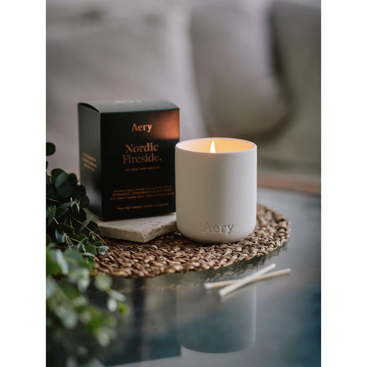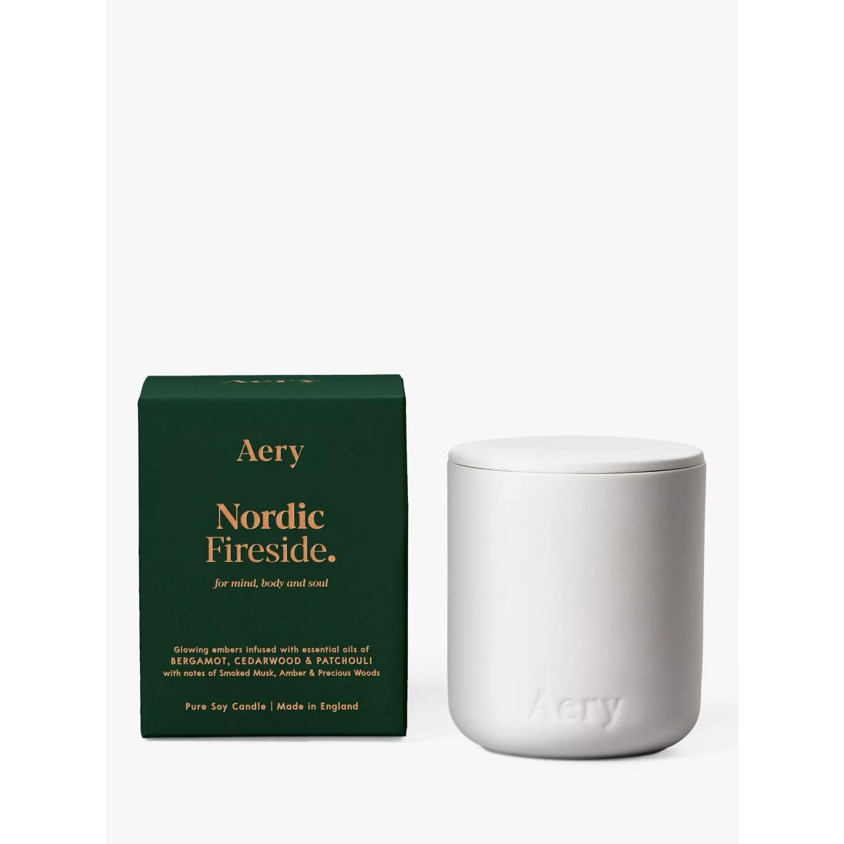 I love this Aery Nordic Fireside candle for its understated elegance and versatile scent profile, which adds warmth without overpowering a space. It works particularly well in Scandi or minimalist interiors, where its clean design complements natural materials like wood, linen, and neutral palettes. Practical styling tips include placing it on a mantelpiece, side table, or alongside other seasonal accessories for a cosy, inviting feel. For added impact, group it with a few smaller candles or a natural element like a branch or stone to create a tactile, layered vignette. Its simple container and subtle scent make it a great everyday piece that can effortlessly elevate a variety of interiors.