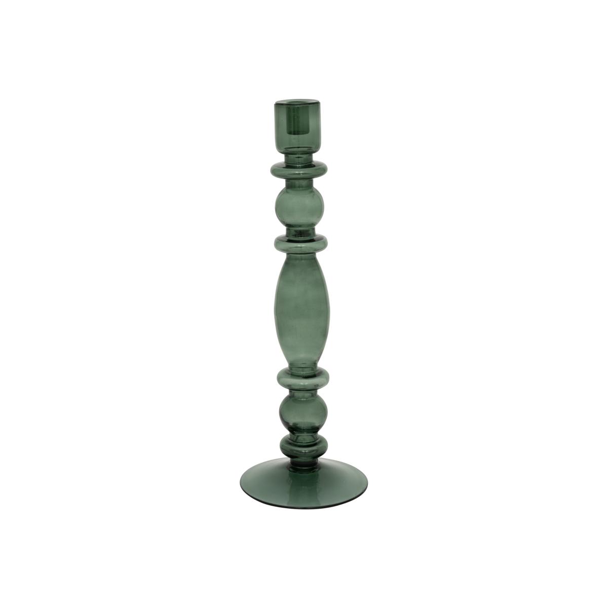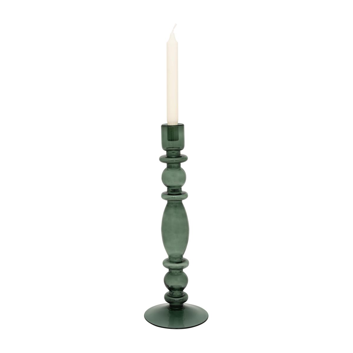 The green candlestick makes a striking statement, especially in interiors that favour natural tones or Scandinavian minimalism. I love how its rich hue adds colour without overwhelming and can be paired seamlessly with other earthy or neutral shades. It works particularly well on a mantelpiece, sideboard, or as a centrepiece on a dining table layered with other textural elements. For styling tips, try grouping it with shorter candles or surrounding it with greenery or small decorative objects to create a balanced vignette. Its height makes it ideal for anchoring a display or adding vertical interest to a shelf or console. Overall, it's a versatile piece that brings colour and structure, elevating both modern and rustic interiors alike.