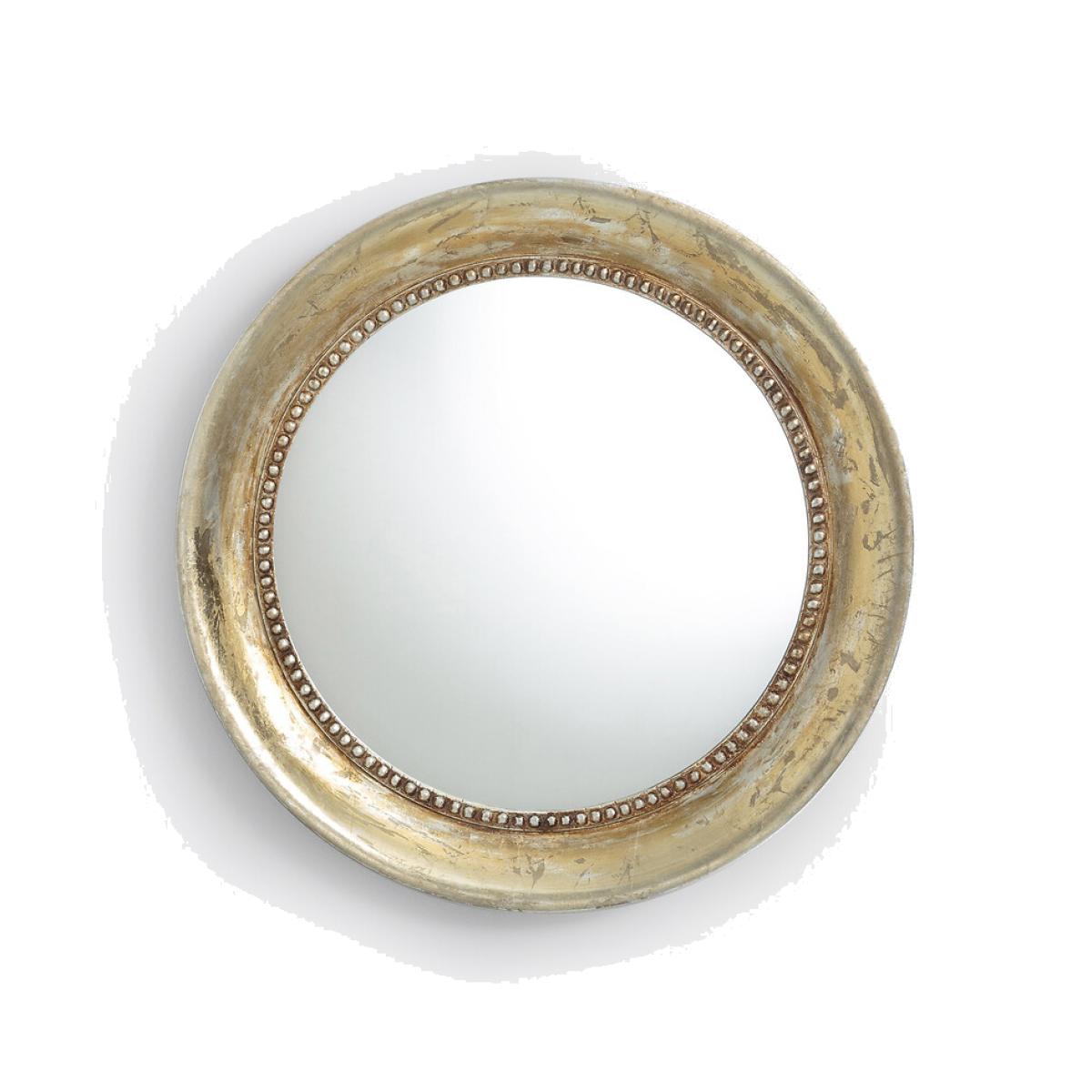 Refined style for this ancient-style mirror covered in gold and aged or black paint, with beaded decoration. Product Details • Solid mango wood painted for the aged golden color • Black painted MDF • Beaded trim • 1 hook for wall mounting (screws and plugs not supplied)Dimensions • Diameter 60cm • Thickness: 4cm/1.5"Parcel Dimensions1 parcel • 68 x 68 x 10cm • 6.2kg
