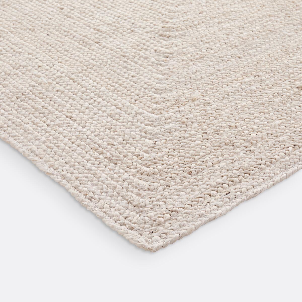 The Aftas Rectangular Bleached Jute Rug. You'll fall hard for this handmade rug, both rustic and terribly elegant, which brings character to your interior. Product Details • 100% jute • Bleached jute • 2300g/m² • Artisanal craftsmanship. Quality Info. Hand-braided, each piece is unique and authentic. Given its artisanal manufacture, the jute runner is not suitable for an area of heavy foot traffic. Sizes • Width 120 x Length 170cm • Width 135 x Length 190cm • Width 160 x Length 230cm • Width 200 x Length 250cm • Width 200 x Length 290cm • Thickness: 0.5 to 1cmDelivery:. This product will be delivered directly to your door. • FIBRE FROM A WATER-SAVING CROP. Jute is a material that requires little irrigation and very few phytosanitary products. • OEKO-TEX® Standard 100. Standard 100 certification by OEKO-TEX® tests textile products for harmful substances via an independent, international label.