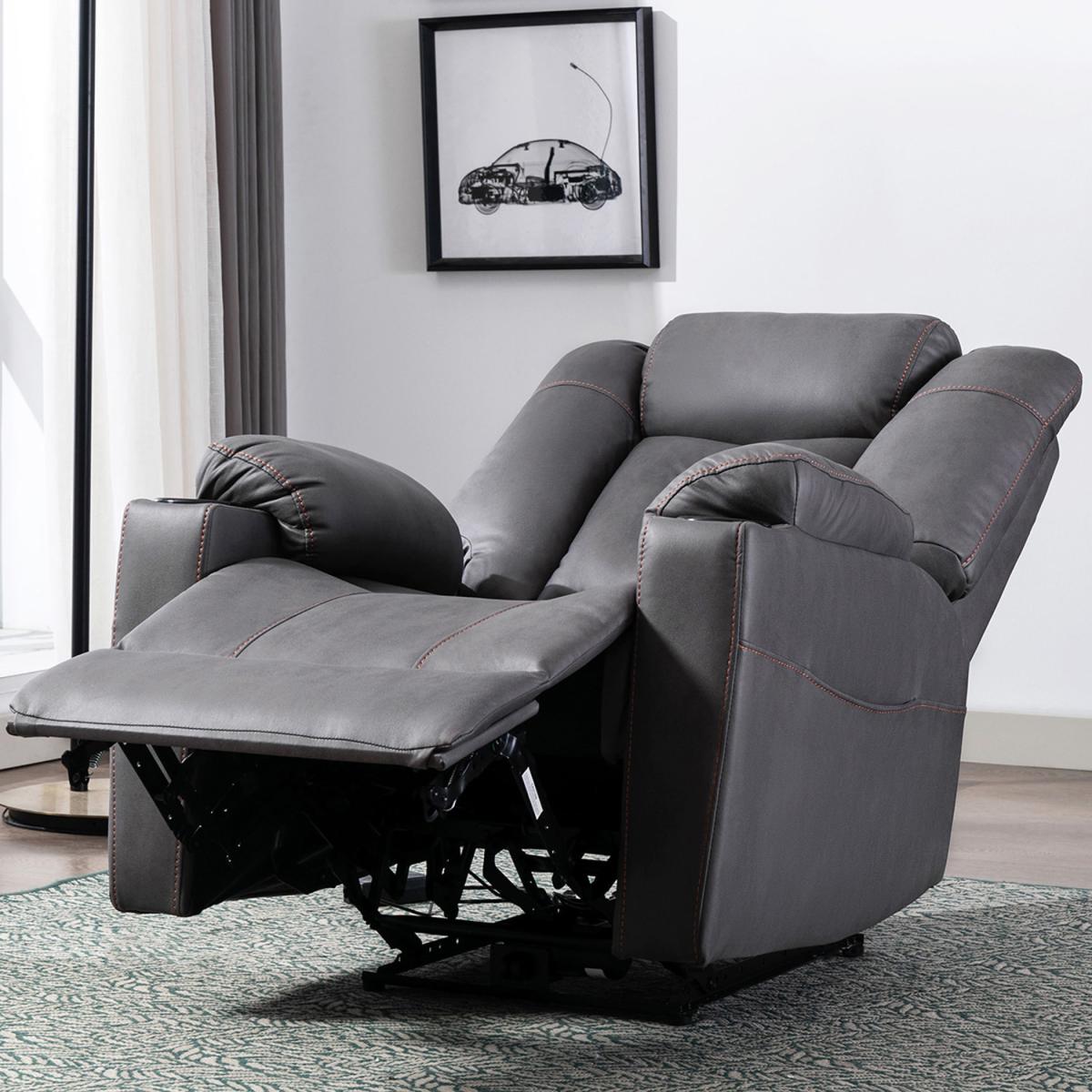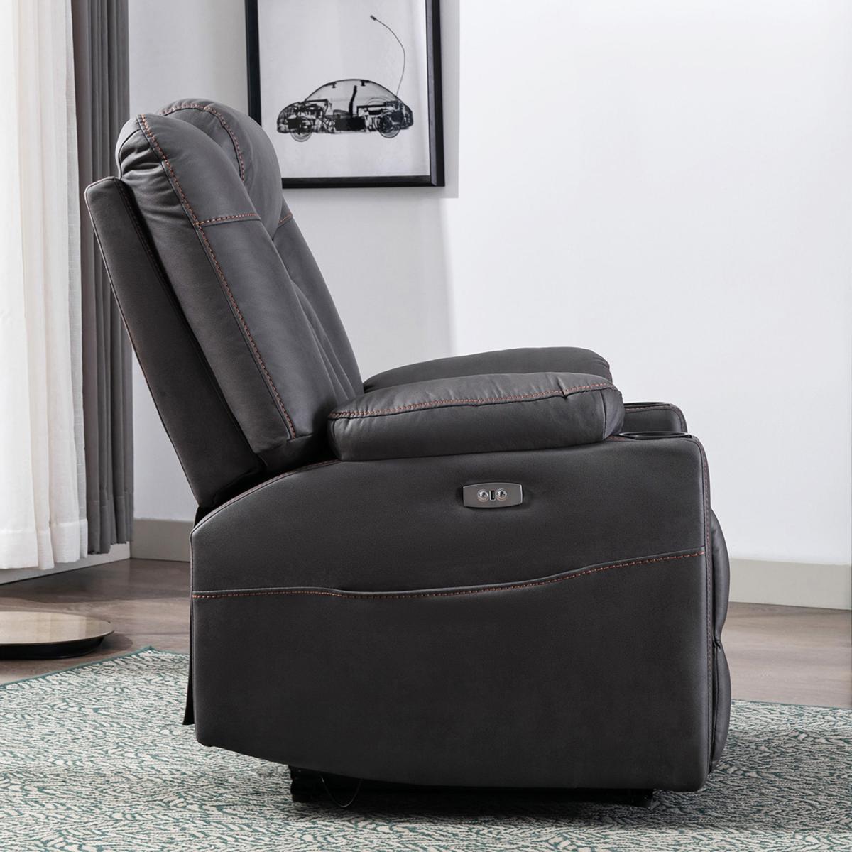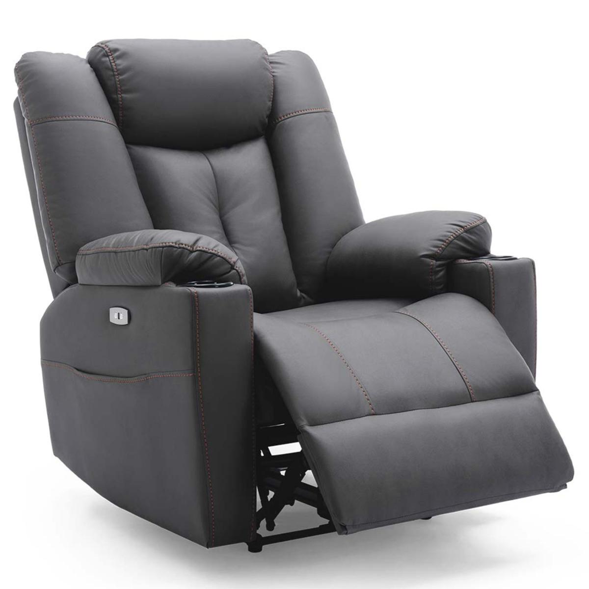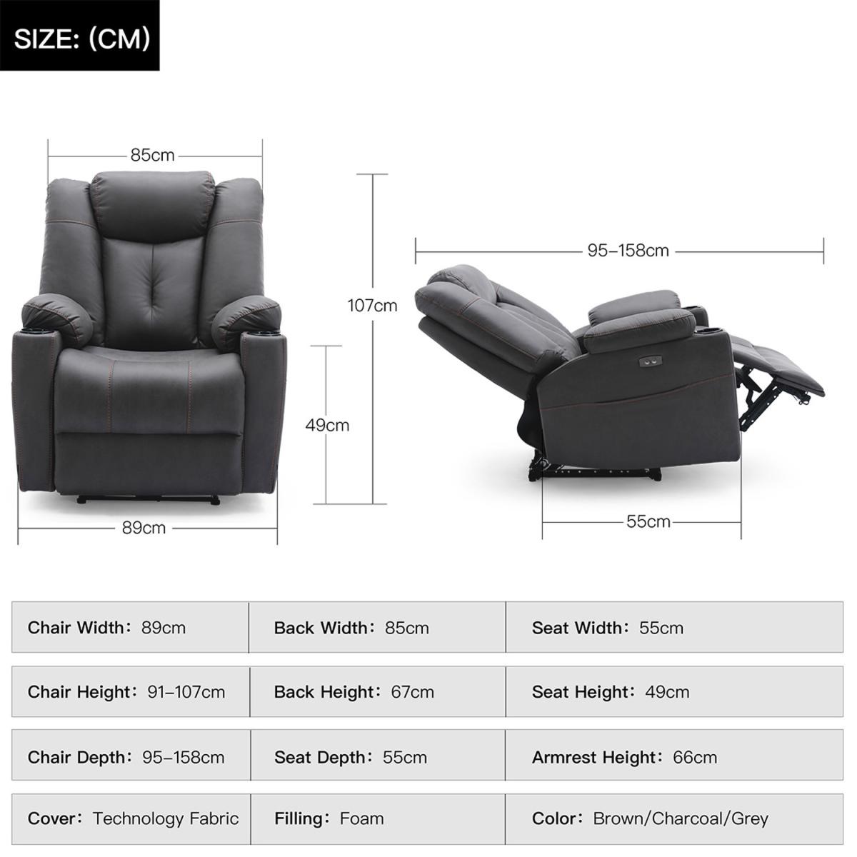 Curl up in supreme cosiness with the super-comfy Afton Electric Recliner chair. Featured in our Premier collection, this power recliner has a useful USB port for easy charging of your phone or tablet. Covered in brand-new technology fabric with a highly durable, leather-like finish, the upholstery has the luxurious warmth and softness of the fabric. Recline and put your feet up with complete ease by pushing the two-button control on the side of your chair. Enjoy full chaise seating, superior lumbar support and soft comfy armrests with deep foam padding. With a handy drinks holder and side pocket for magazines, books and smart devices, this is the ultimate way to relax.