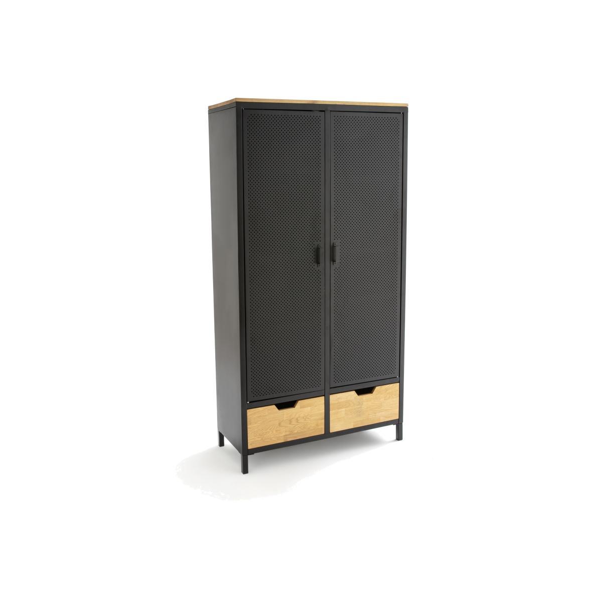 With its black metal structure, this two door cabinet brings an industrial feel to your interior, with a hint of warmth from the solid oak top and drawers. It's a perfect combination of contrasting materials that combine to create a modern look!